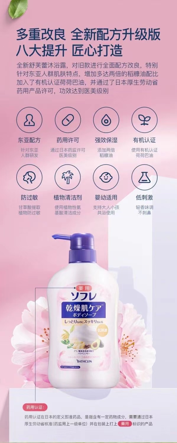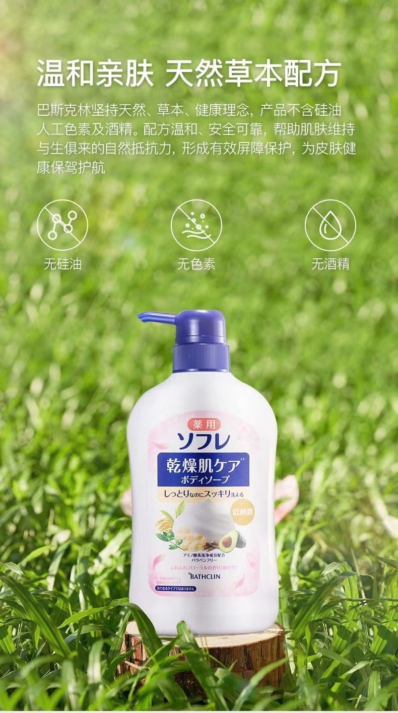 Bathclin 巴斯克林 日本干燥肌草本滋养沐浴露 550ml 自然花香