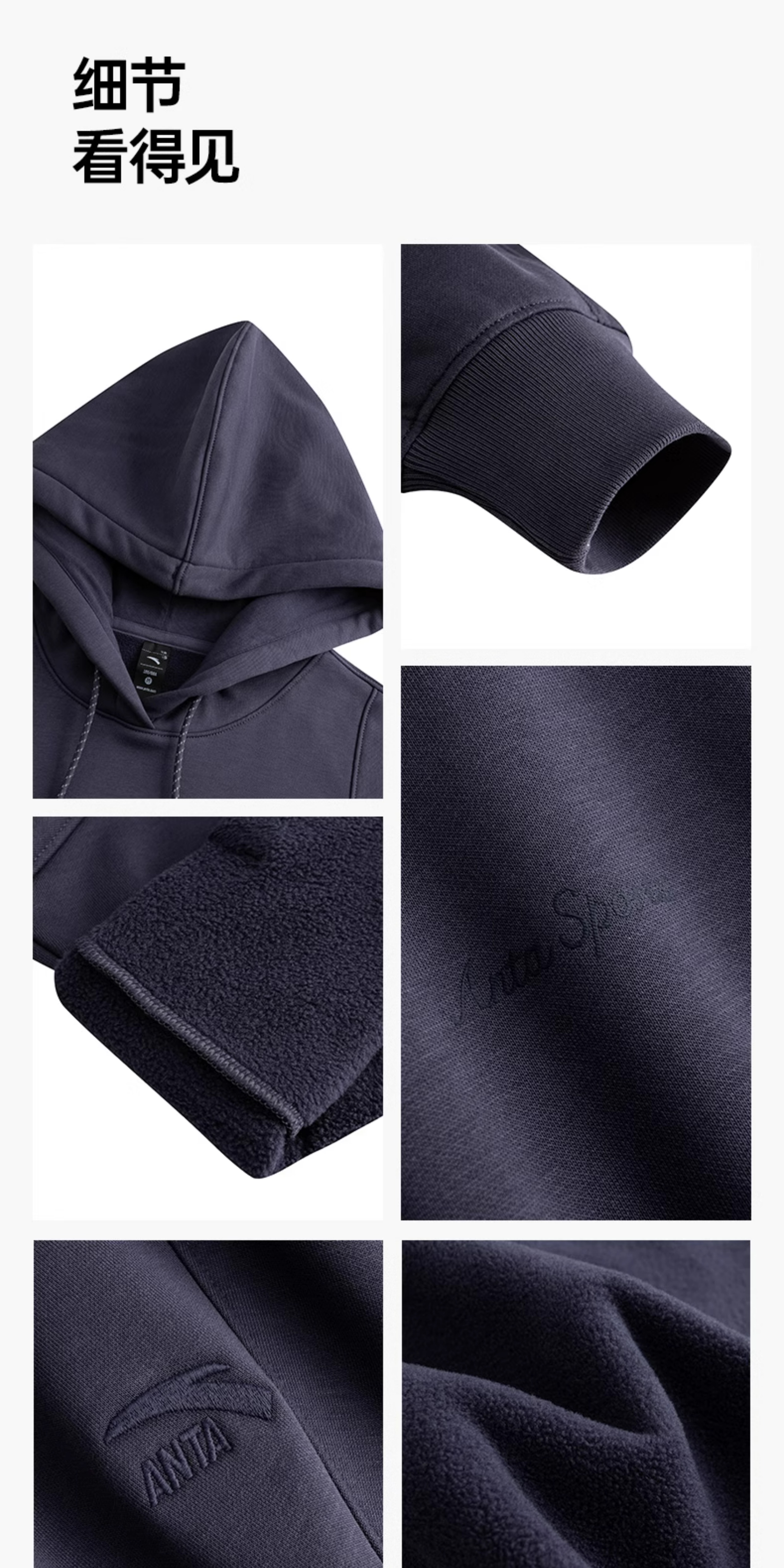 超级安踏加绒连帽卫衣女士秋冬密暖绒防风保暖多色宽松套头衫162548720U