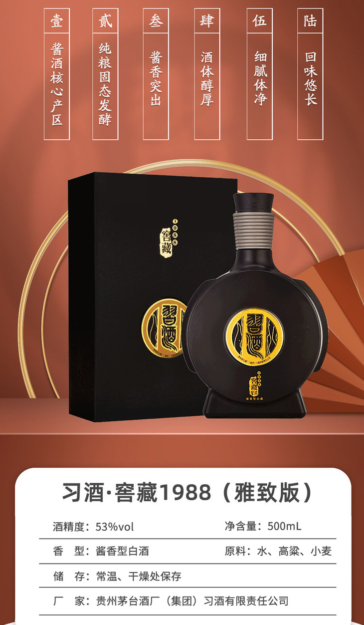 【秒杀】习酒 窖藏1988 雅致版 53度500ml*4瓶 整箱装白酒 酱香型