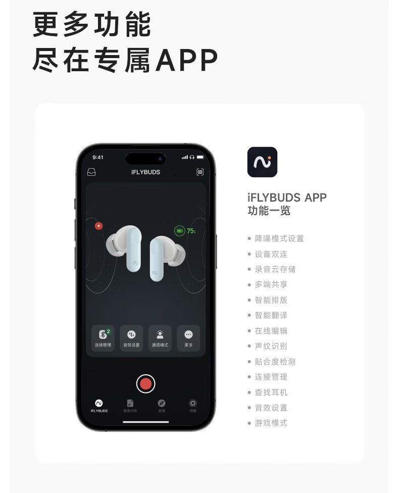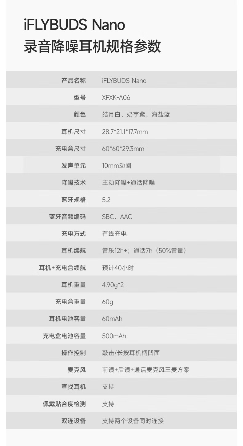 科大讯飞 录音降噪会议耳机iFLYBUDS Nano