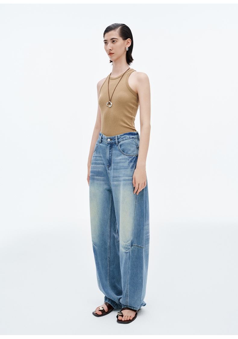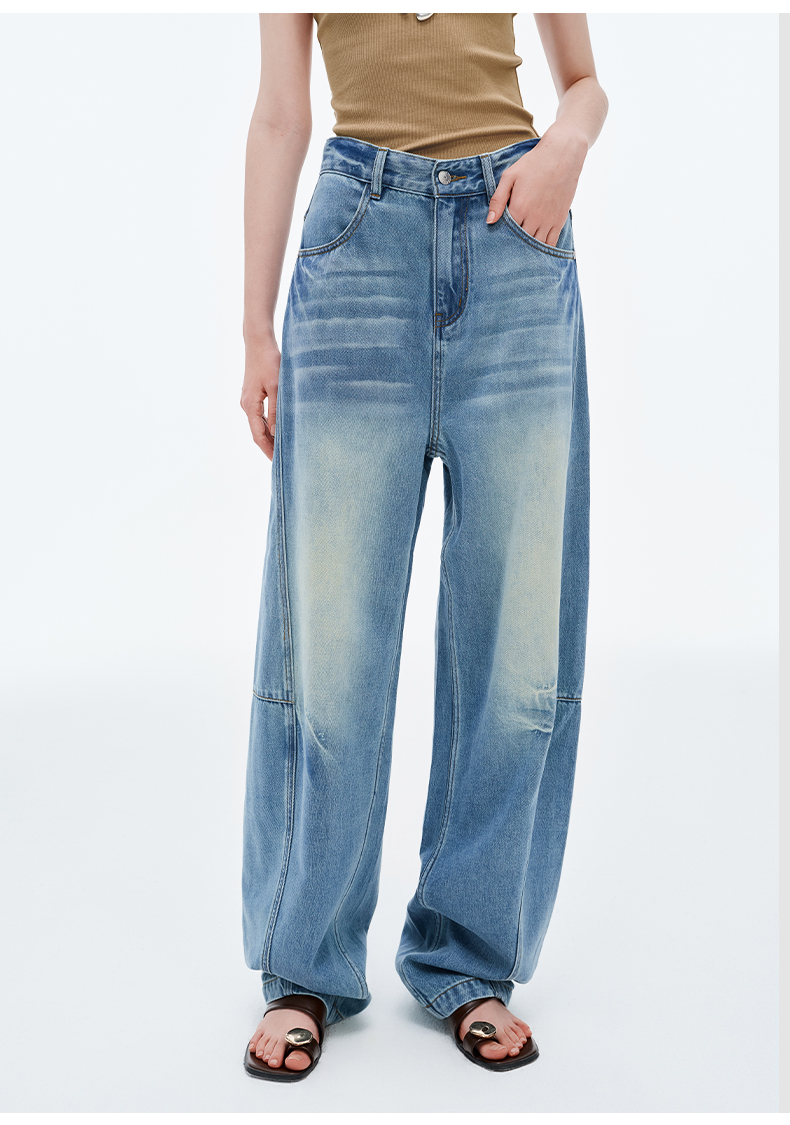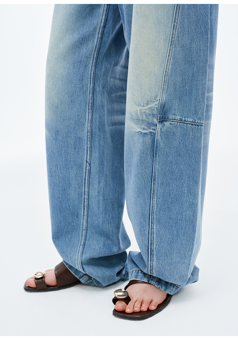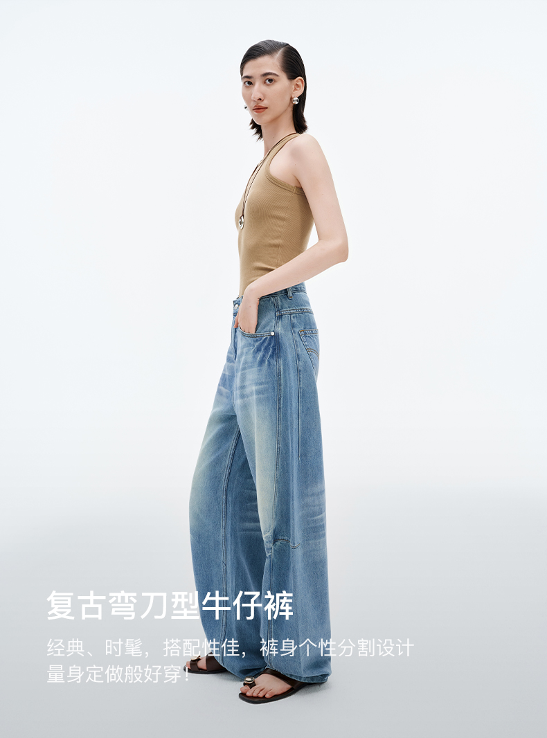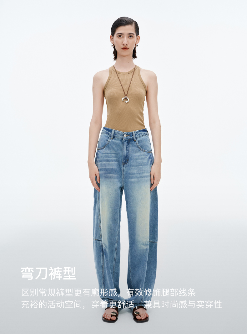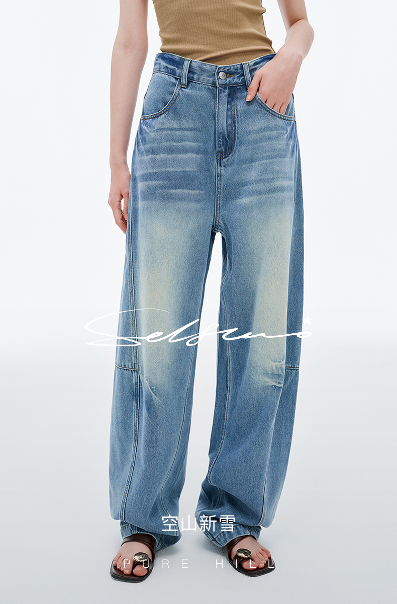 SELFWHO棉莱赛尔复古洗水牛仔裤女2025夏新款宽松柔软弯刀香蕉裤