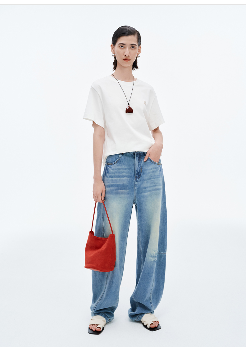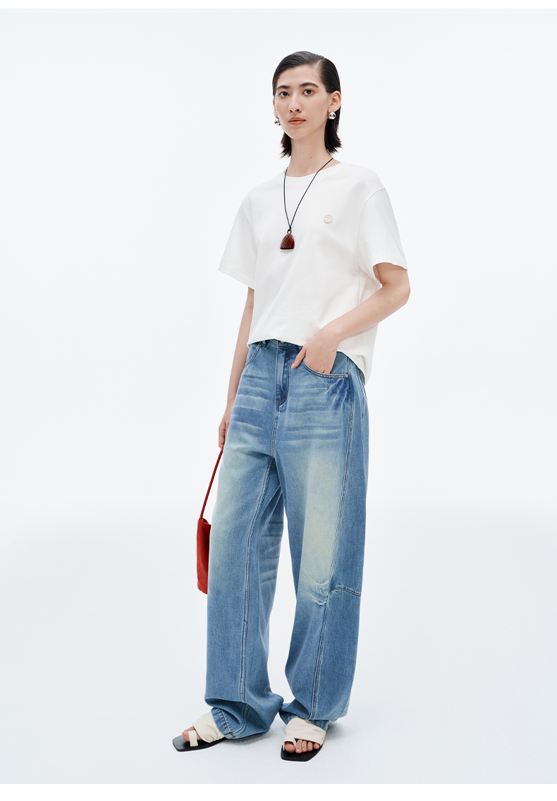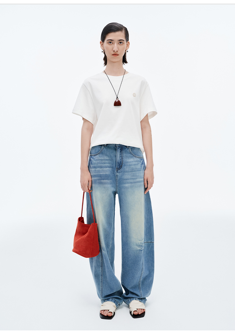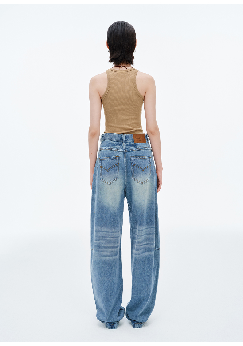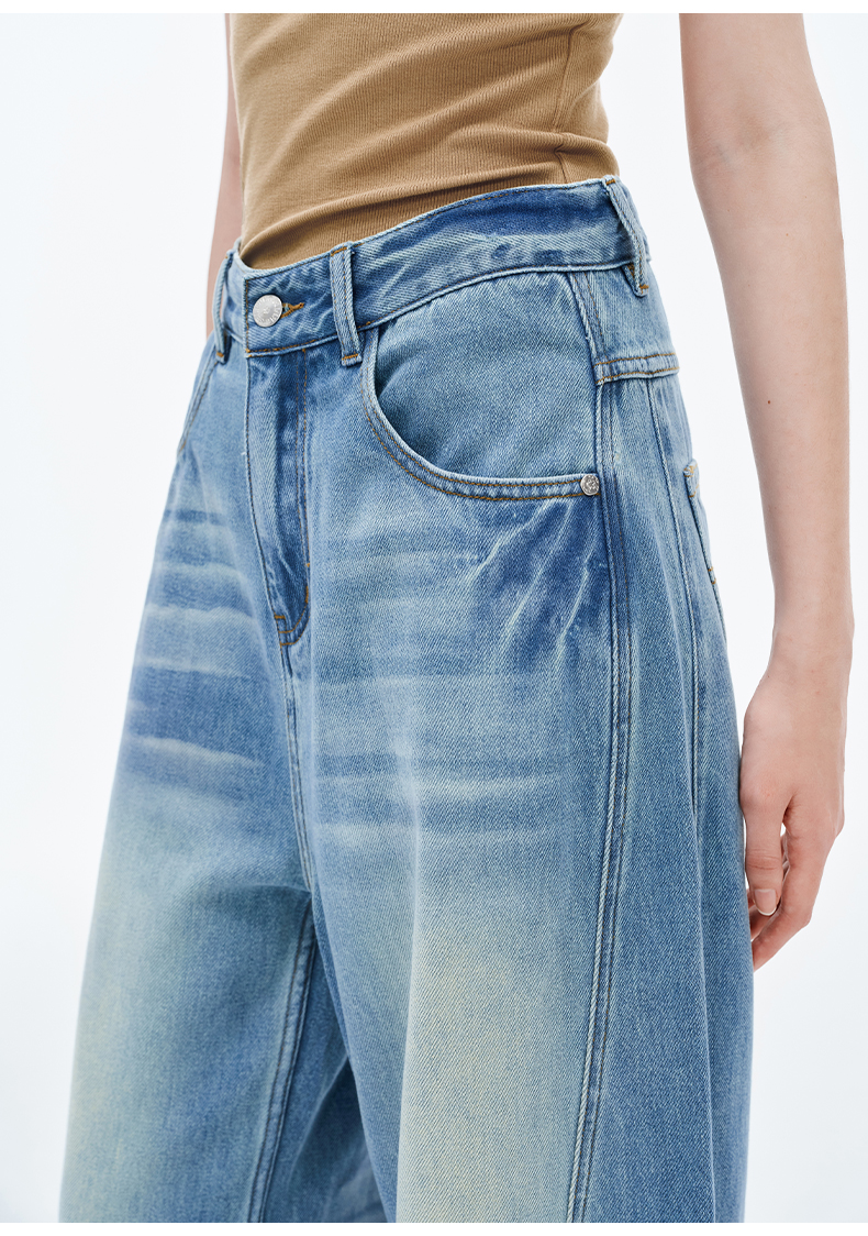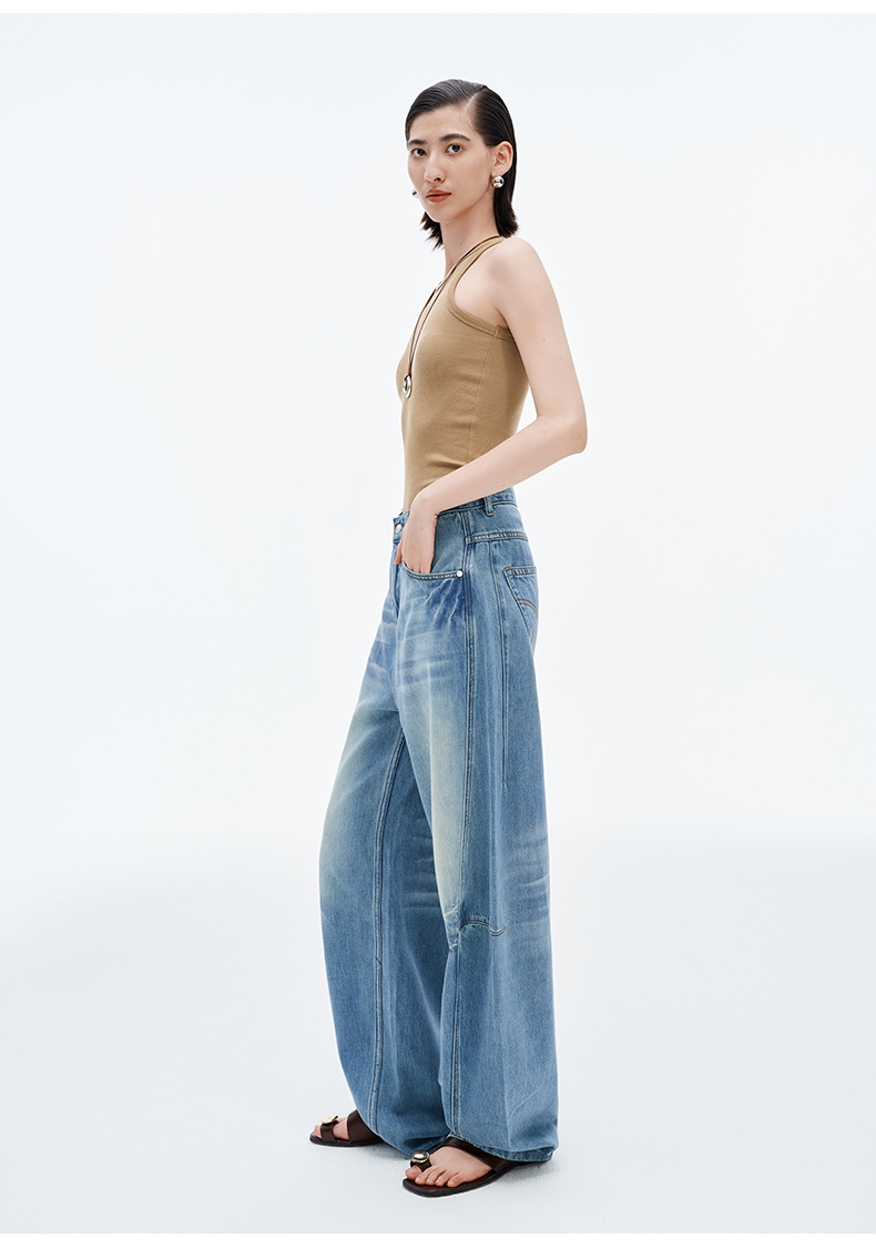 SELFWHO棉莱赛尔复古洗水牛仔裤女2025夏新款宽松柔软弯刀香蕉裤