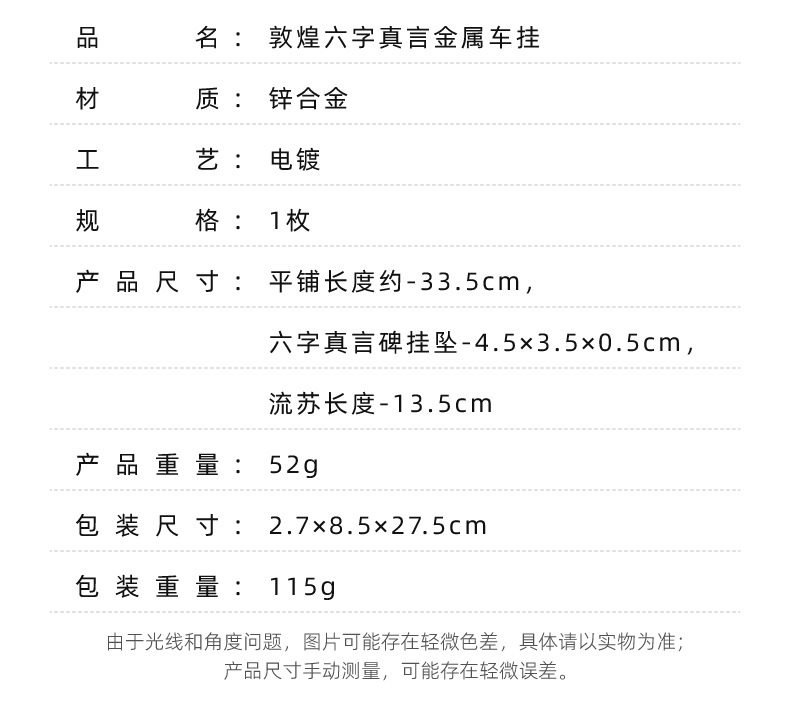 敦煌研究院【六字真言金属车挂】车载挂件车内挂饰高级感平安挂件