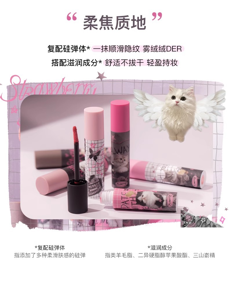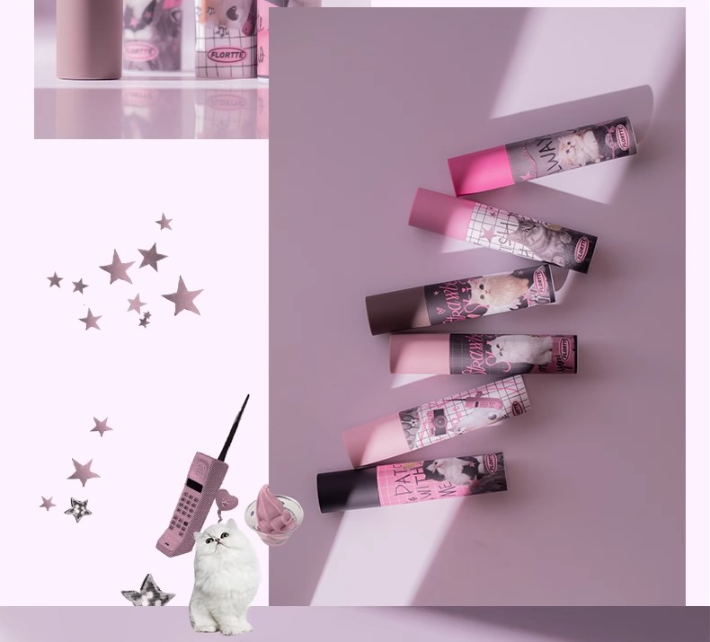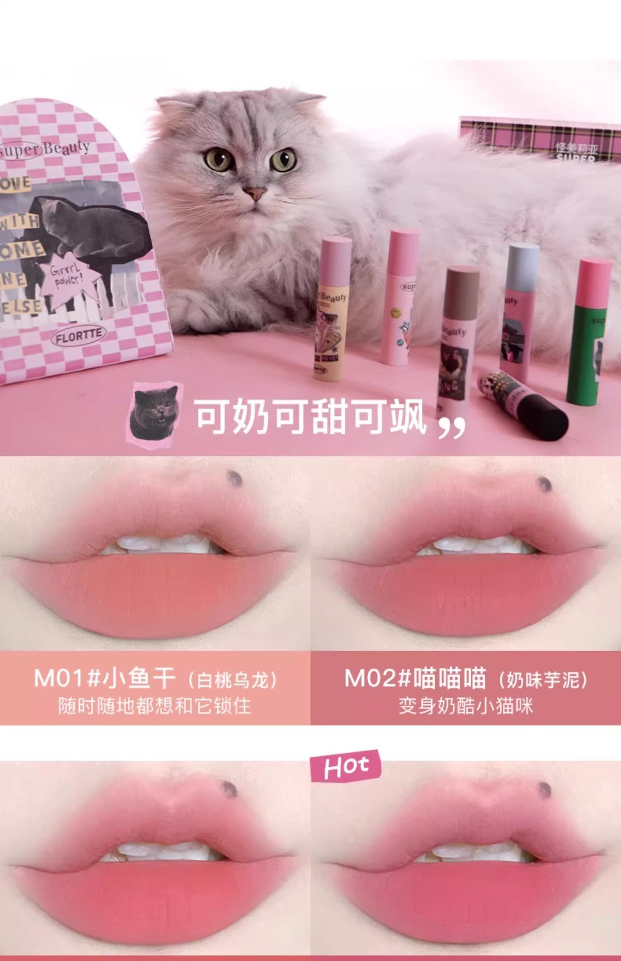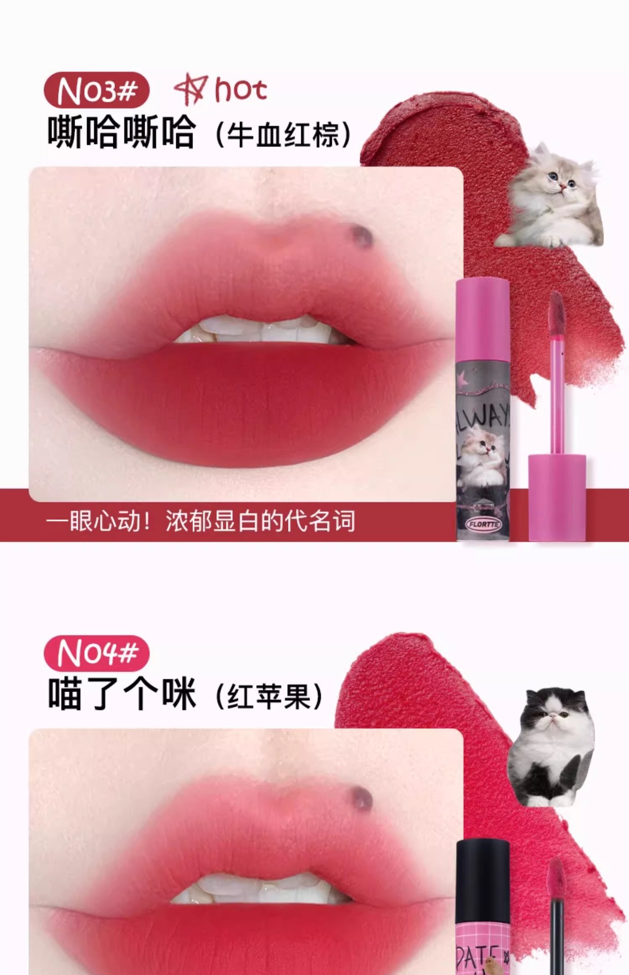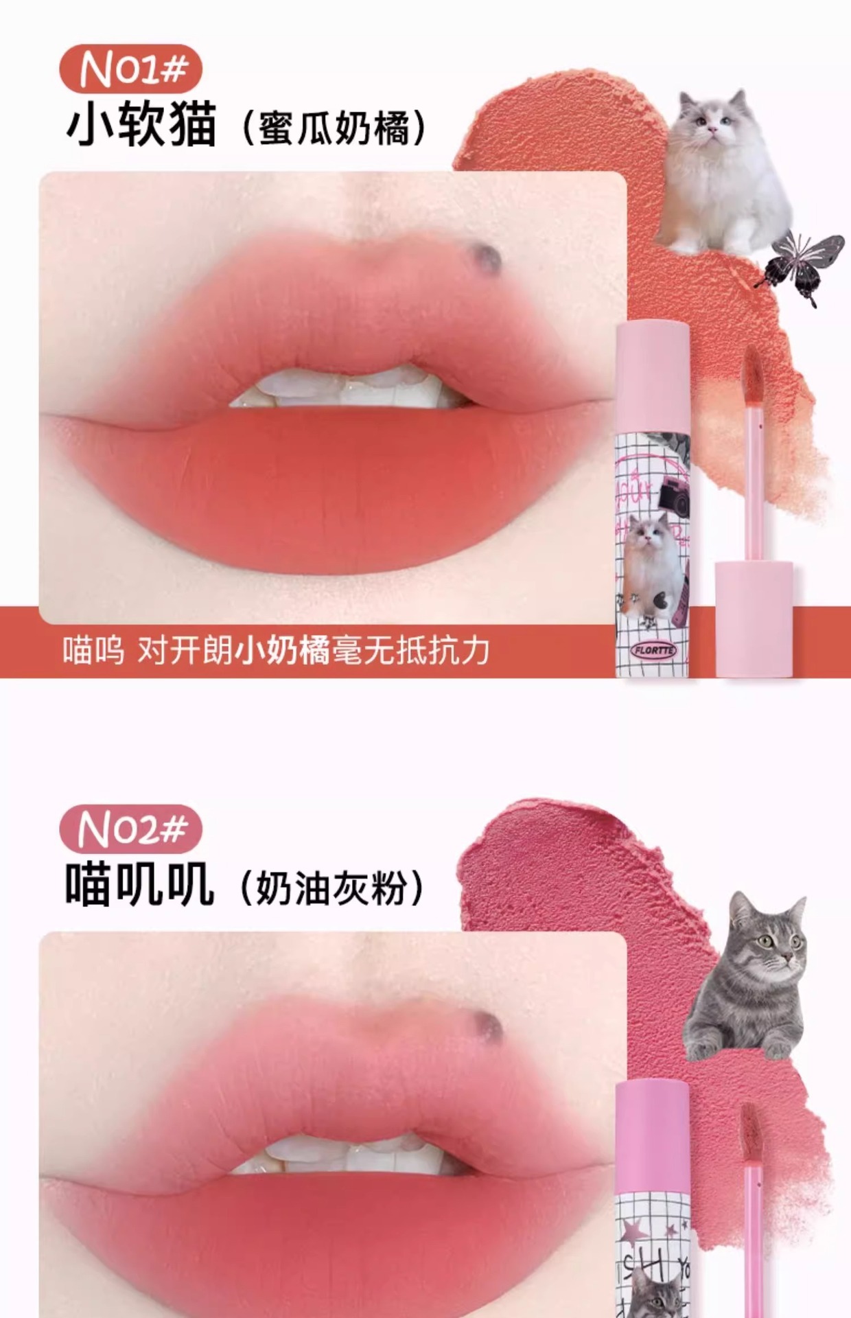 FLORTTE/花洛莉亚怪美莉亚系列猫咪奶糕唇霜唇泥雾面细闪唇釉 心选到家