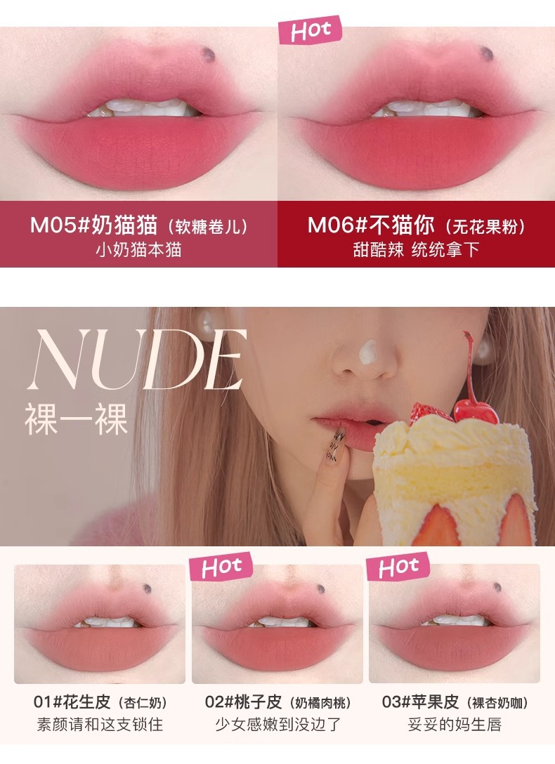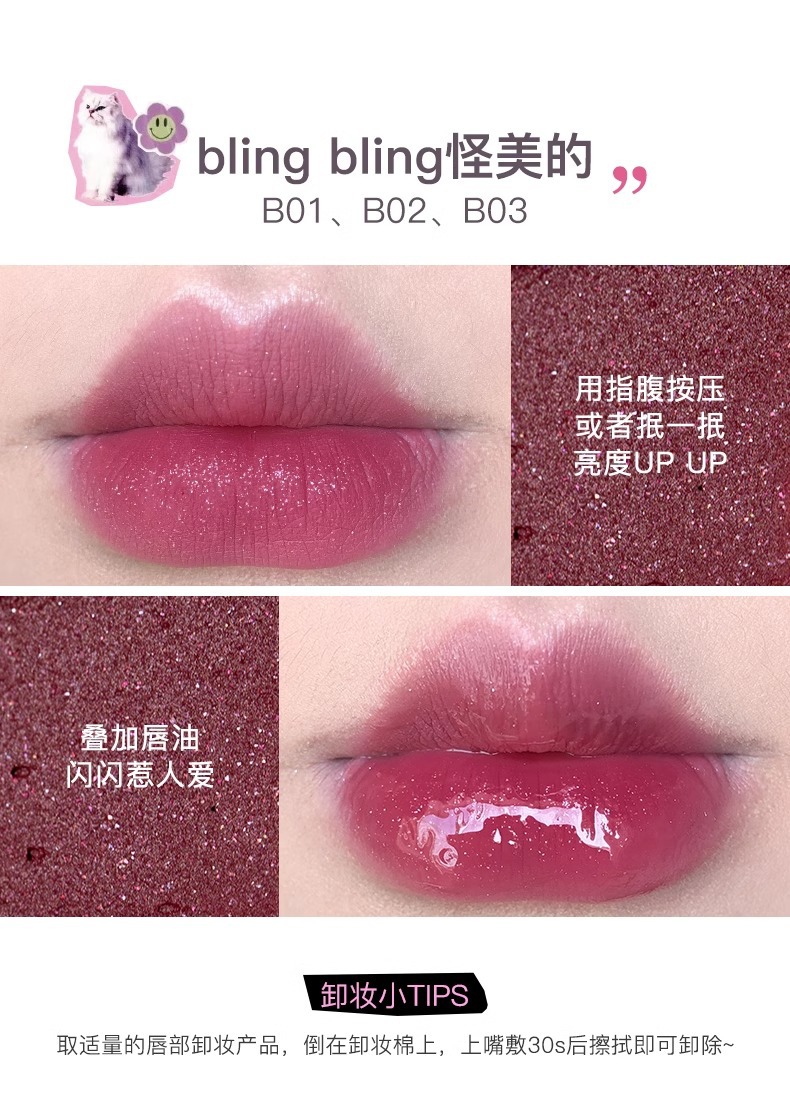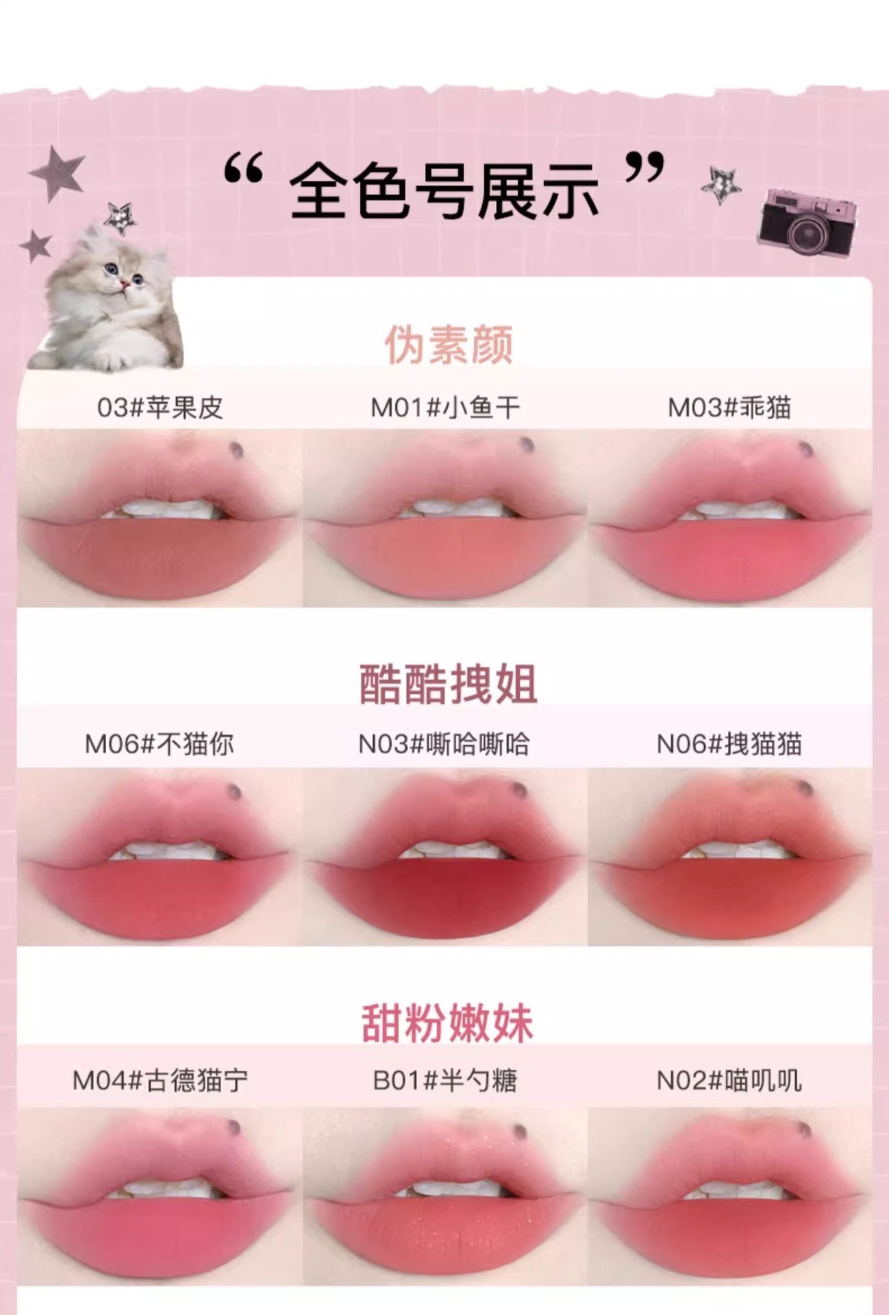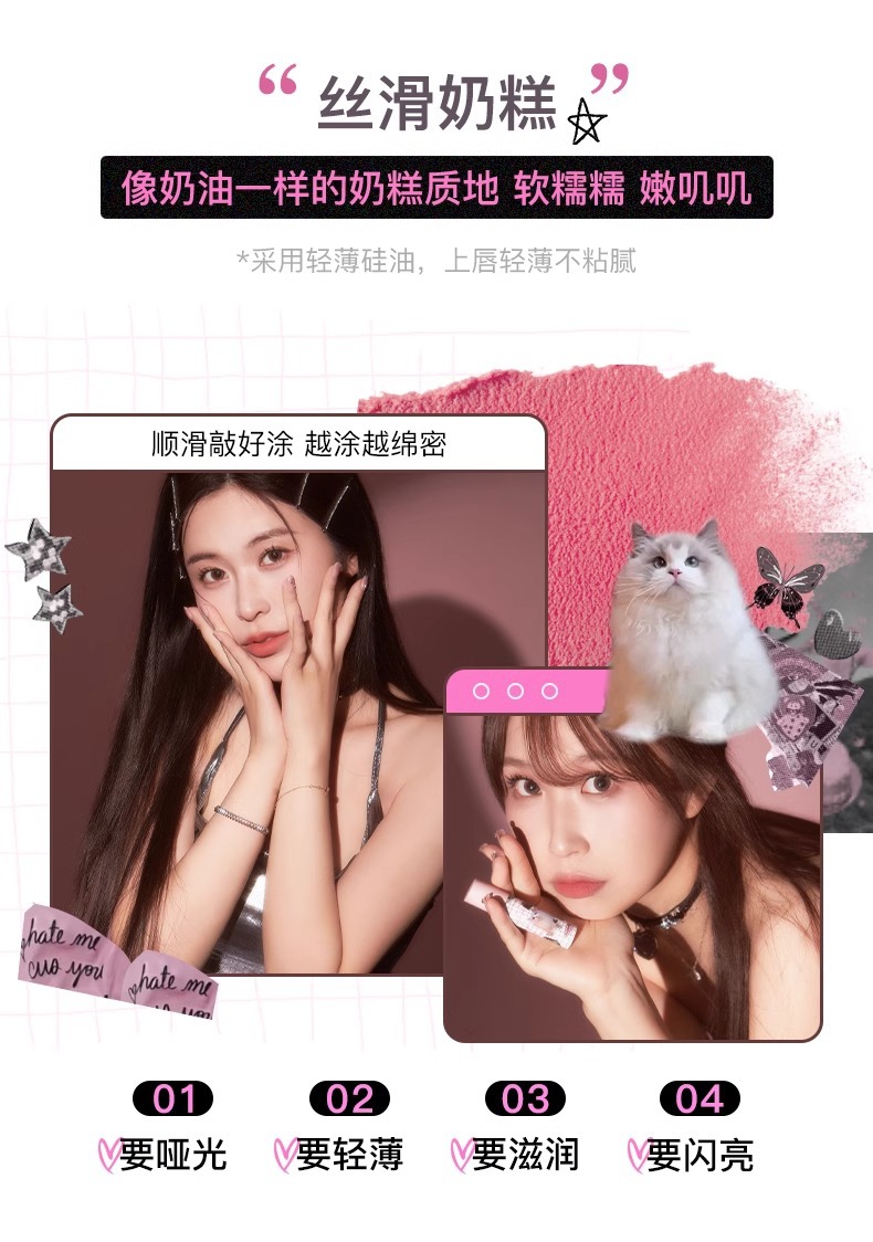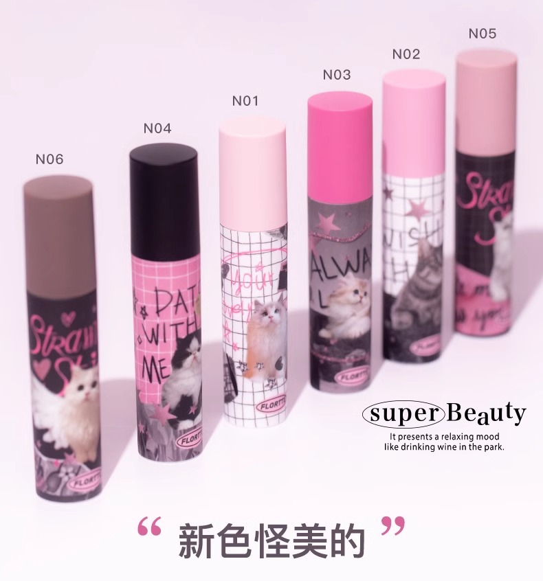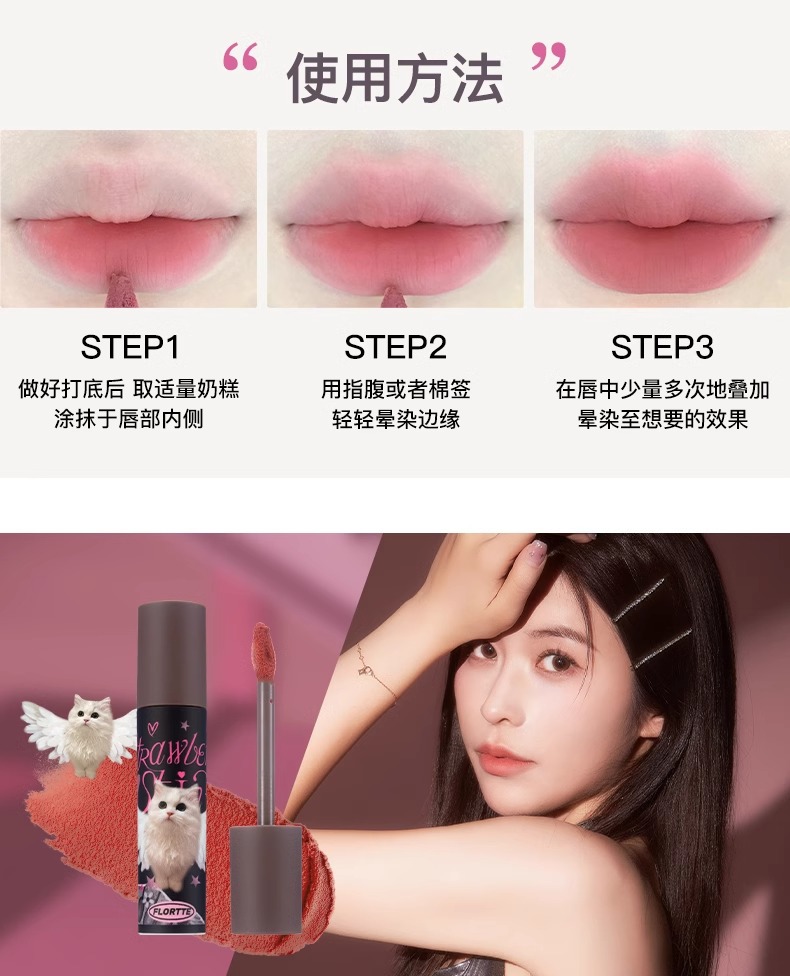 FLORTTE/花洛莉亚怪美莉亚系列猫咪奶糕唇霜唇泥雾面细闪唇釉 心选到家