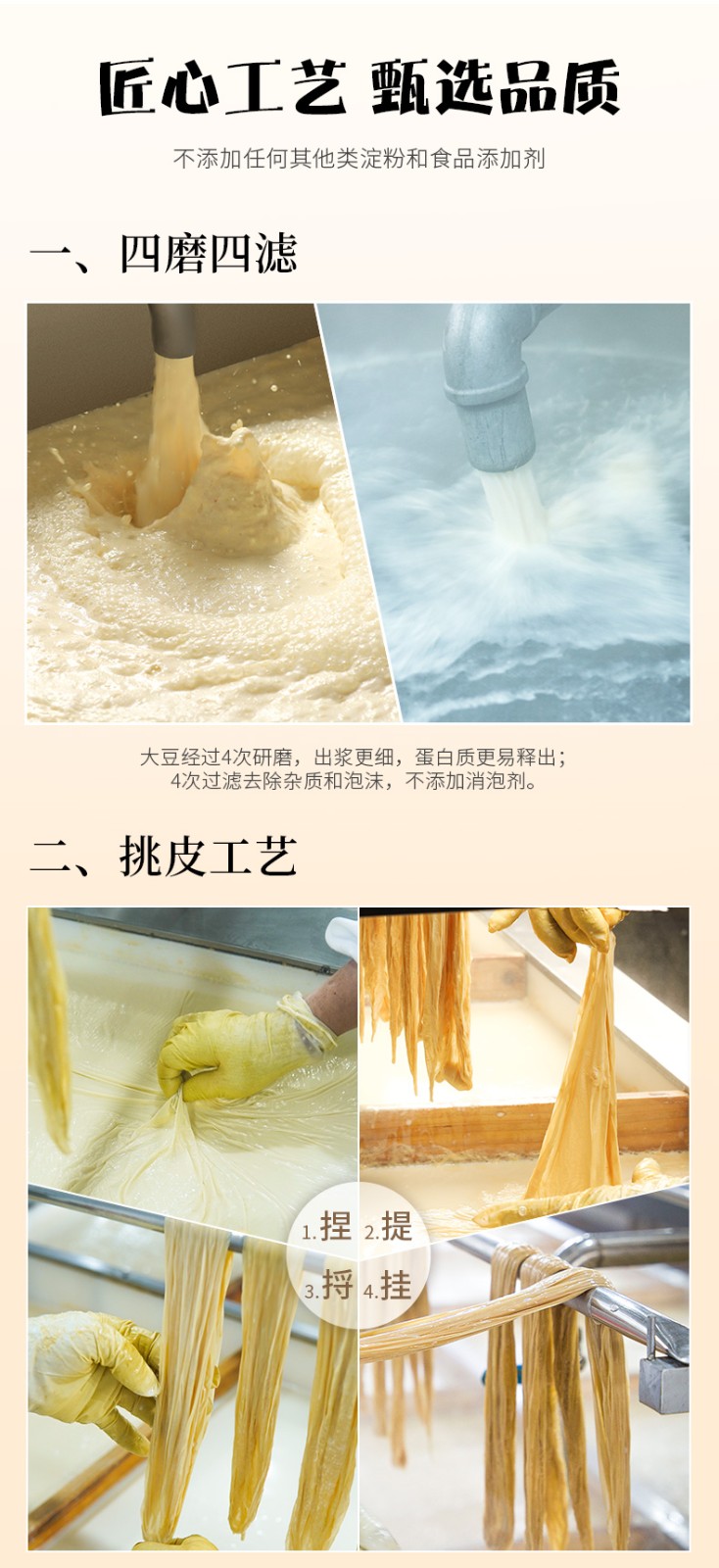胡伢子手工黄豆腐竹400g 头层豆腐皮黄豆制品水南特产南北干货 火锅材料 豆香浓郁 真空包装
