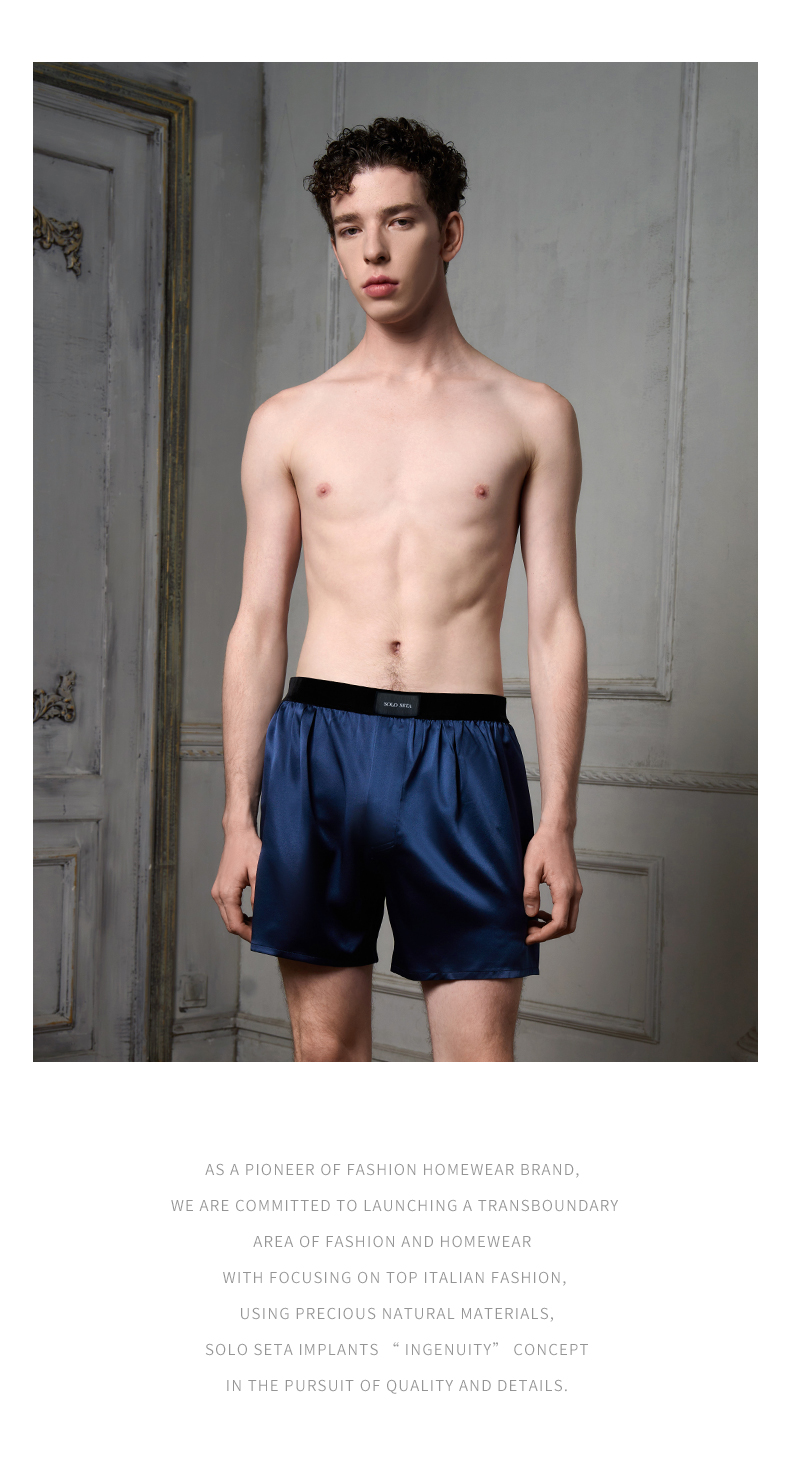 Solo seta22姆米真丝睡裤男款桑蚕丝家居服丝绸橡筋短裤秋冬