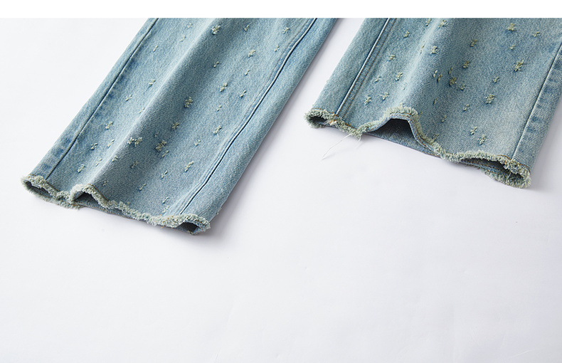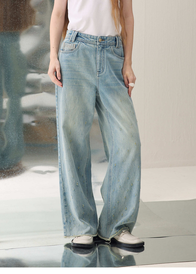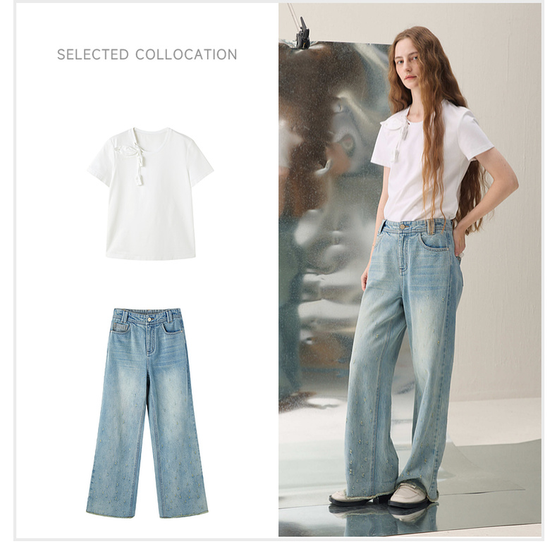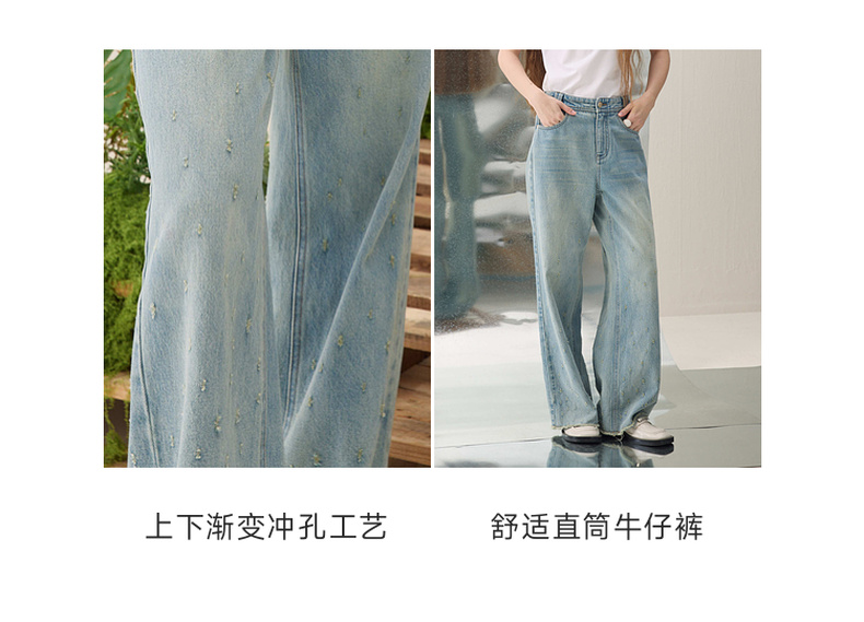 谜底阔腿牛仔裤长裤2026夏季新品天丝棉烫钻破洞浅蓝女262MJ0453