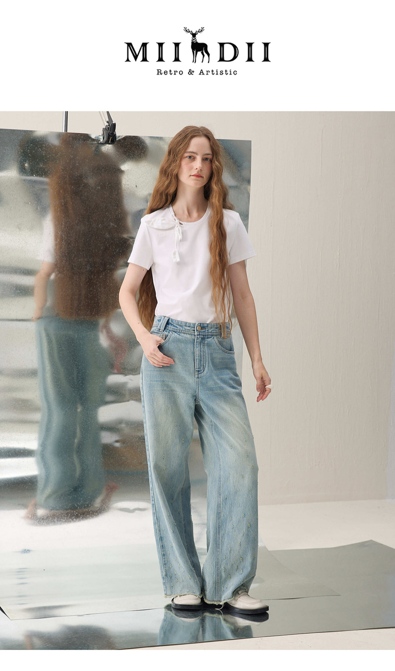 谜底直筒牛仔裤长裤2026年春季新品渐变复古后腰橡筋女261MJ0234