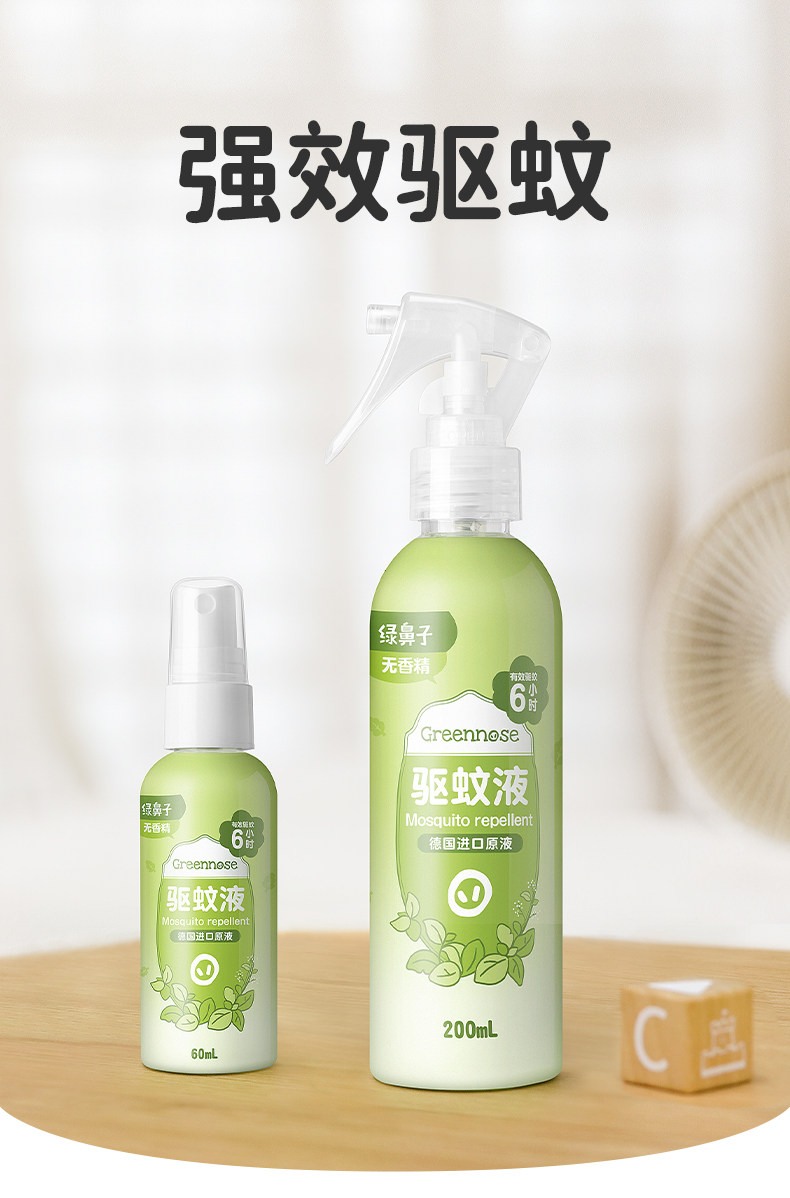 【59元3件】绿鼻子驱蚊喷雾防蚊水花露水便携户外出行家用驱蚊液送婴儿童用品