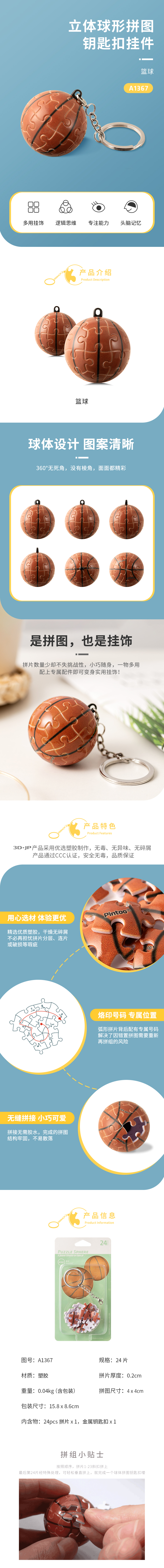24片 钥匙扣拼图 塑料拼图 A1367 篮球