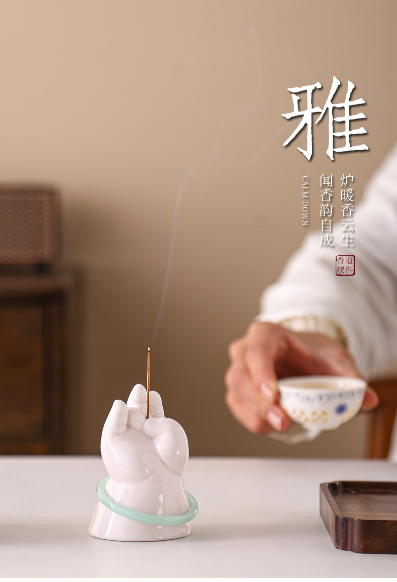 【敦煌小佛手陶瓷香插】敦煌陶瓷小胖佛手线香香插创意香薰炉家用室内摆件香座香座