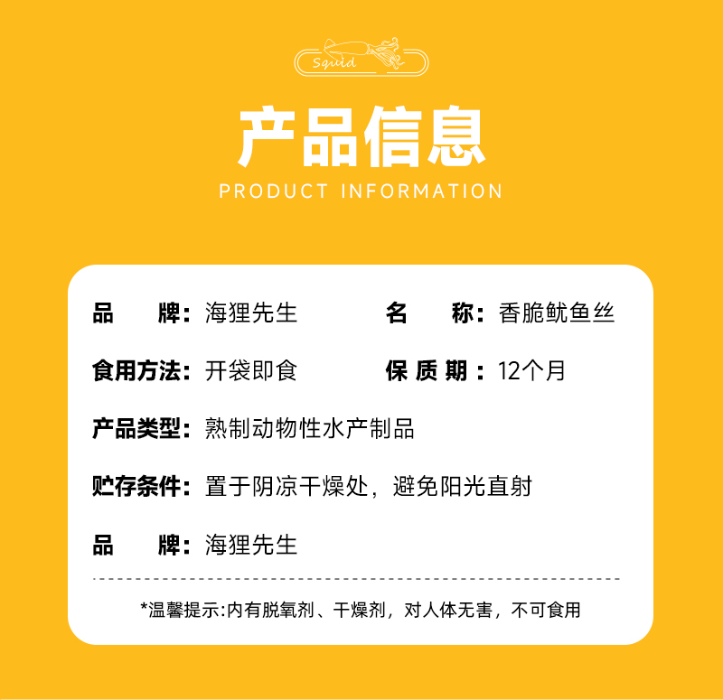 海狸先生香脆鱿鱼丝33g/袋原味黄油蒜香味芥末味多种规格可选