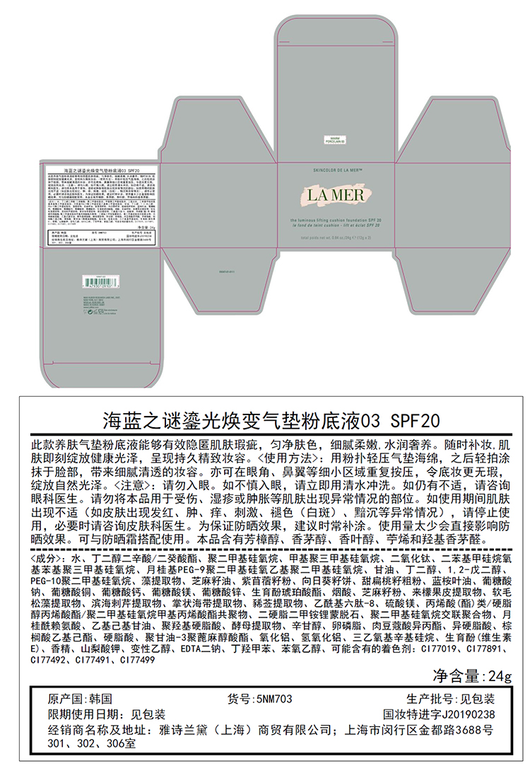 海蓝之谜鎏光焕变气垫粉底液24g #01粉瓷色 #03暖瓷色