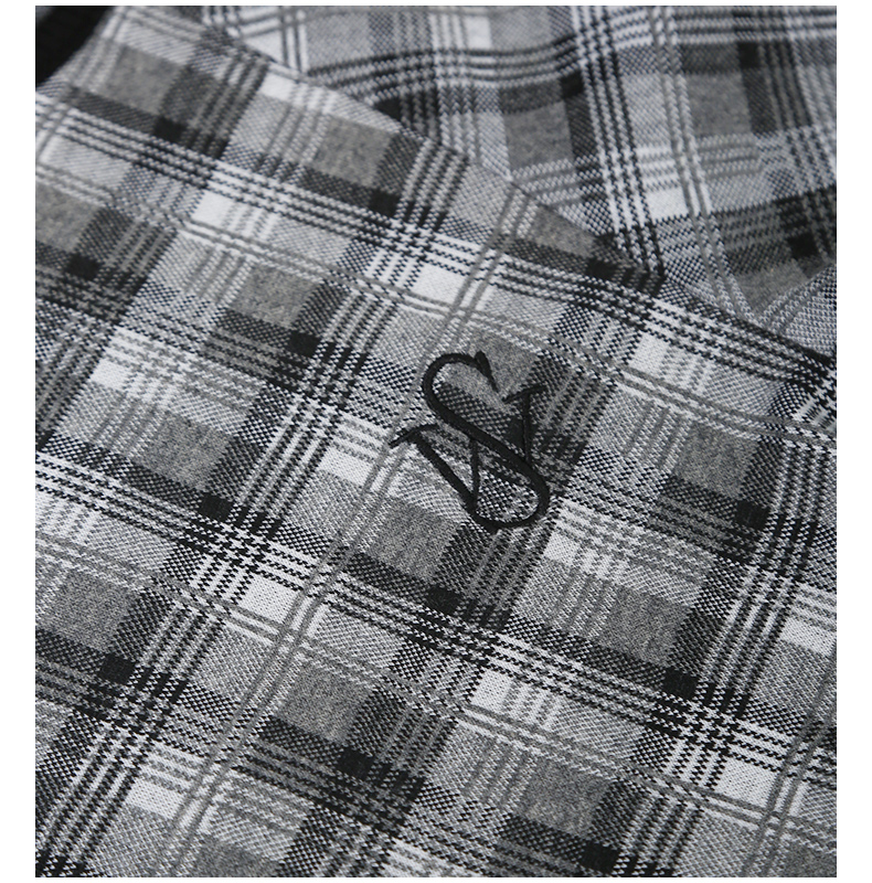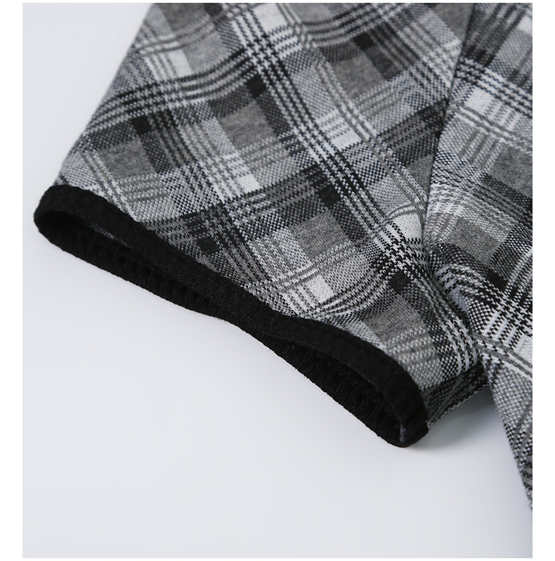 SELFWHO 黑色格子T恤女2024新款春学院风圆领百搭插肩设计感上衣