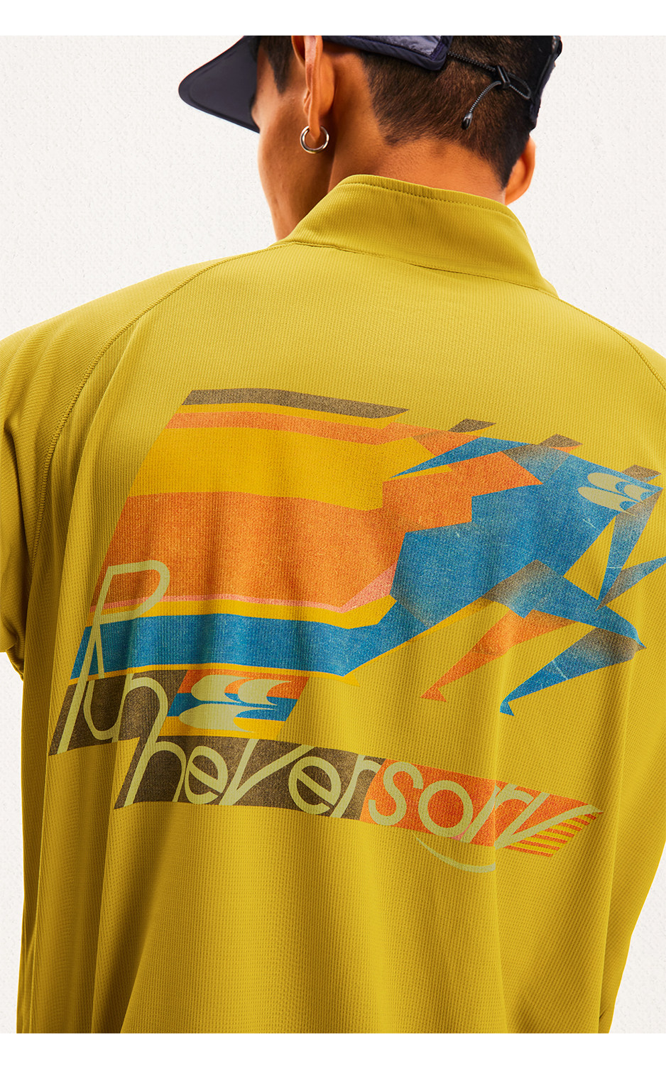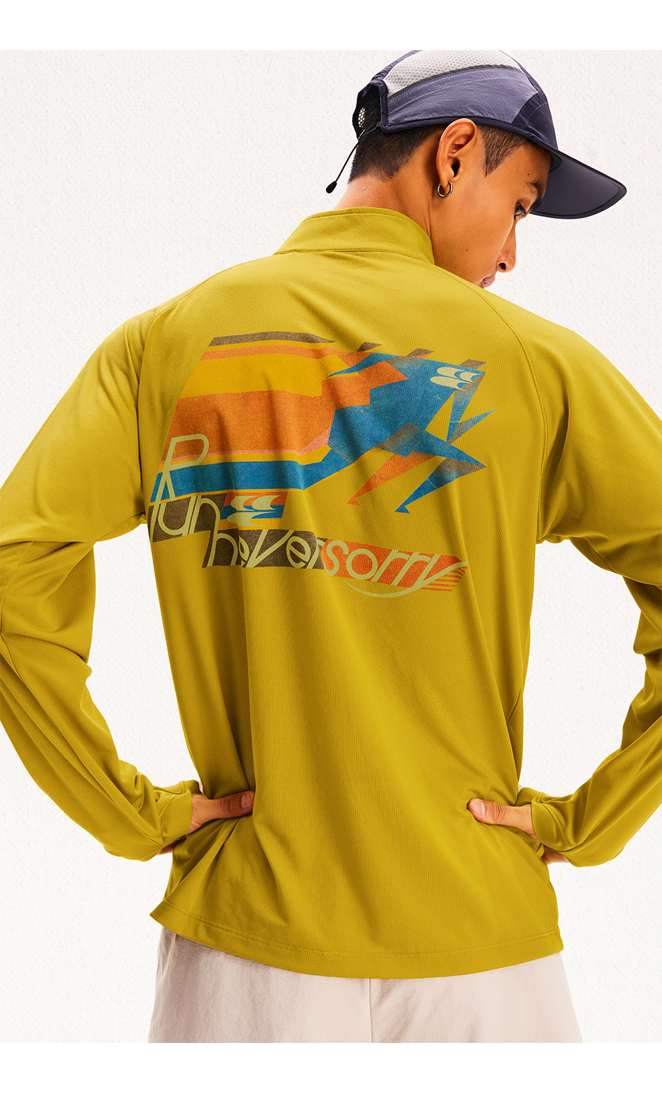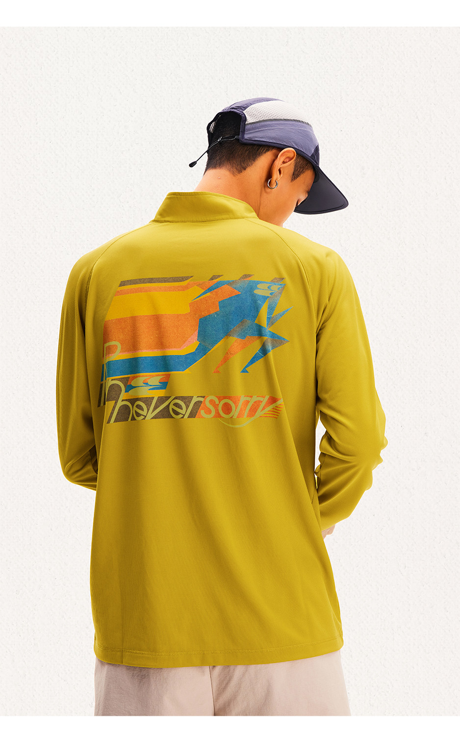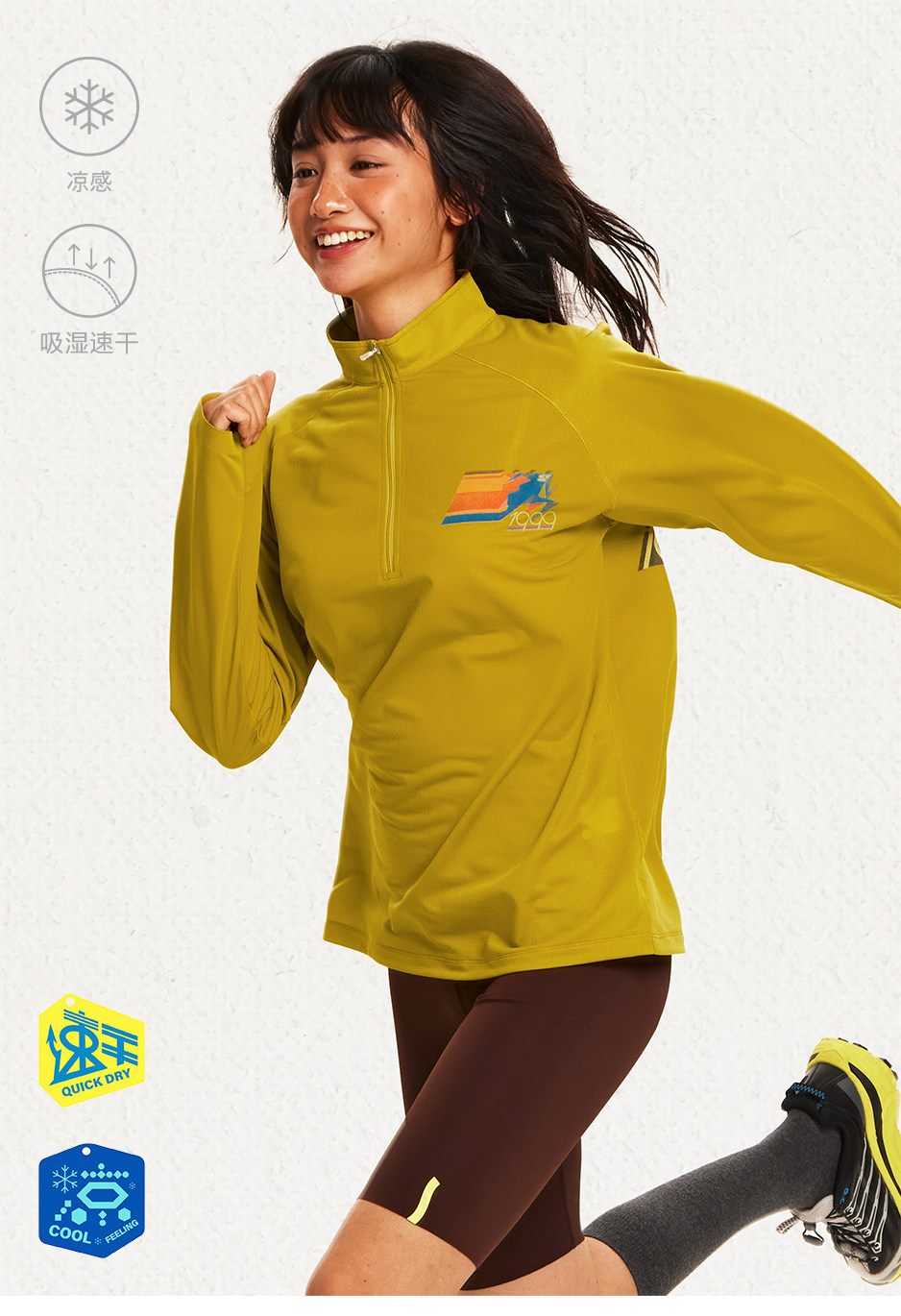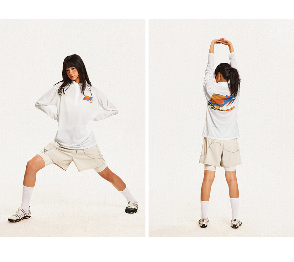 CryingCenter 网布半拉速干跑步羽毛球长袖复古印花凉感Tee