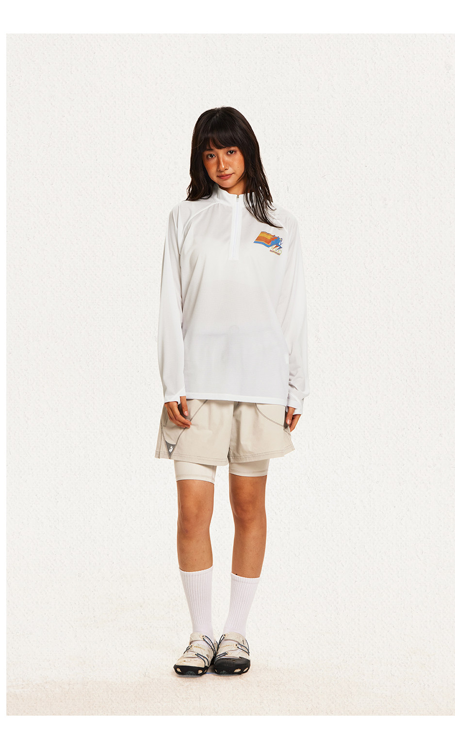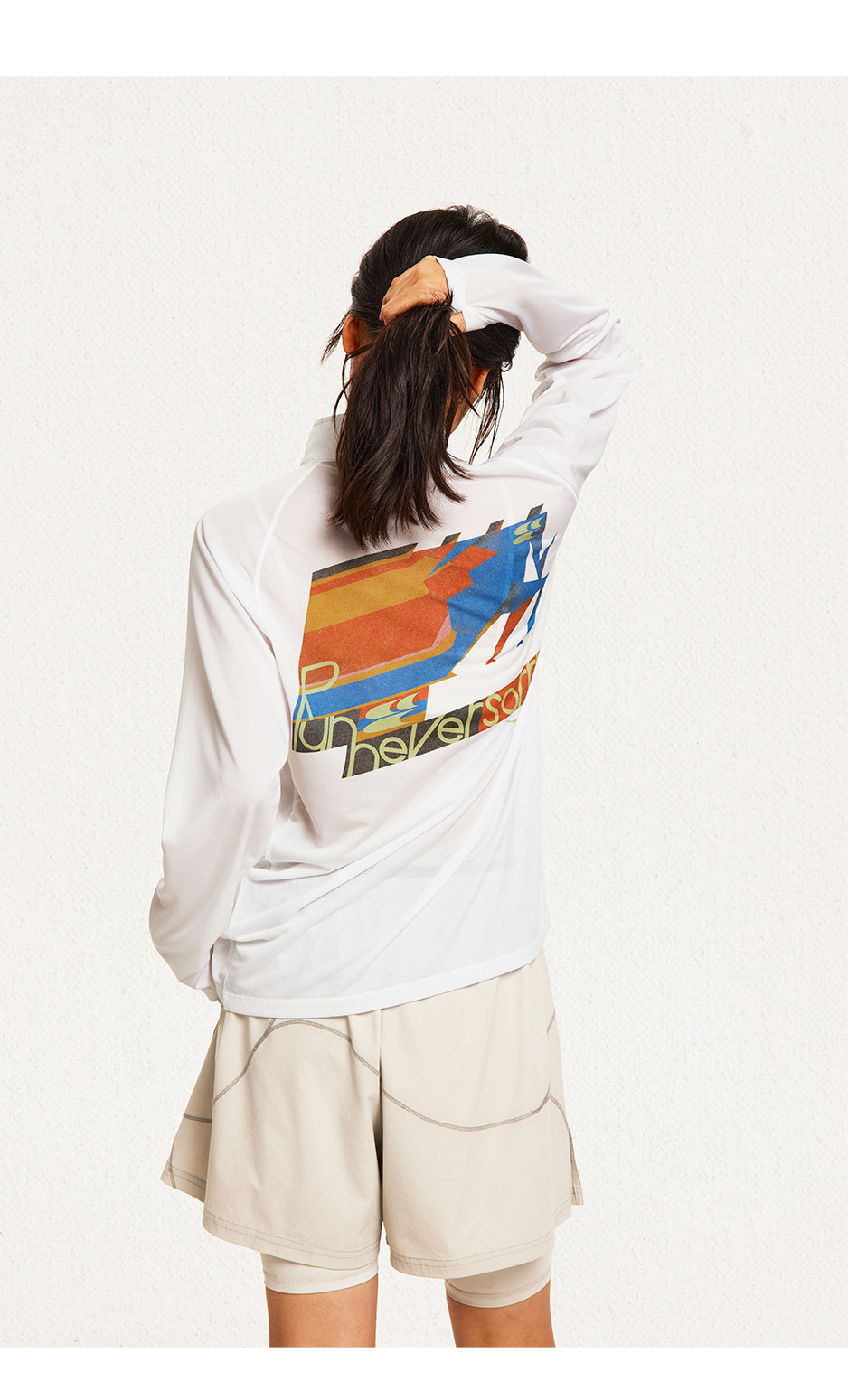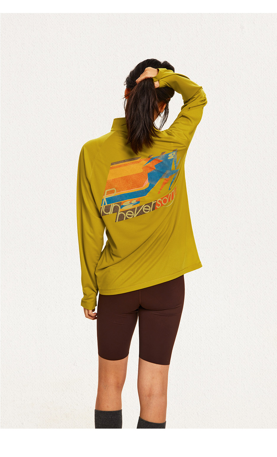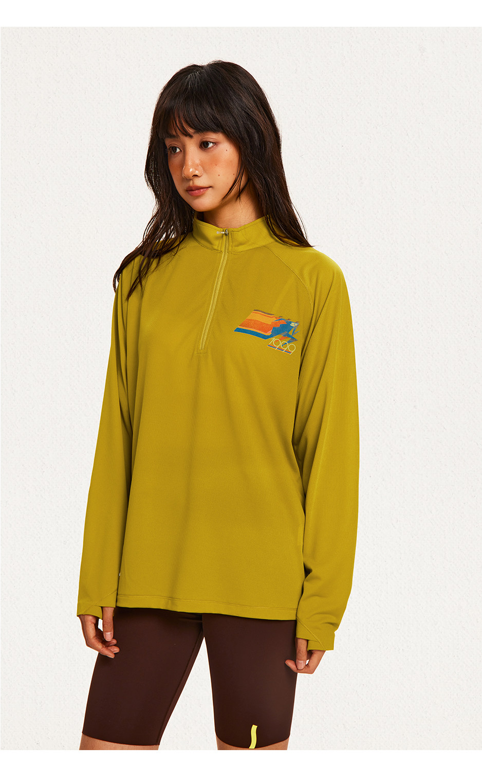 CryingCenter 网布半拉速干跑步羽毛球长袖复古印花凉感Tee
