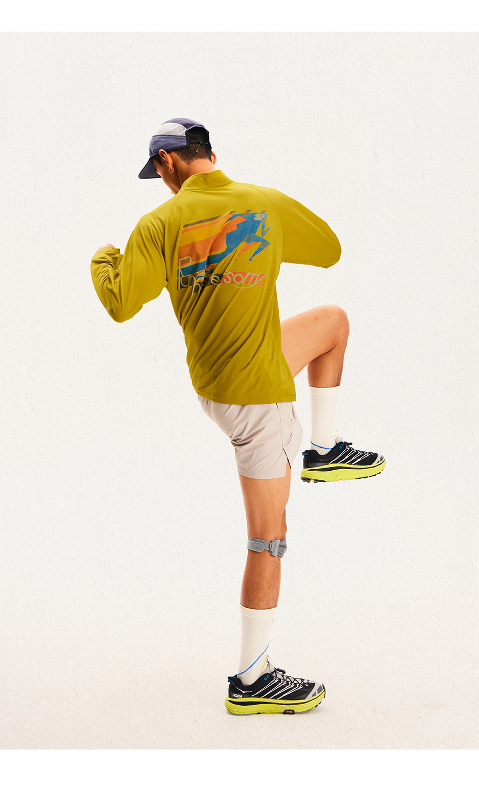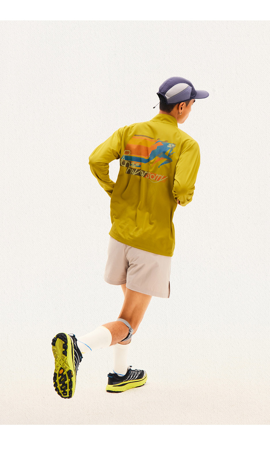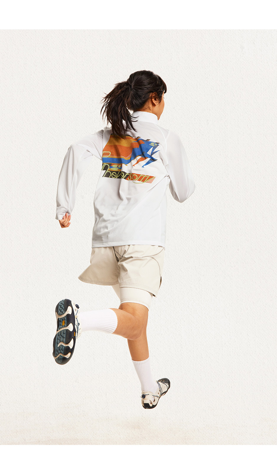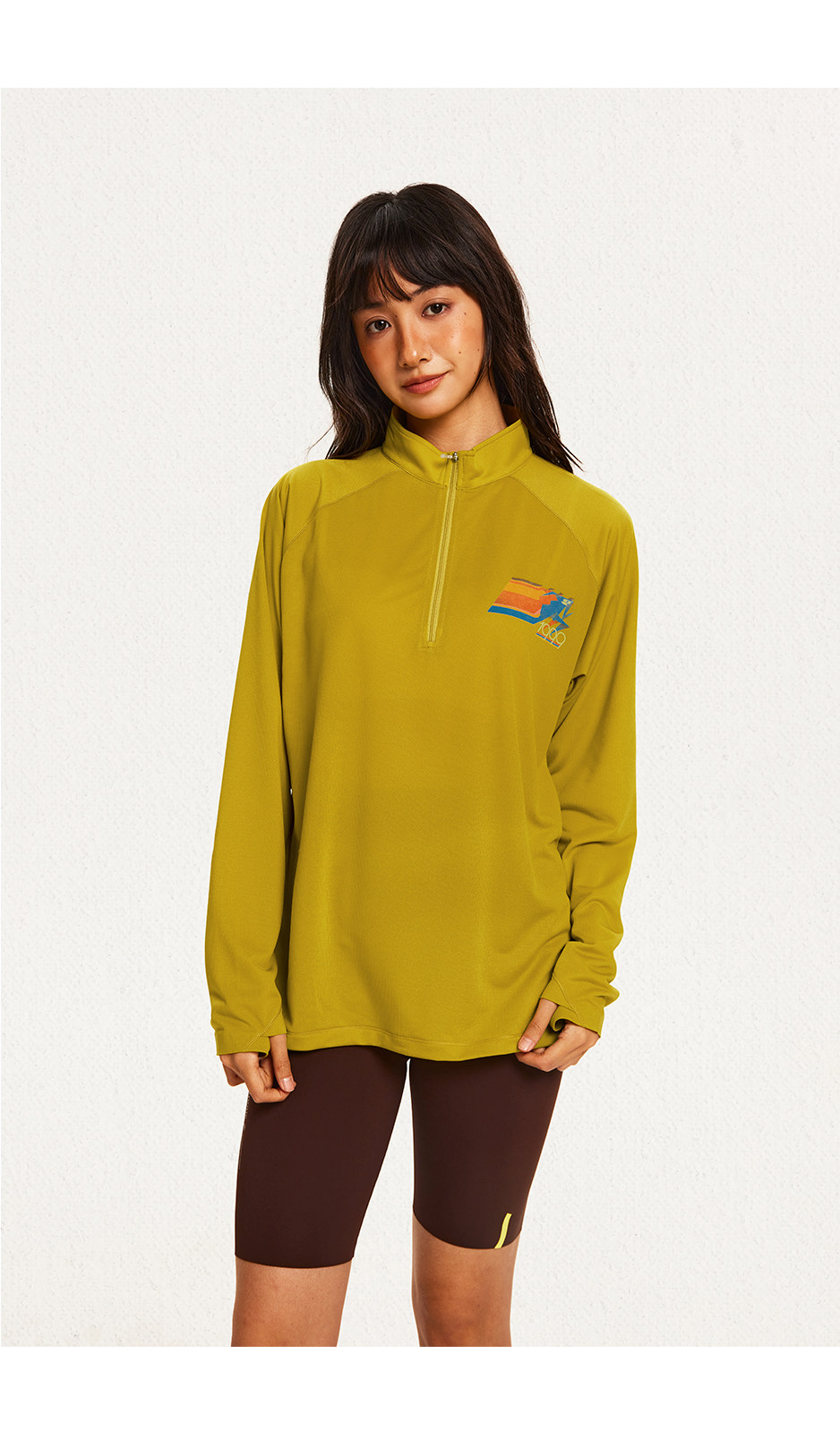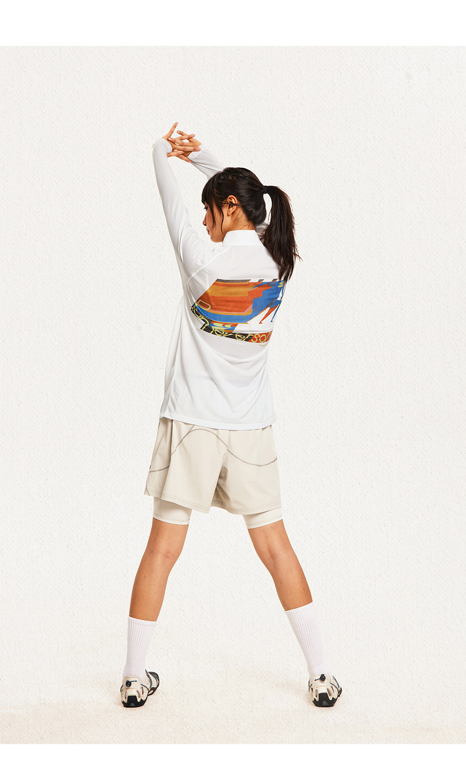 CryingCenter 网布半拉速干跑步羽毛球长袖复古印花凉感Tee