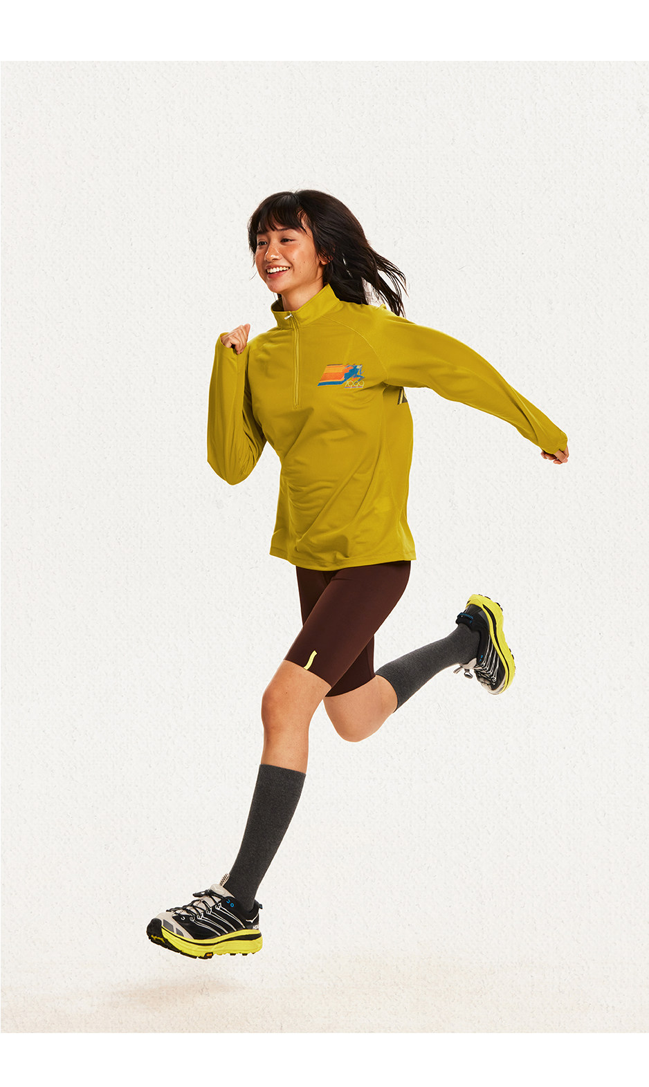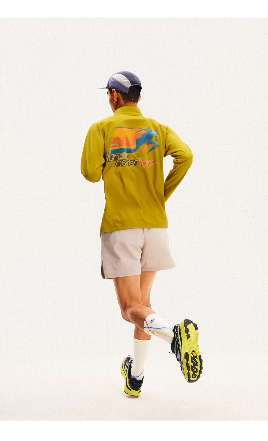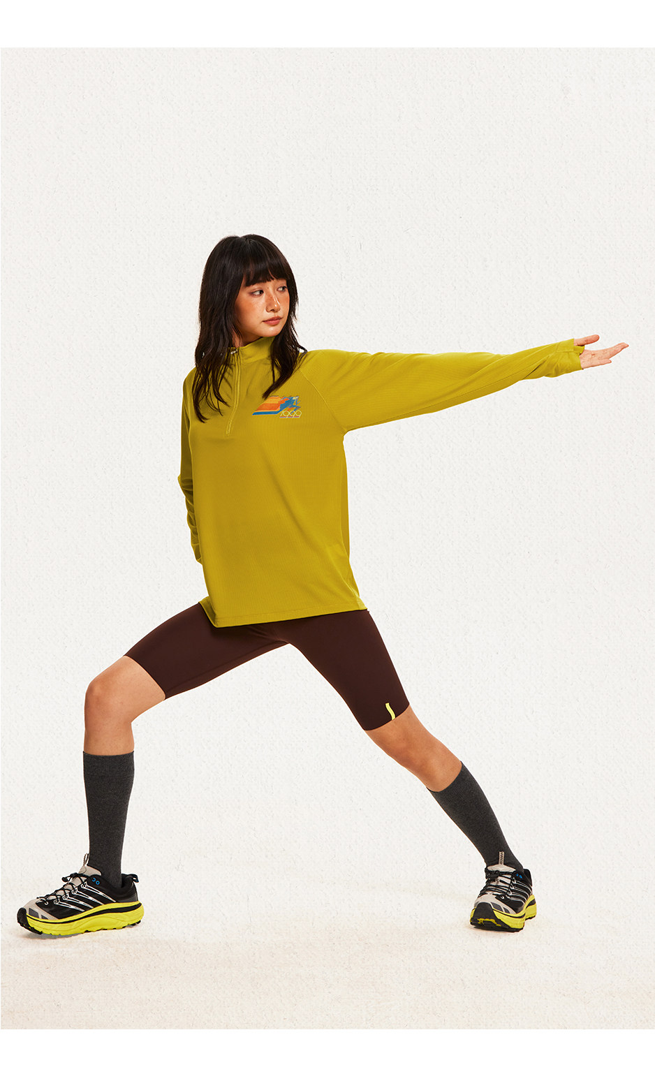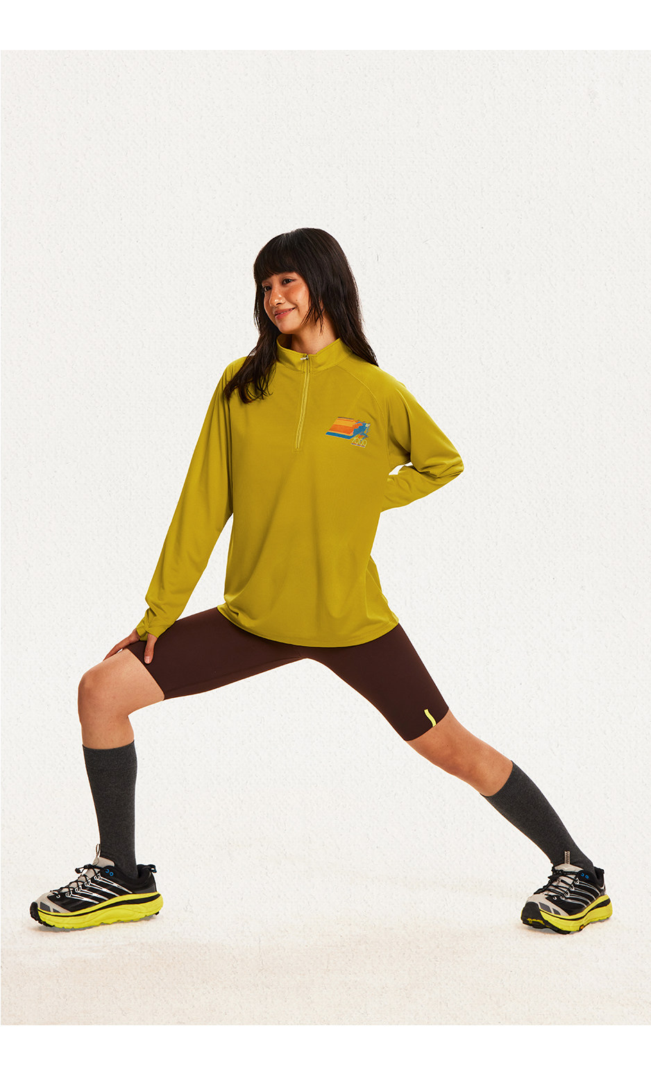 CryingCenter 网布半拉速干跑步羽毛球长袖复古印花凉感Tee