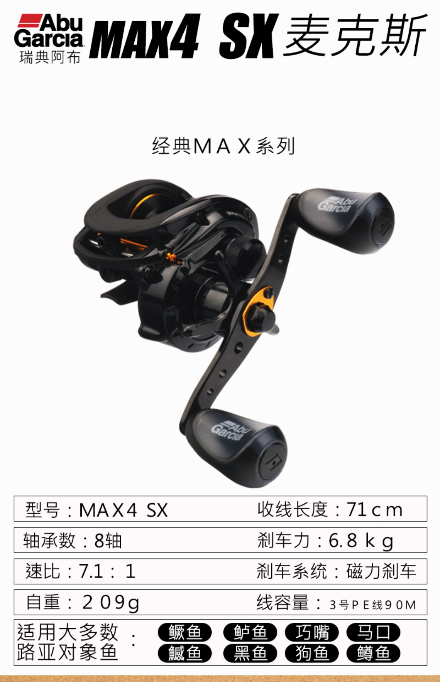 阿布P4sx高速比水滴轮防炸线鱼轮左右手超远投翘嘴鲈鱼路亚鱼线轮