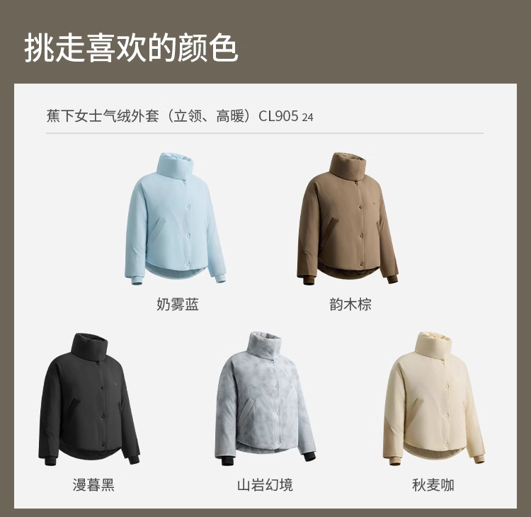 【蕉下】女士气绒外套(立领、高暖)CL90524/CL90624