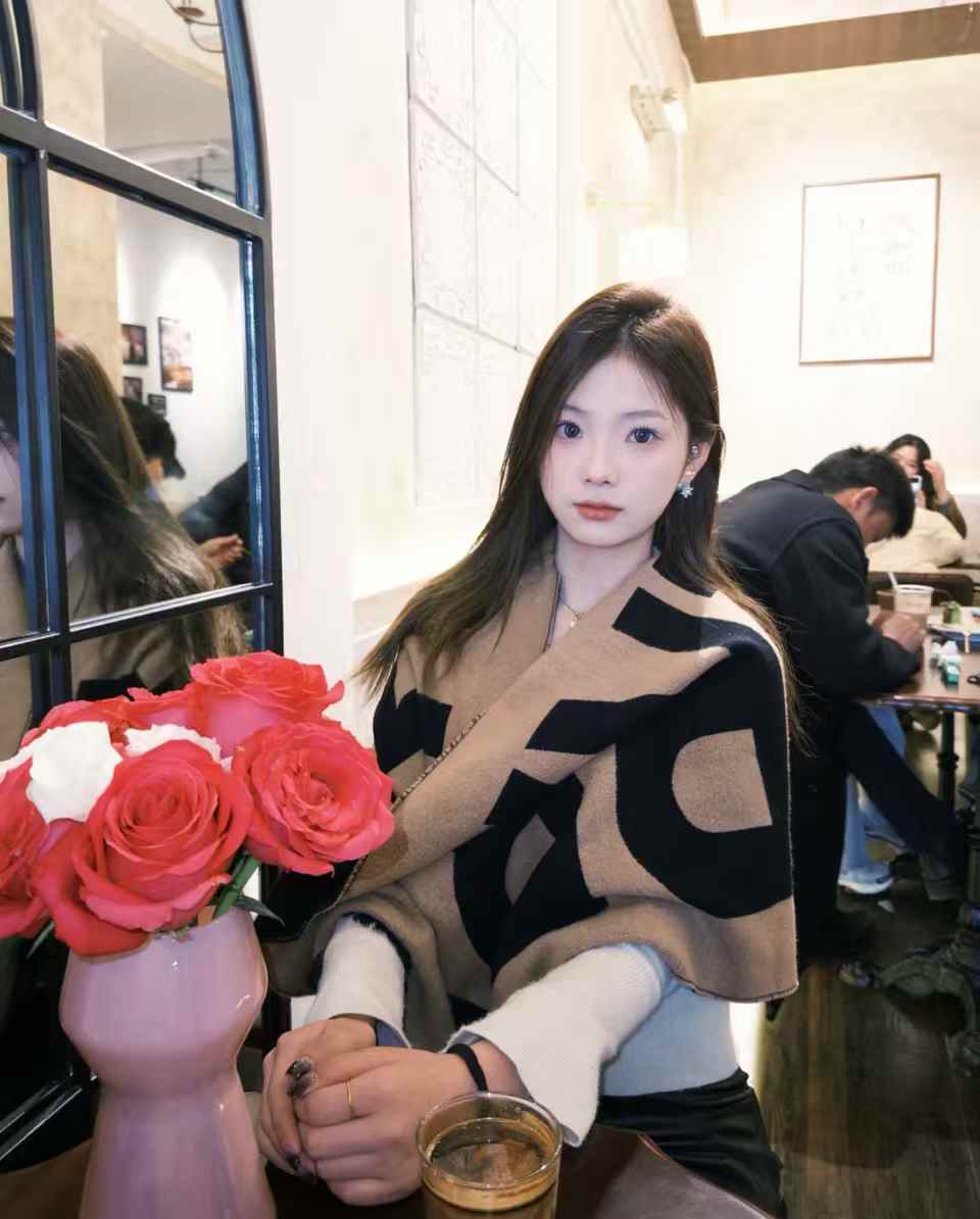 BURBERRY Logo Wool Jacquard Scarf 大字母绒线围巾 女款 卡其色/黑色