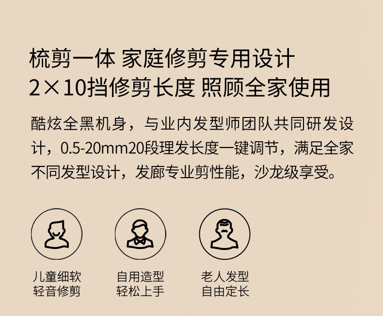 小适(showsee)理发器电动成人儿童剃头电推子全身水洗边充边用家用剃头剪刀理发工具 C4-BK