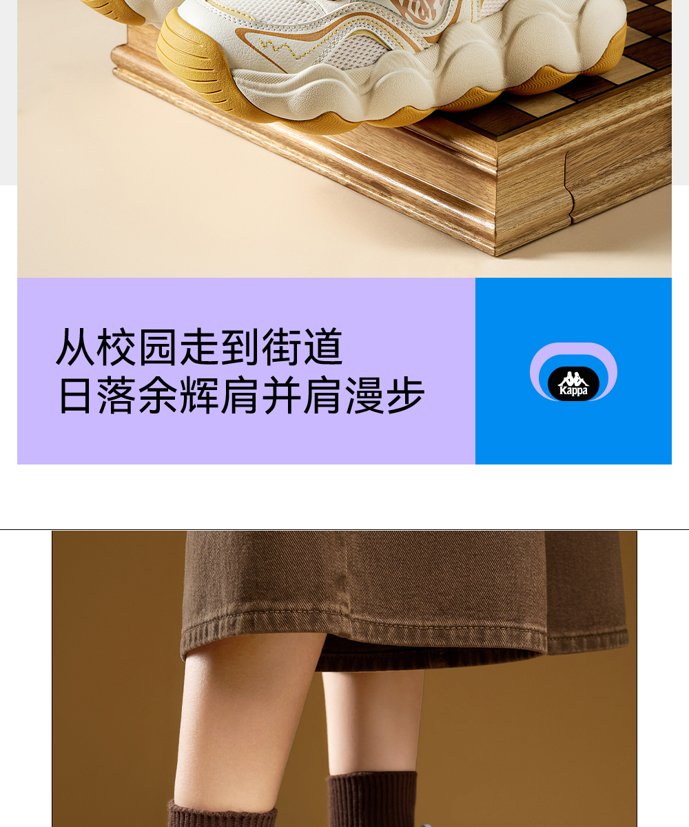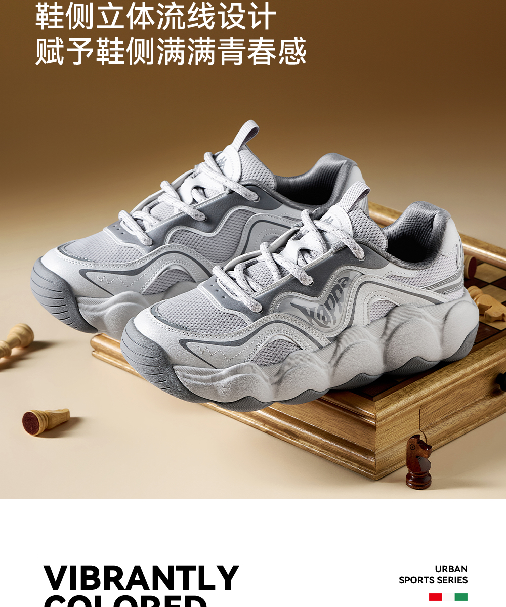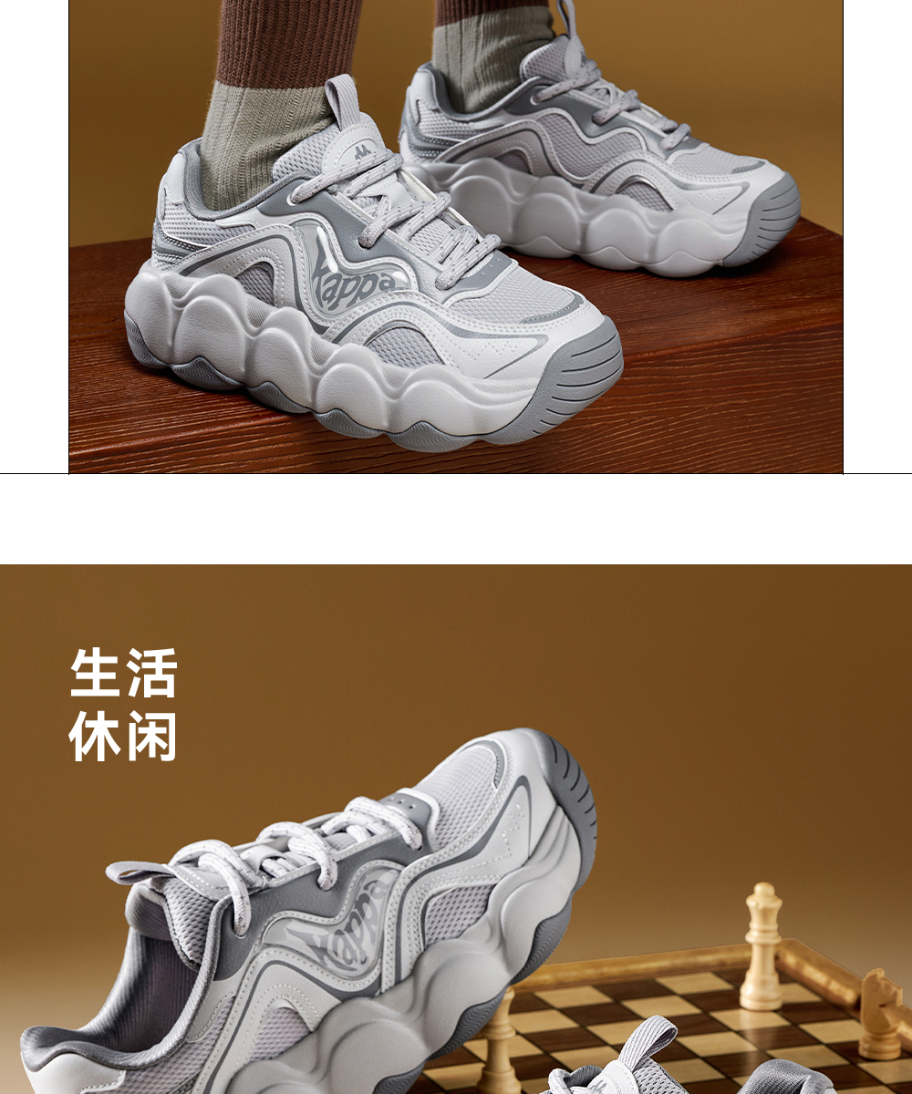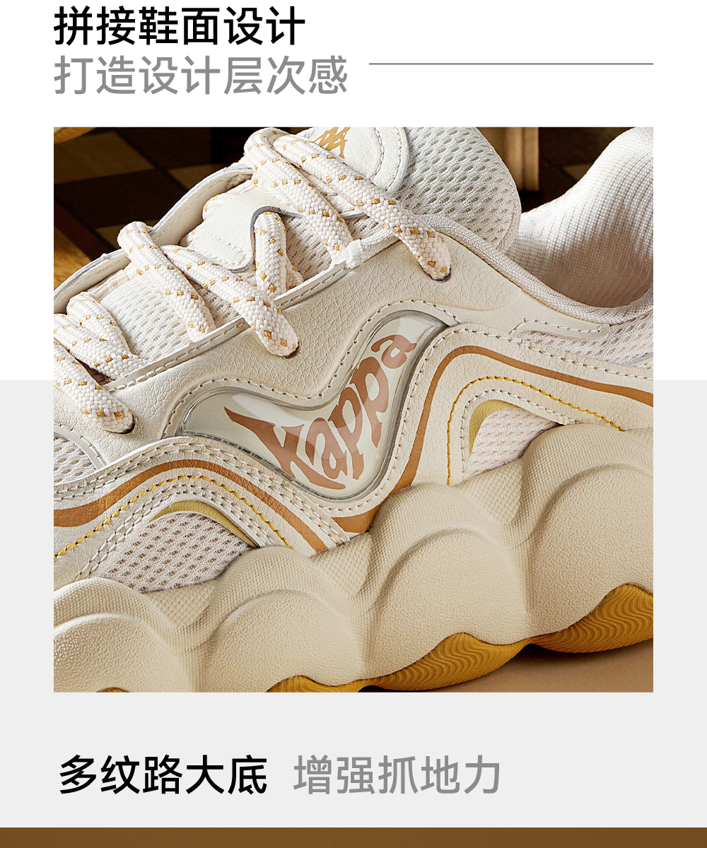 Kappa卡帕背靠背老爹鞋女款新款厚底透气面包鞋百搭休闲运动鞋女K0F65MC68