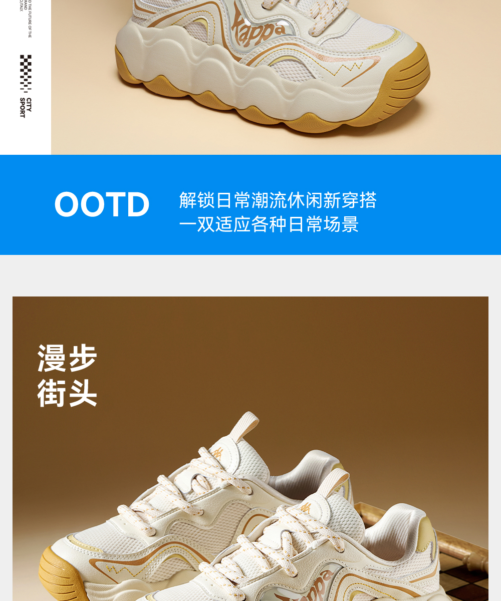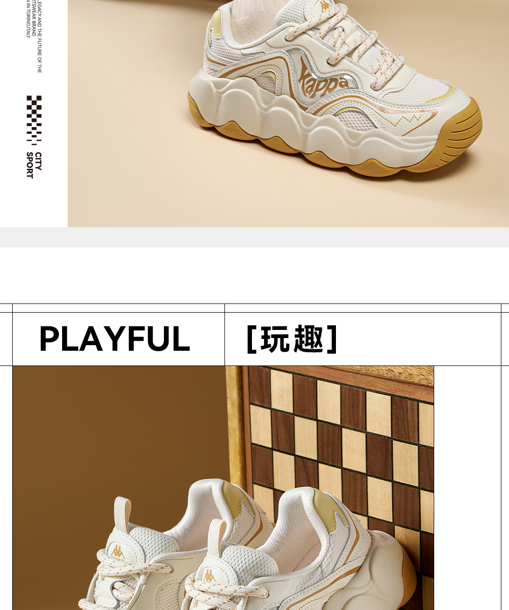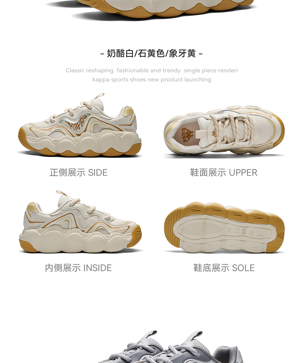Kappa卡帕背靠背老爹鞋女款新款厚底透气面包鞋百搭休闲运动鞋女K0F65MC68