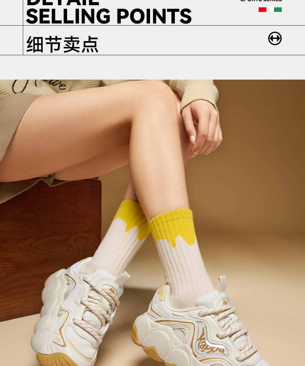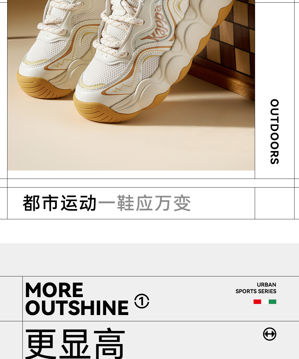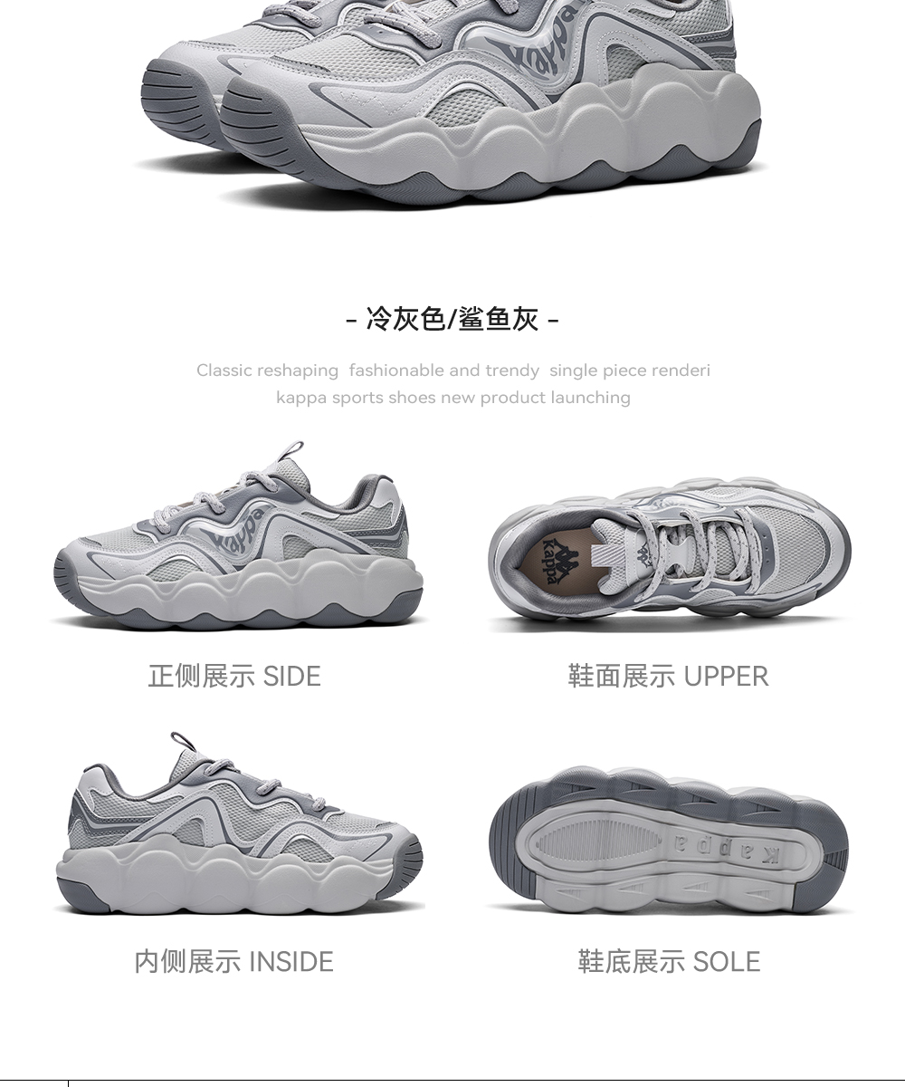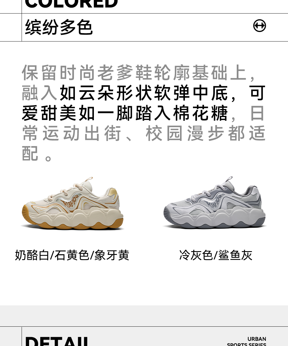 Kappa卡帕背靠背老爹鞋女款新款厚底透气面包鞋百搭休闲运动鞋女K0F65MC68