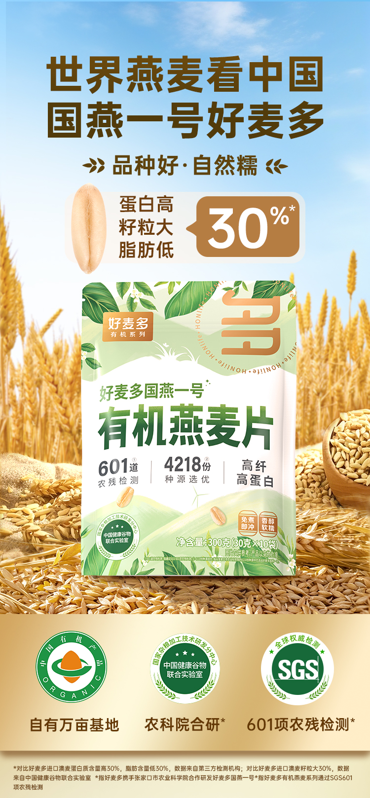 【好麦多】国燕一号有机燕麦片300g*3袋
