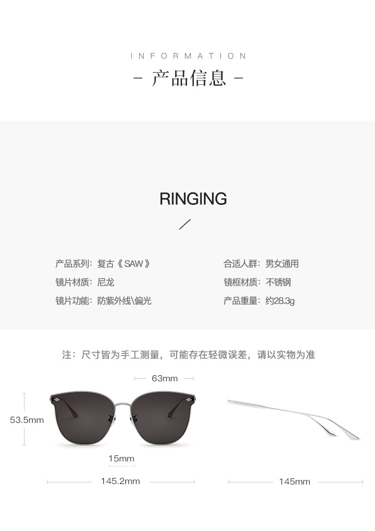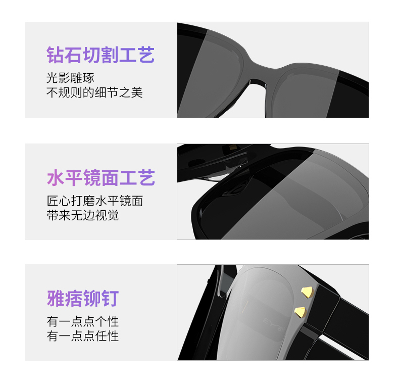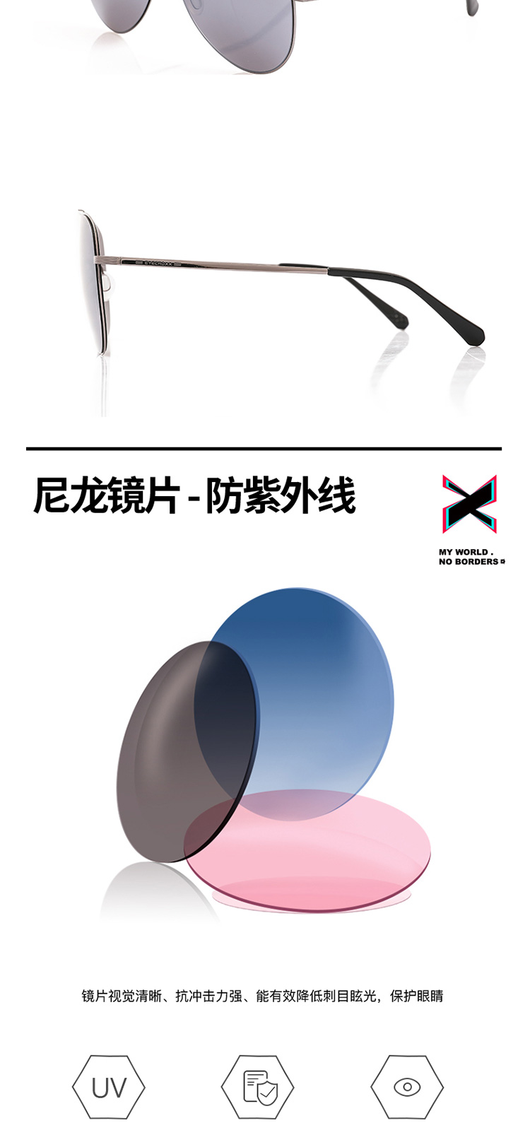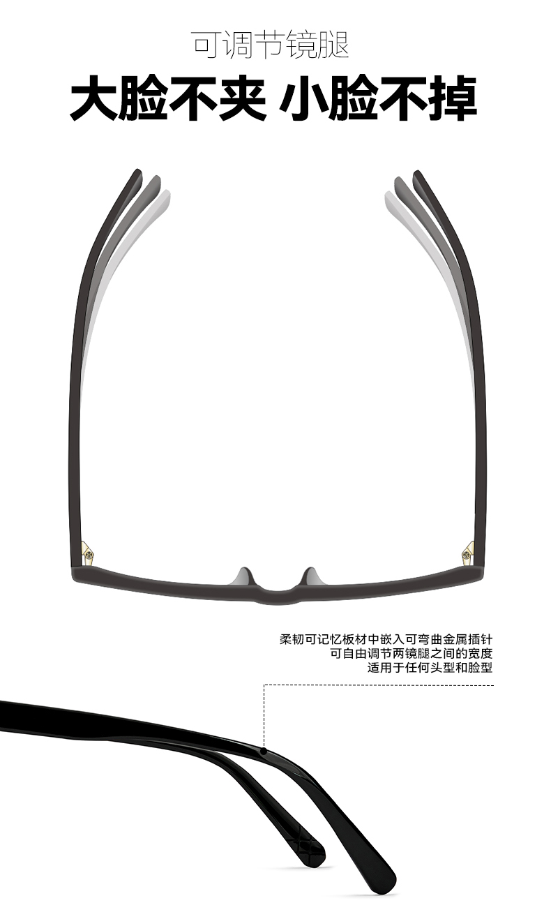 材质:镜框:板材 镜腿:板材 镜片:高清尼龙镜片/高清偏光尼龙镜片