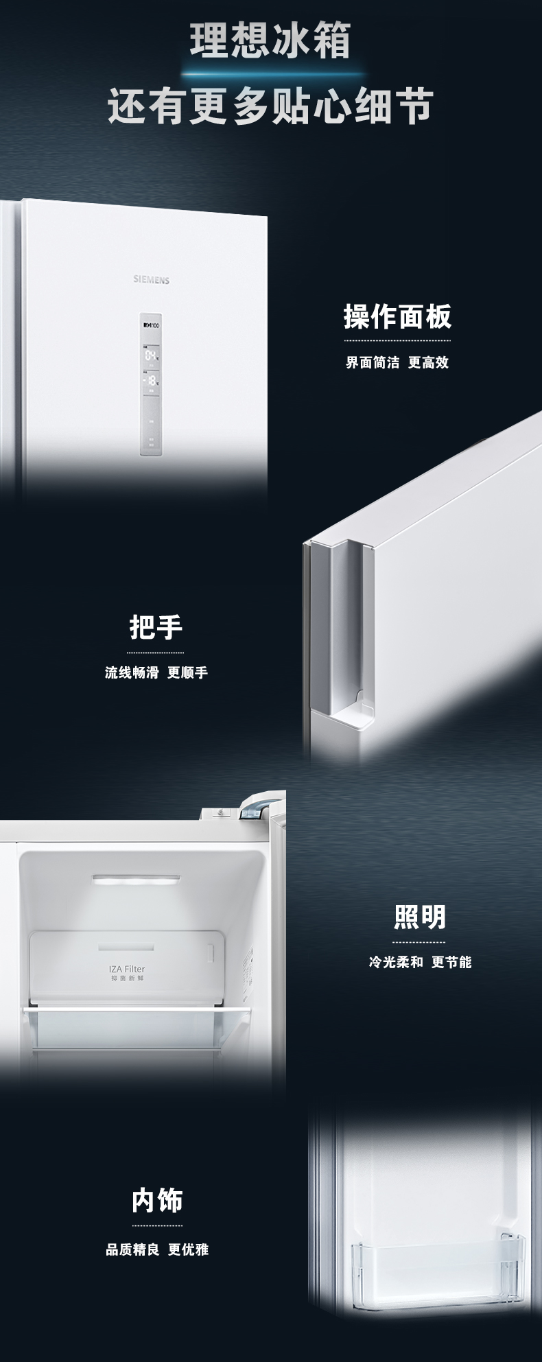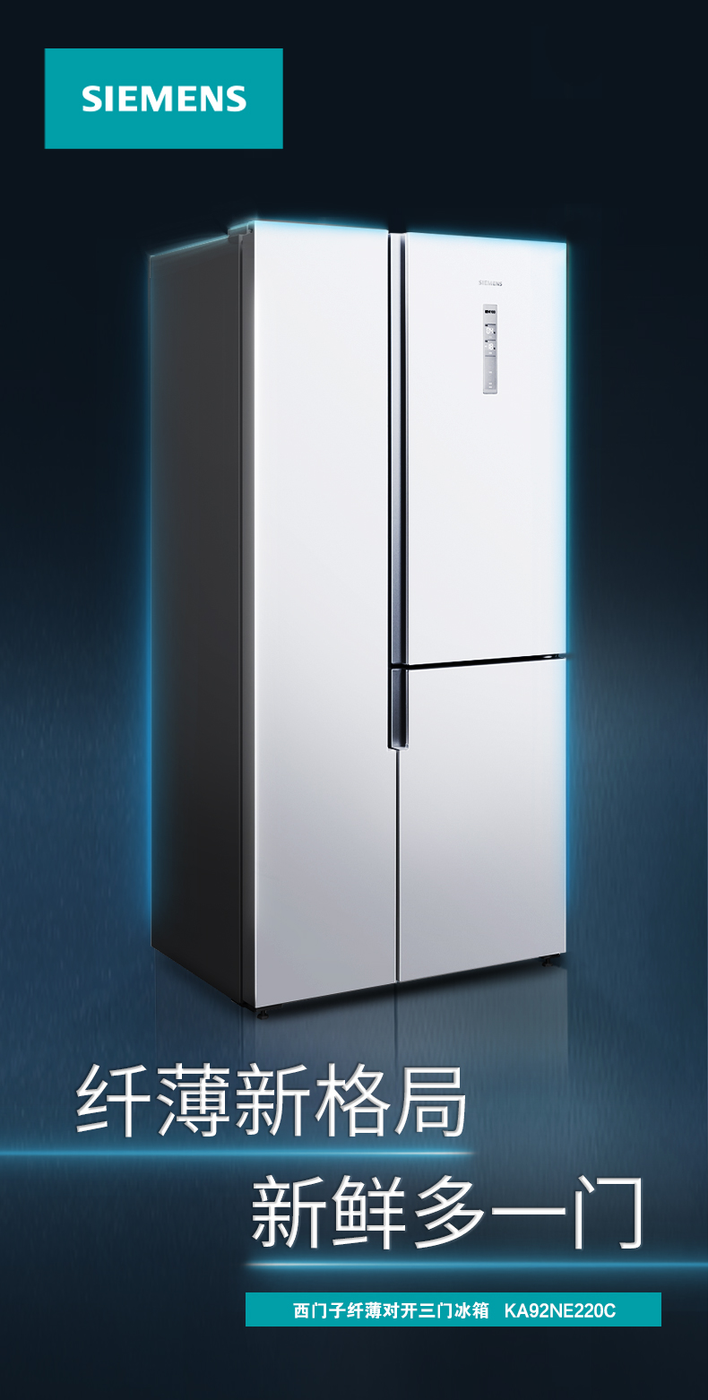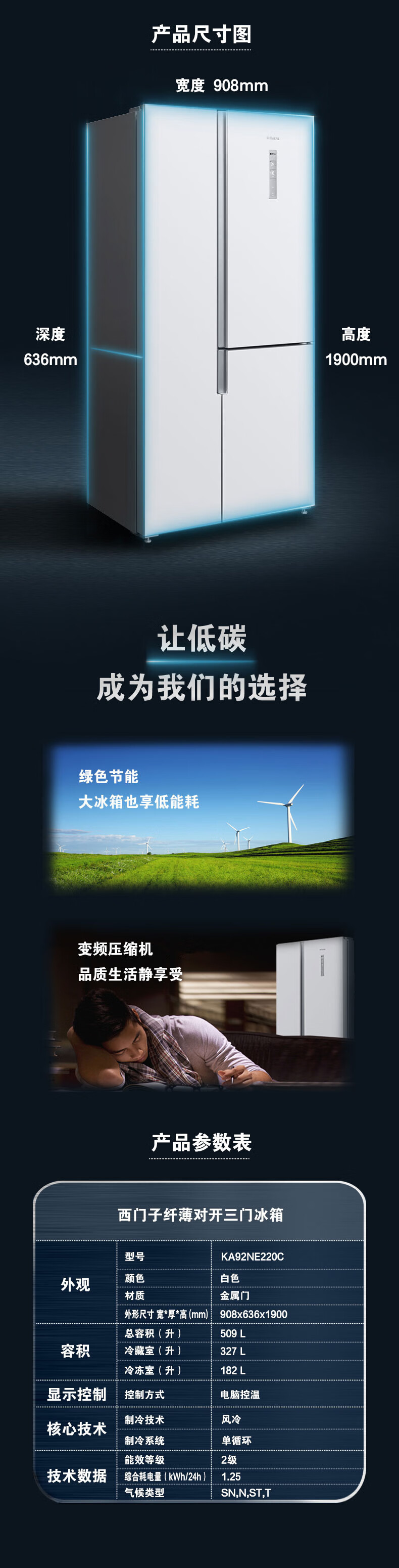 西门子(SIEMENS) 509升对开三门冰箱 灵活嵌入 分类储存大容量 风冷无霜BCD-509W(KA92NE220C)白色