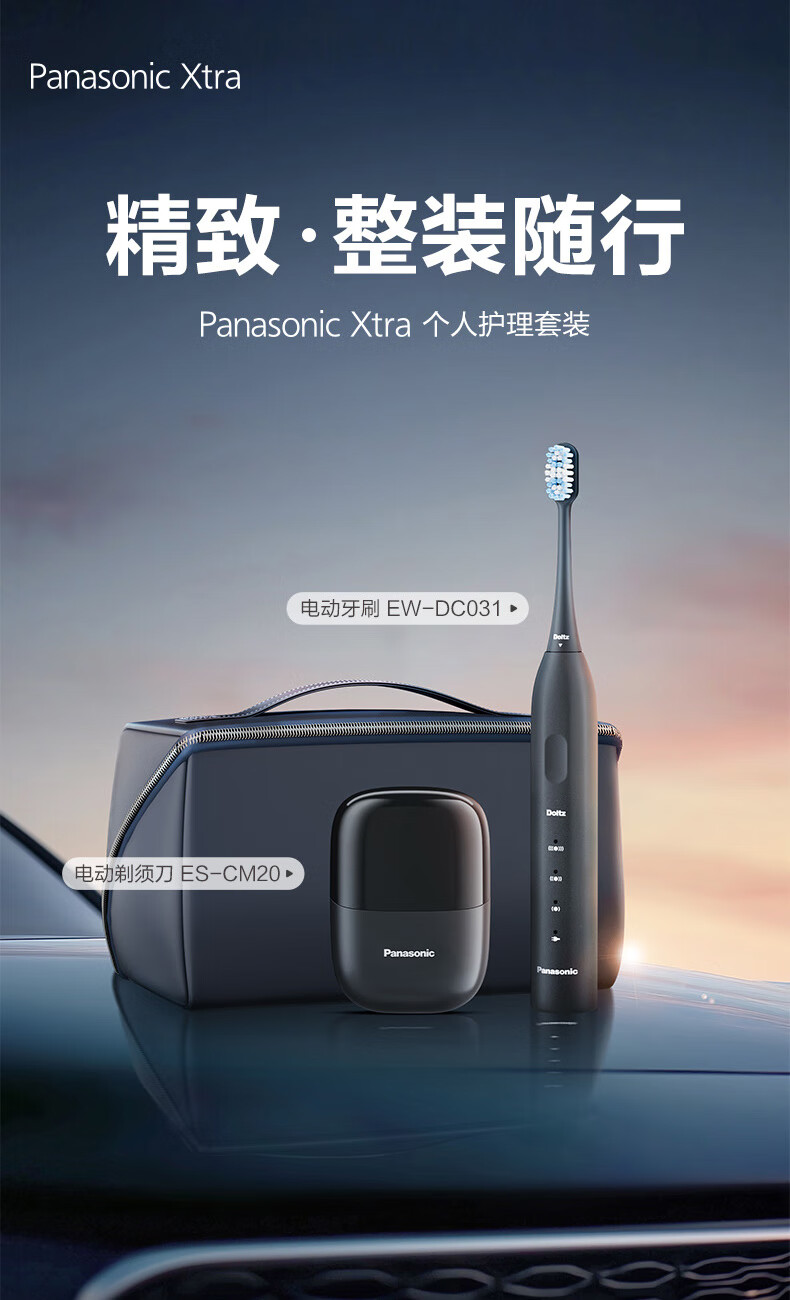 松下(Panasonic)小方盒剃须刀电动牙刷套装便携款往复式刮胡刀迷你送男生男朋友父亲生日礼物高档实用CML0 精致理容【净剃不留根洁齿抗菌】礼盒装_qb