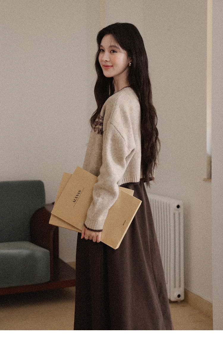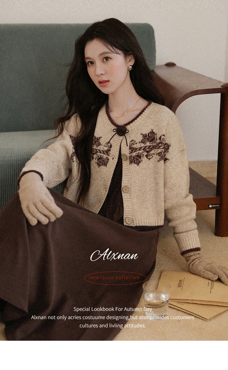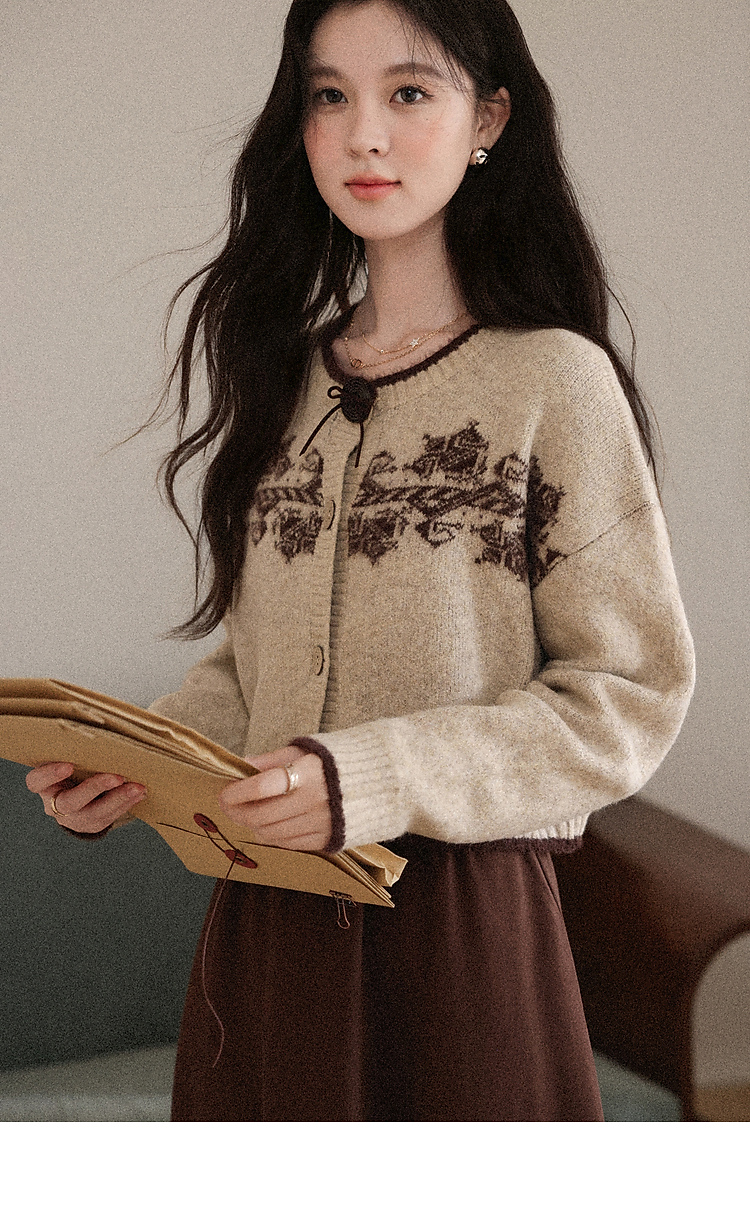 【6折秒杀】鹿向南「格调书室」燕麦色复古长袖毛衣女早秋高级感小众短款上衣L58055