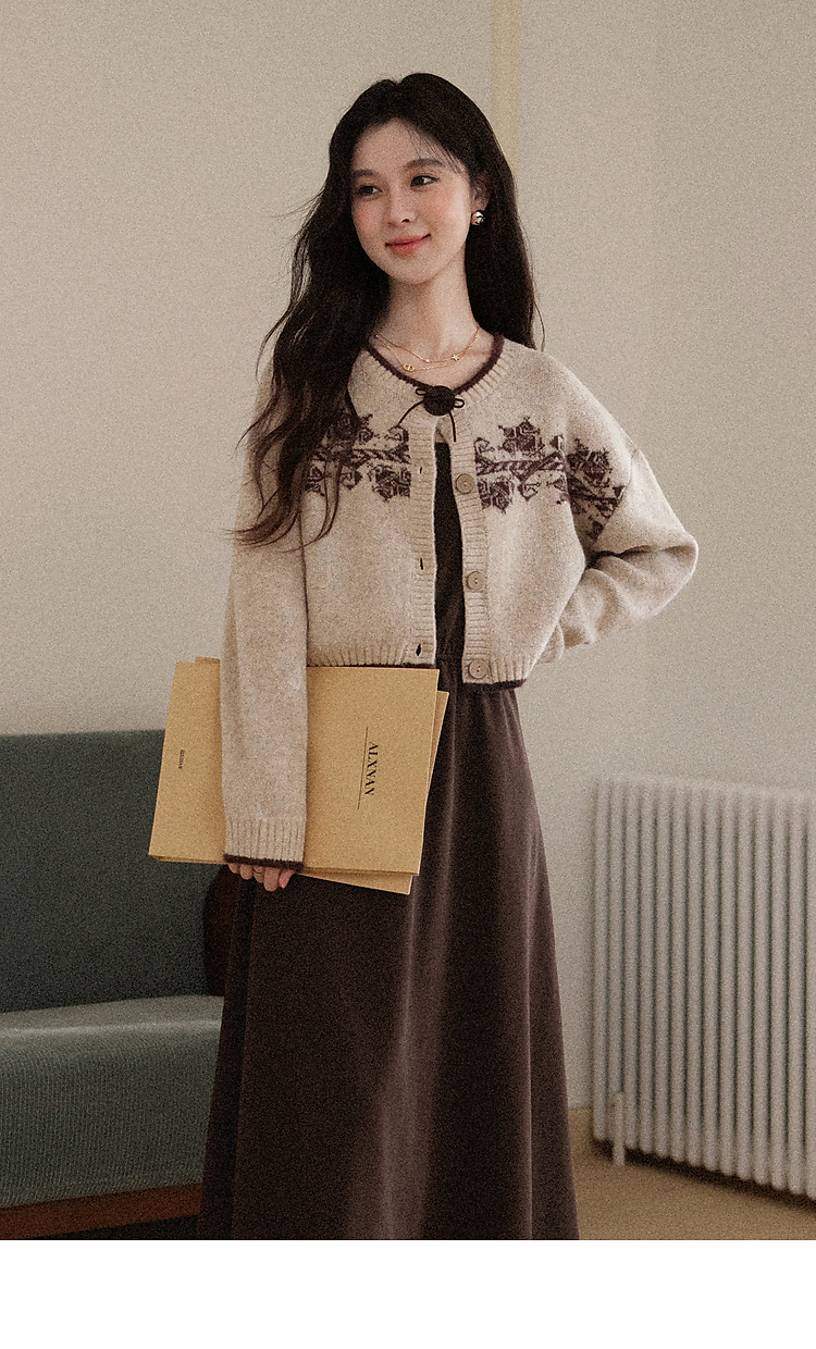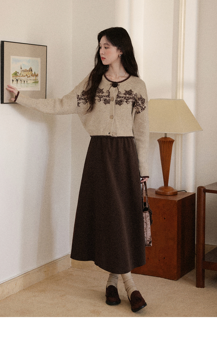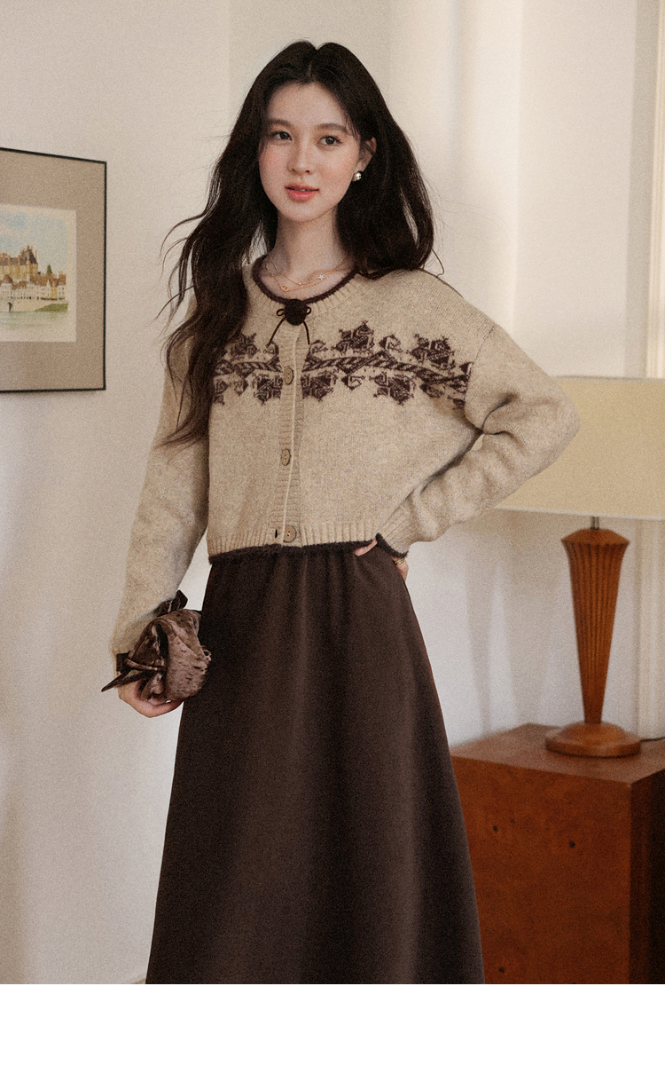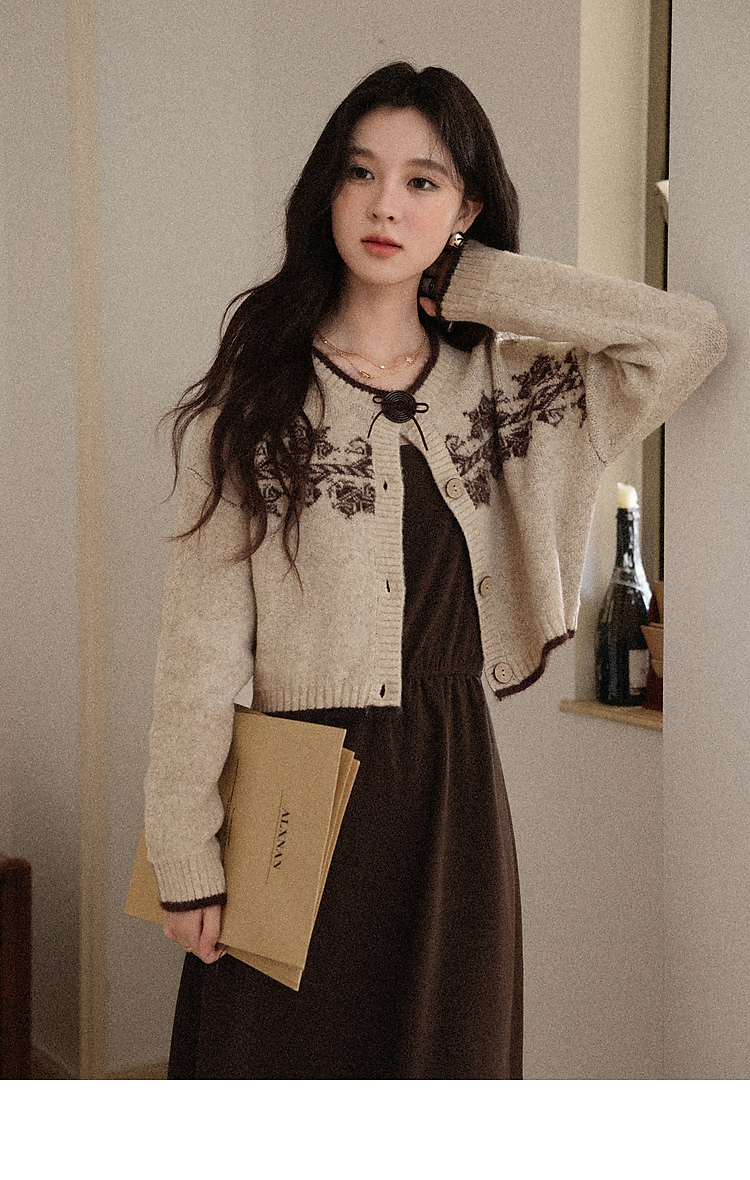 【6折秒杀】鹿向南「格调书室」燕麦色复古长袖毛衣女早秋高级感小众短款上衣L58055
