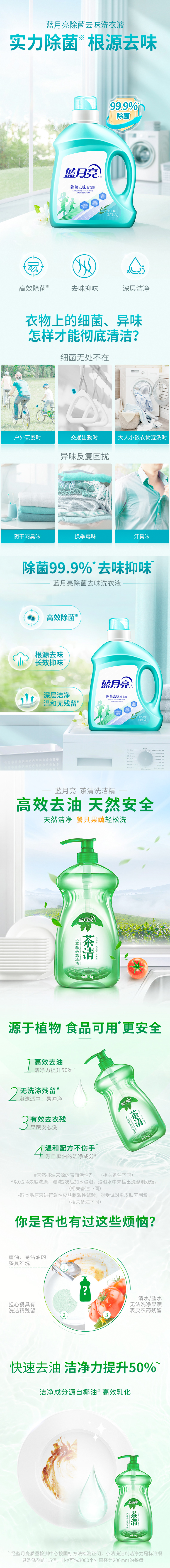 蓝月亮2kg去味除菌去味洗衣液瓶-阳光桉叶+1kg茶清洗洁精