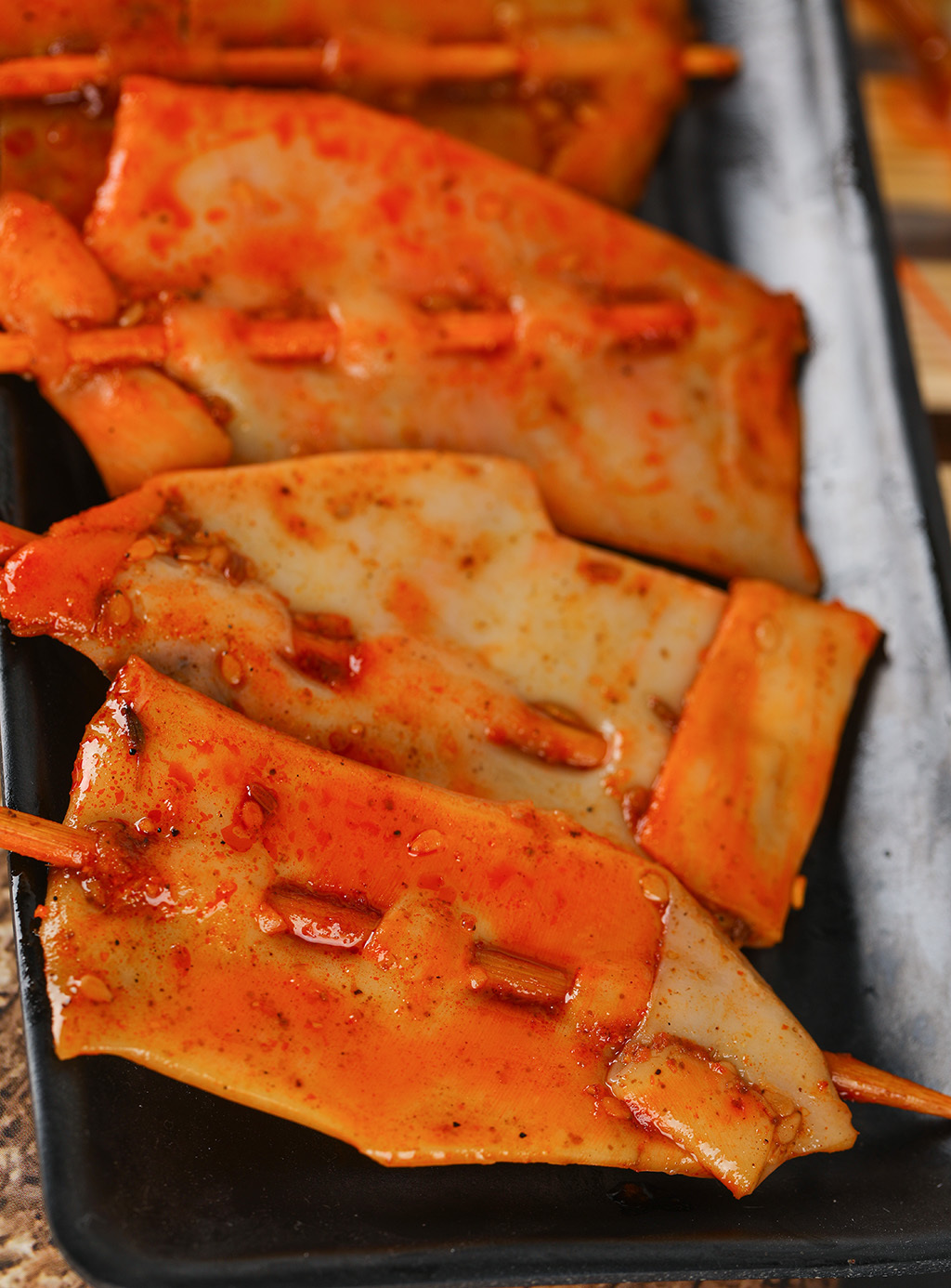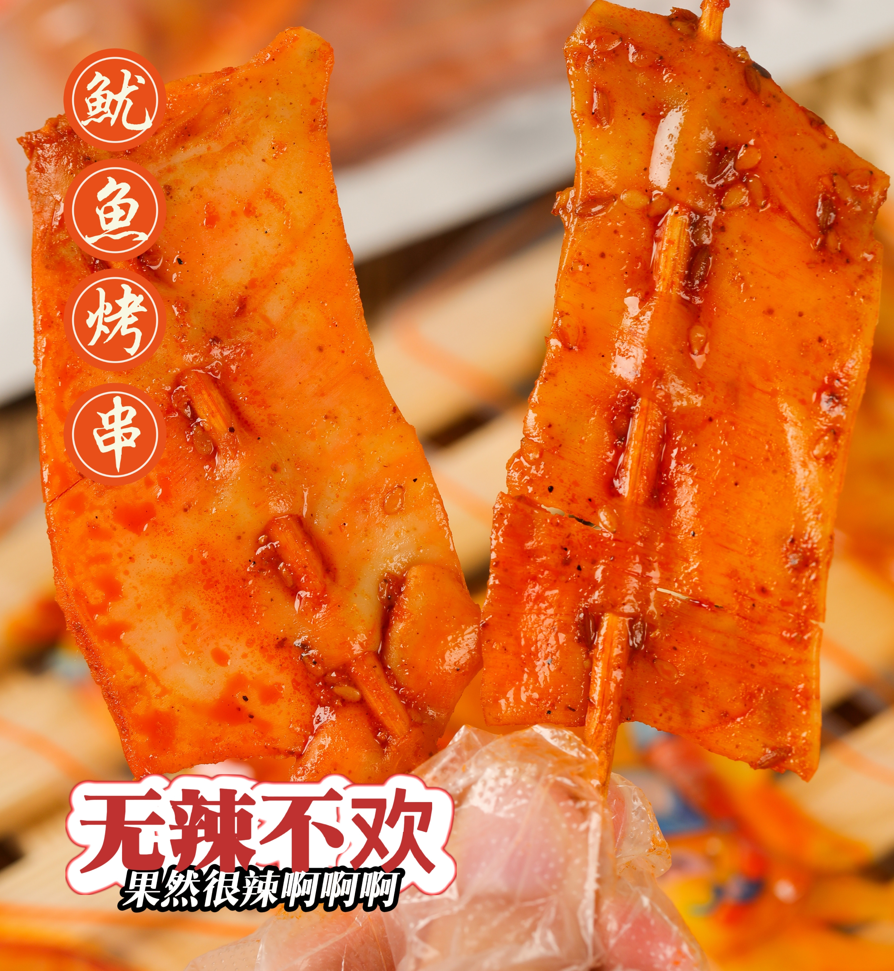 //亲测好吃的鱿鱼串!!39.9到手4袋碳烤鱿鱼串,新鲜如同现烤,软硬湿度刚好,越嚼越香!精选国产真鱿鱼作为原料 肉质醇厚,鲜韧不硬 整片拉伸