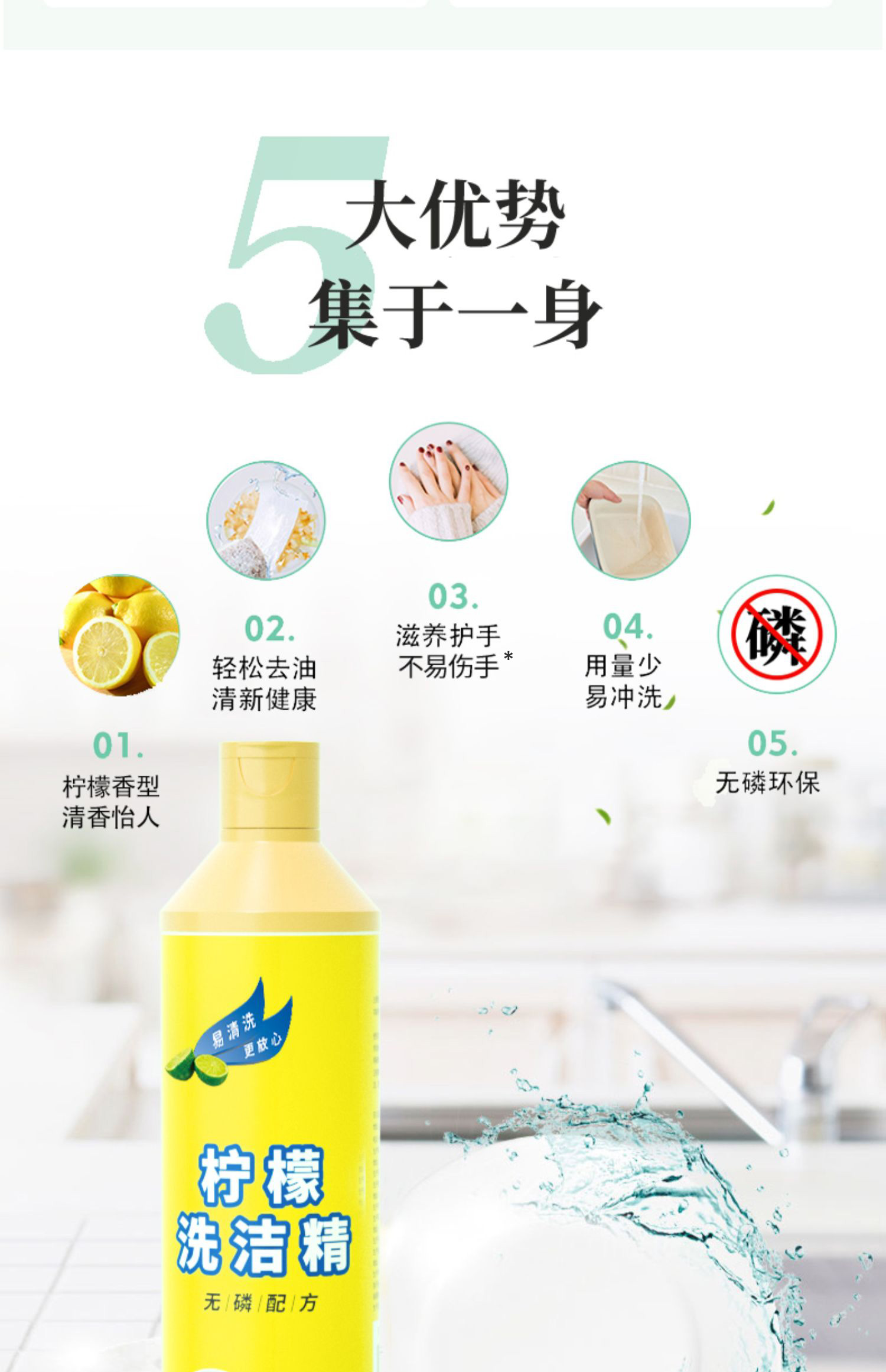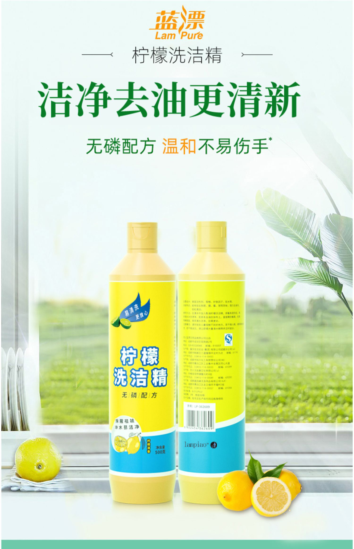 【蓝漂】厨房清洁柠檬洗洁精 去腥温和不伤手 厨房餐饮去油去污清洁剂