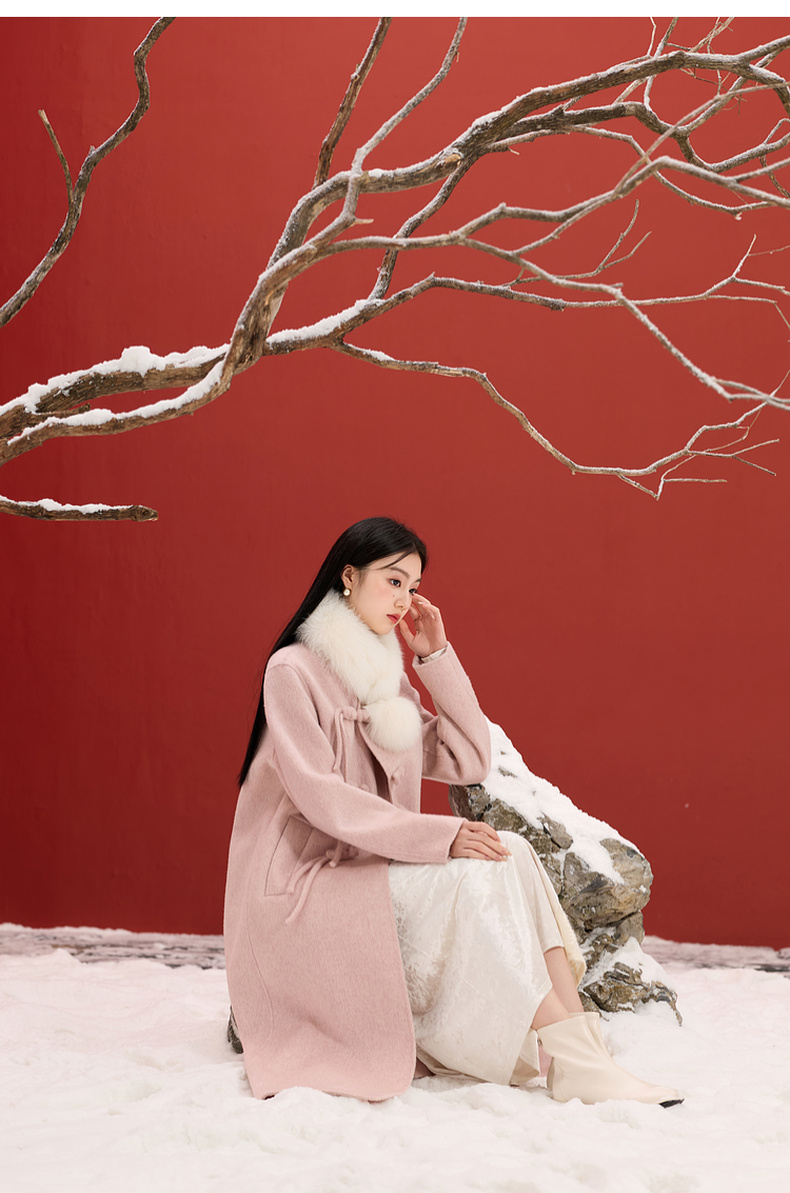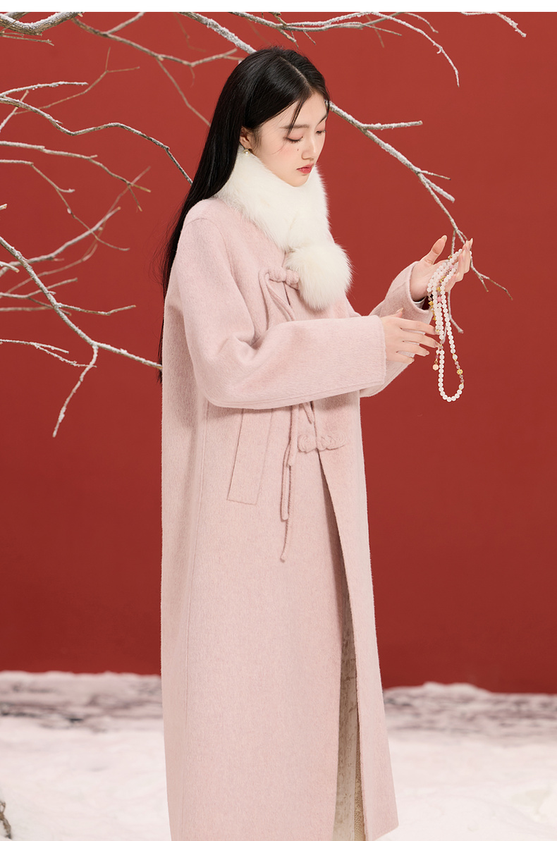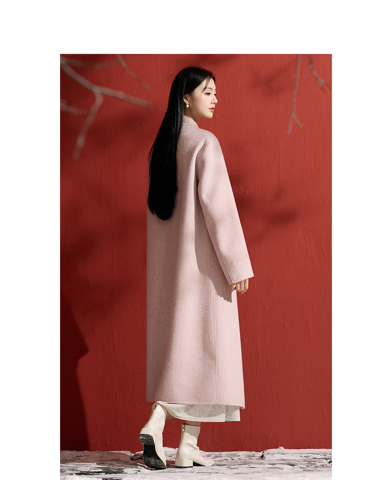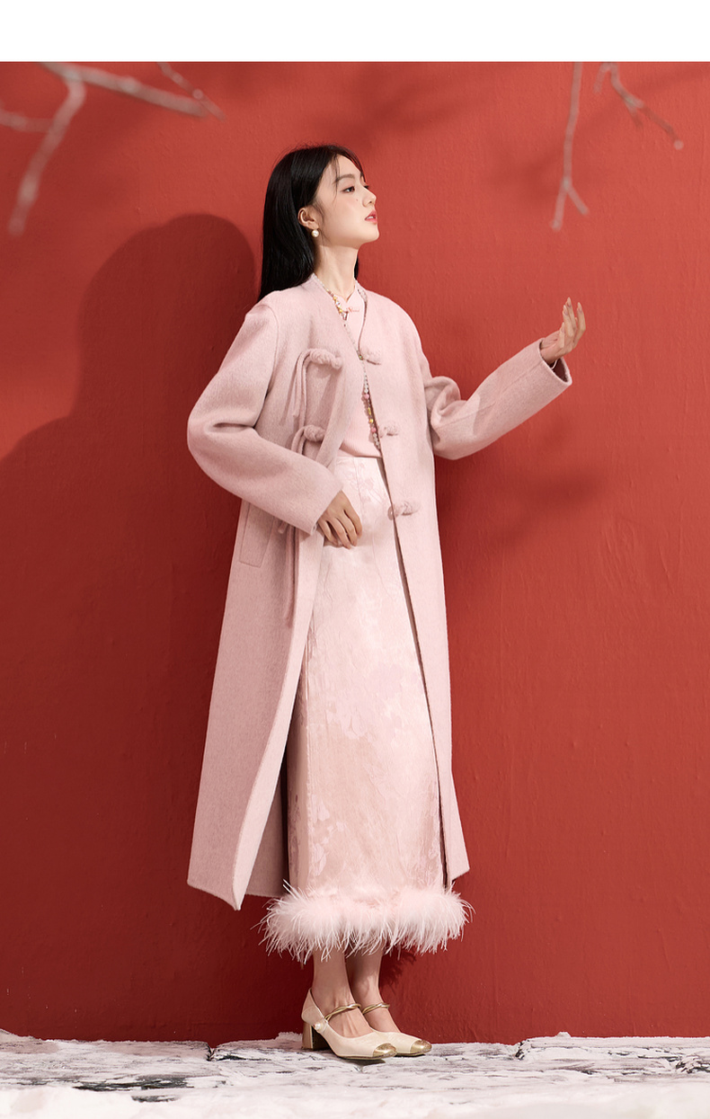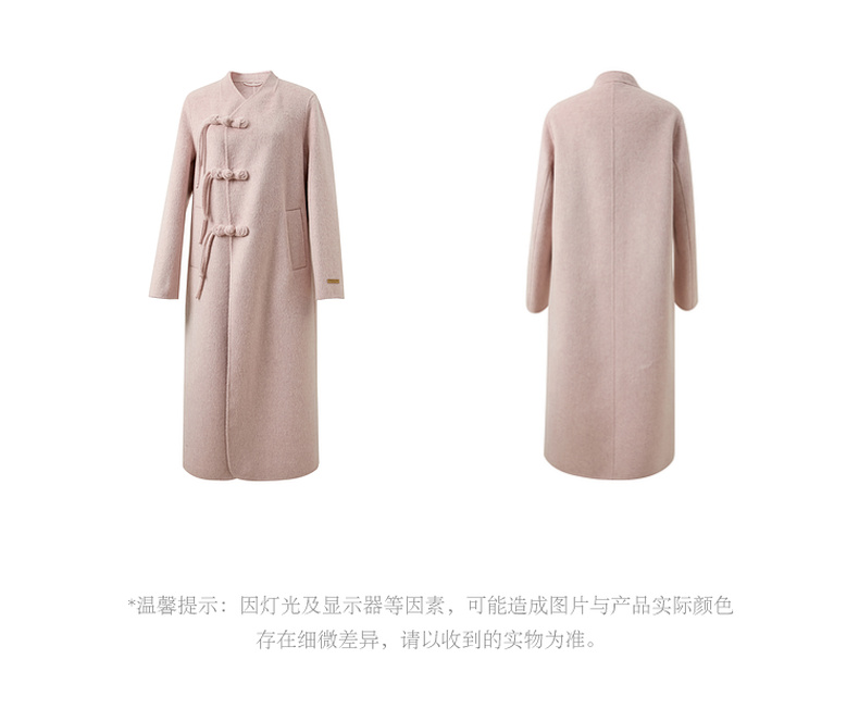 三彩【梅影疏斜】2025冬季新款绵羊毛盘扣双面呢大衣宽松长款C