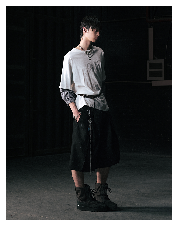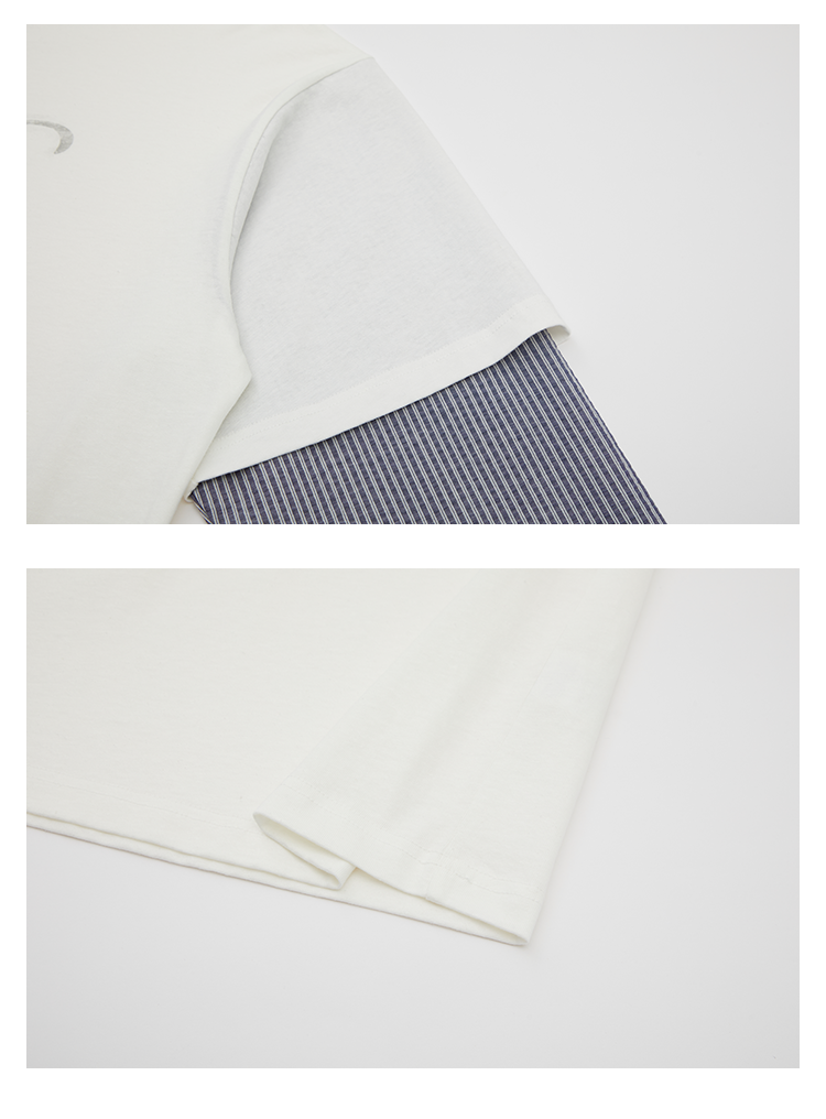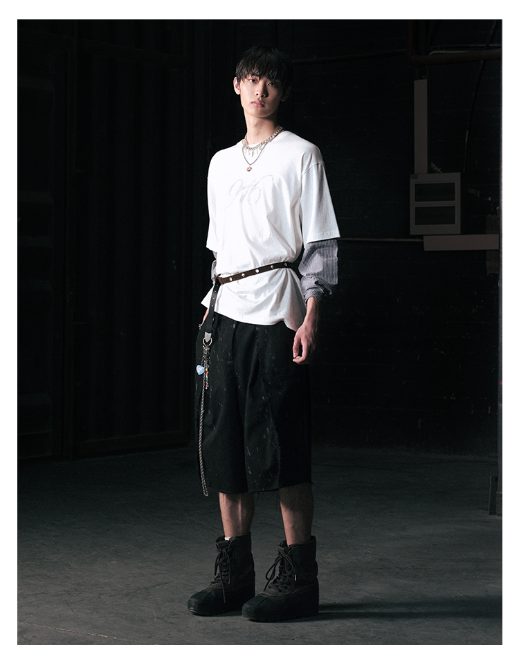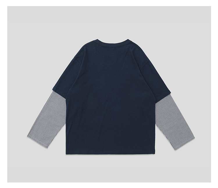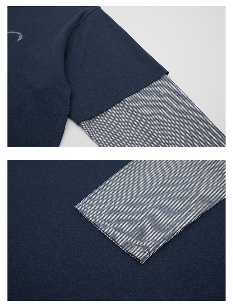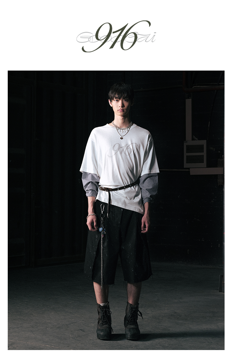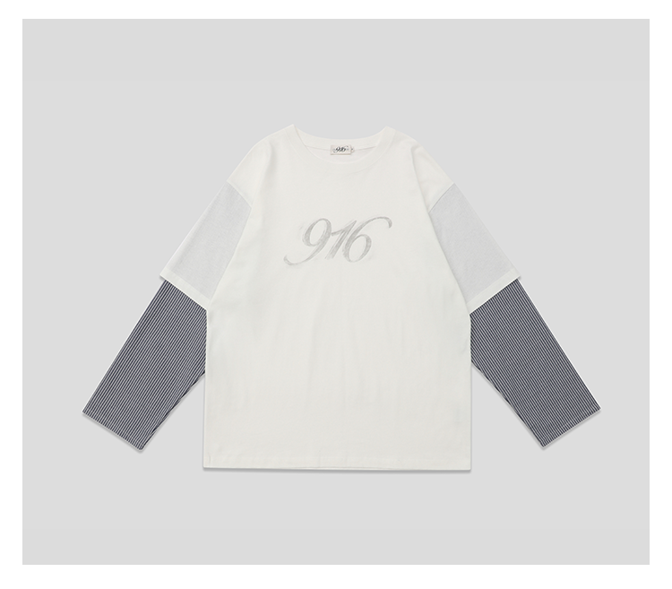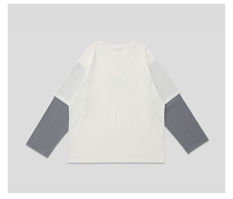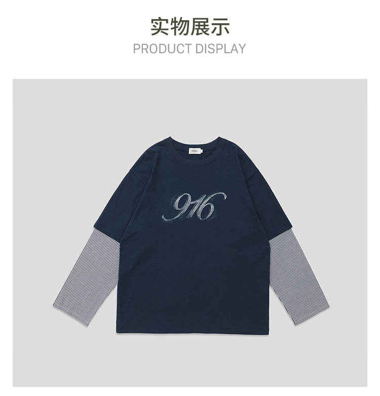 GOODBAI 916 logo做旧印花圆领假两件撞色oversize长袖T恤