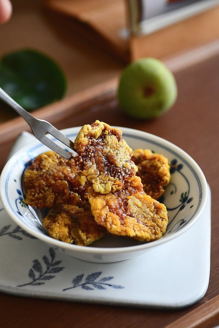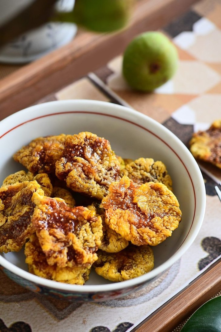 无花果干经过浸泡,口感更接近恢复原果质感,别有风味。