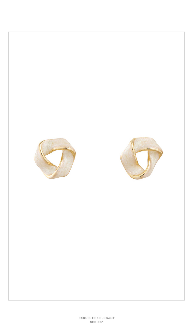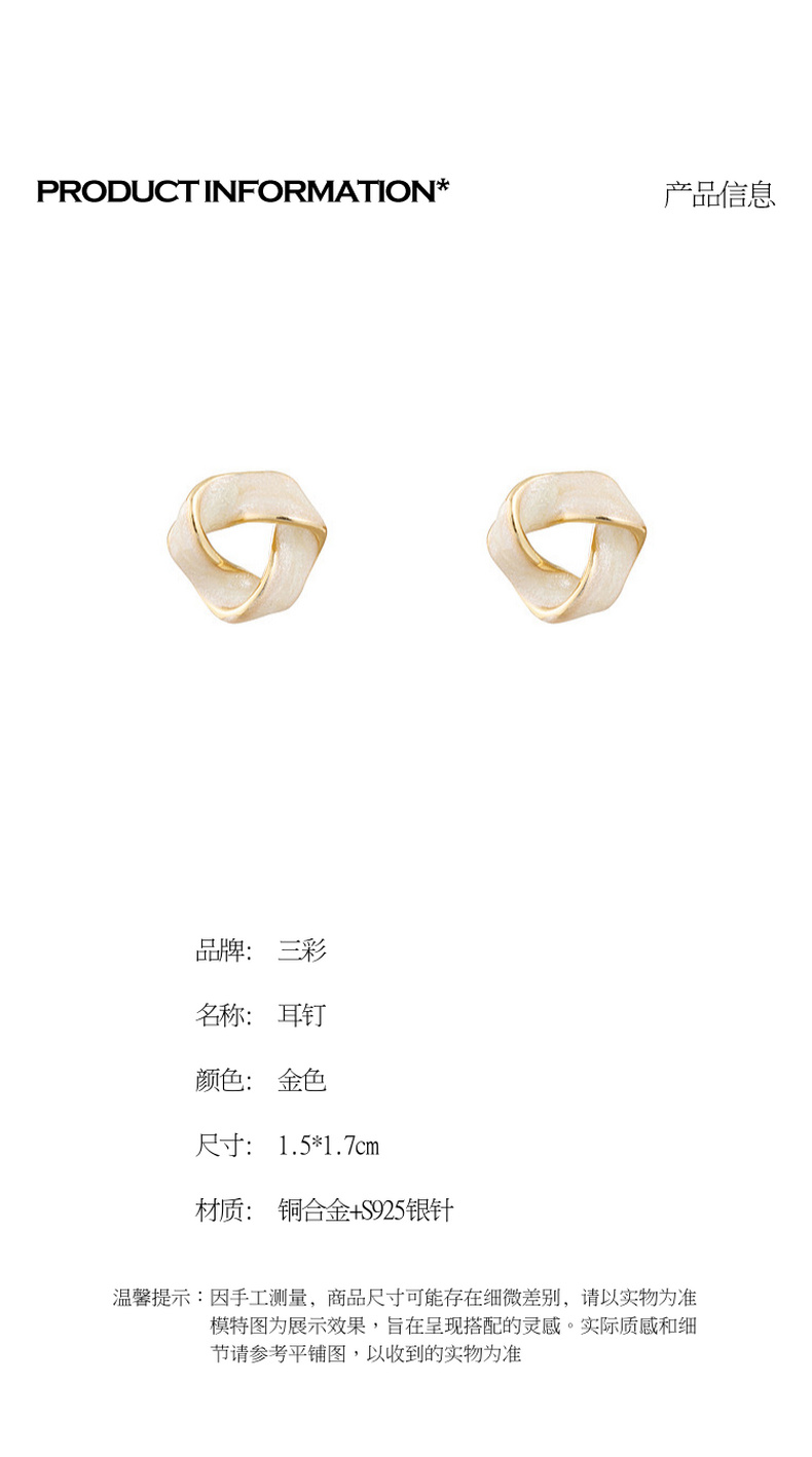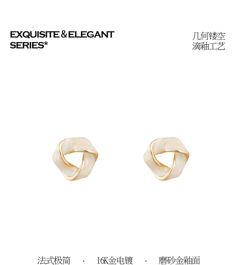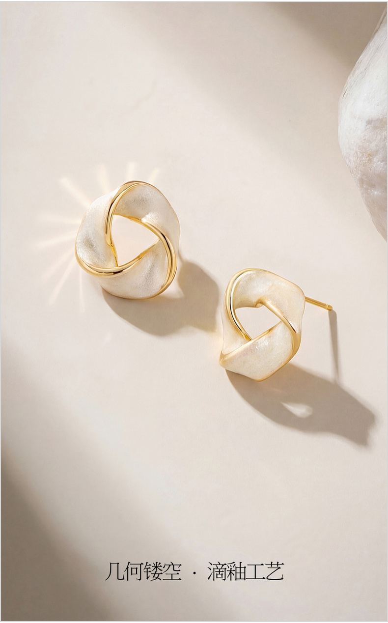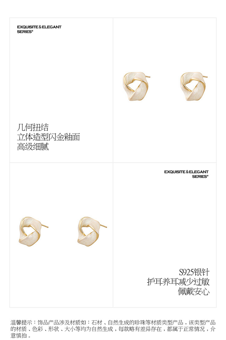 三彩2026新款立体几何扭结滴釉耳钉S925银针镂空磨砂金简约女