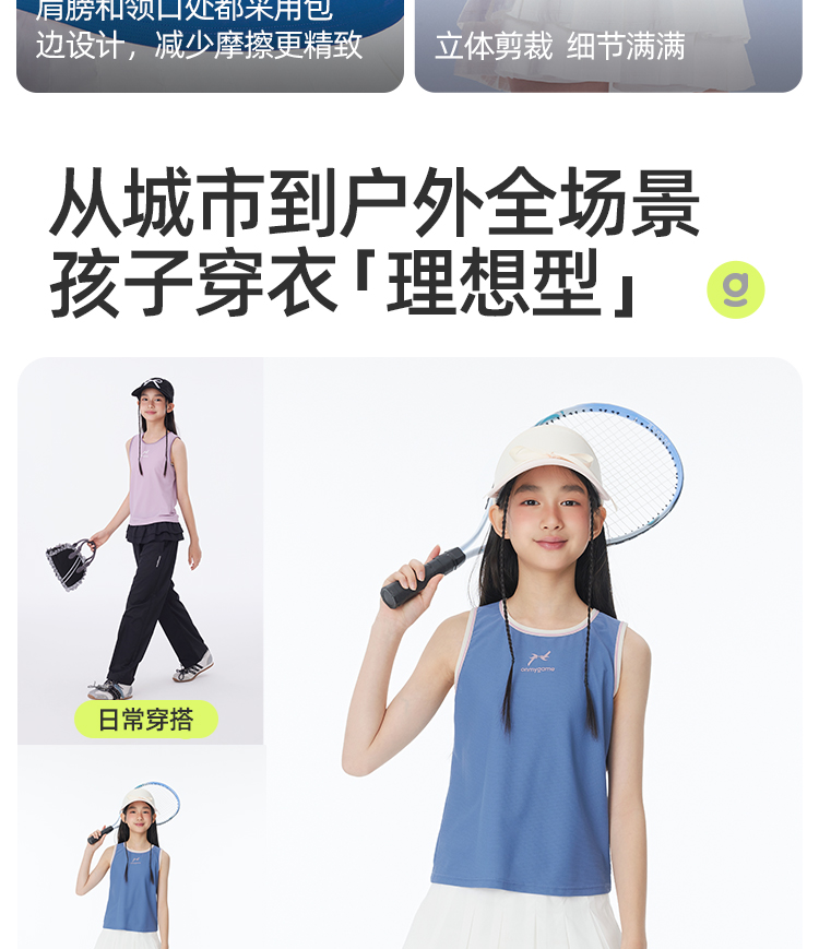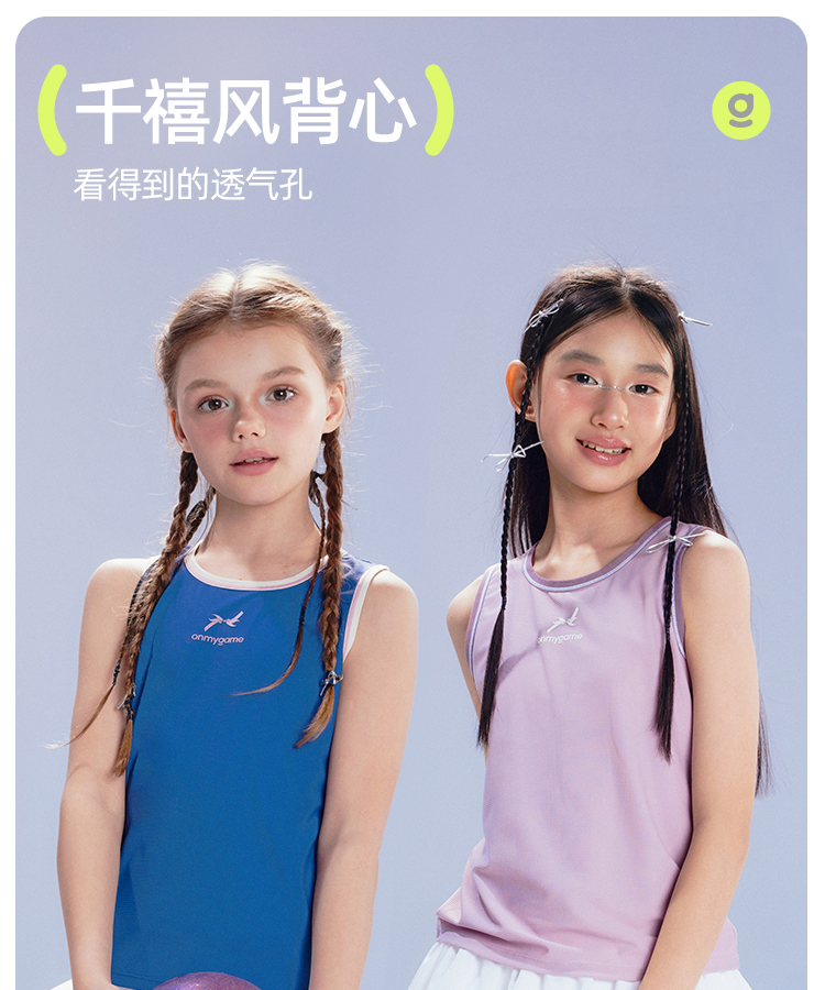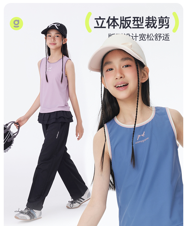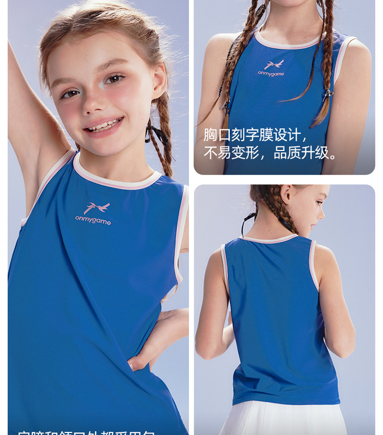 onmygame【千禧风】儿童背心女童无袖T恤运动透气上衣2025夏新款