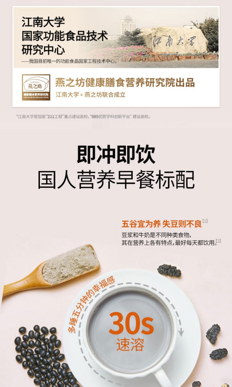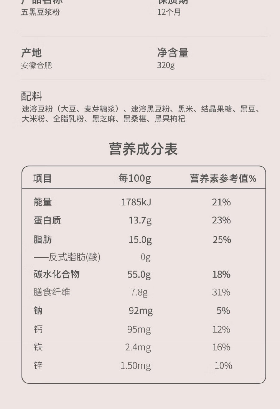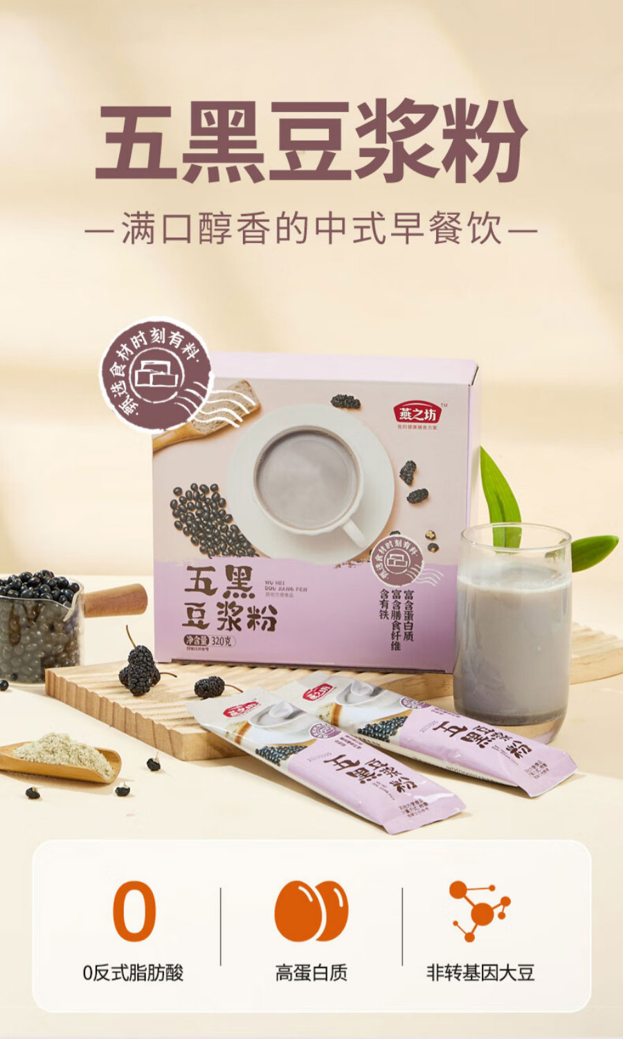 燕之坊 五黑豆浆粉 320g 早餐粉冲饮饱腹即食代餐
