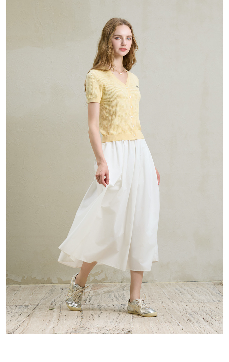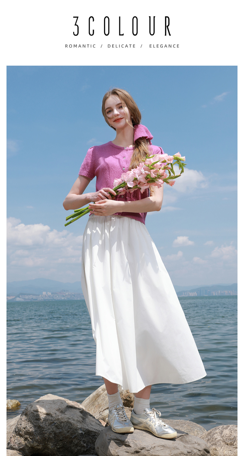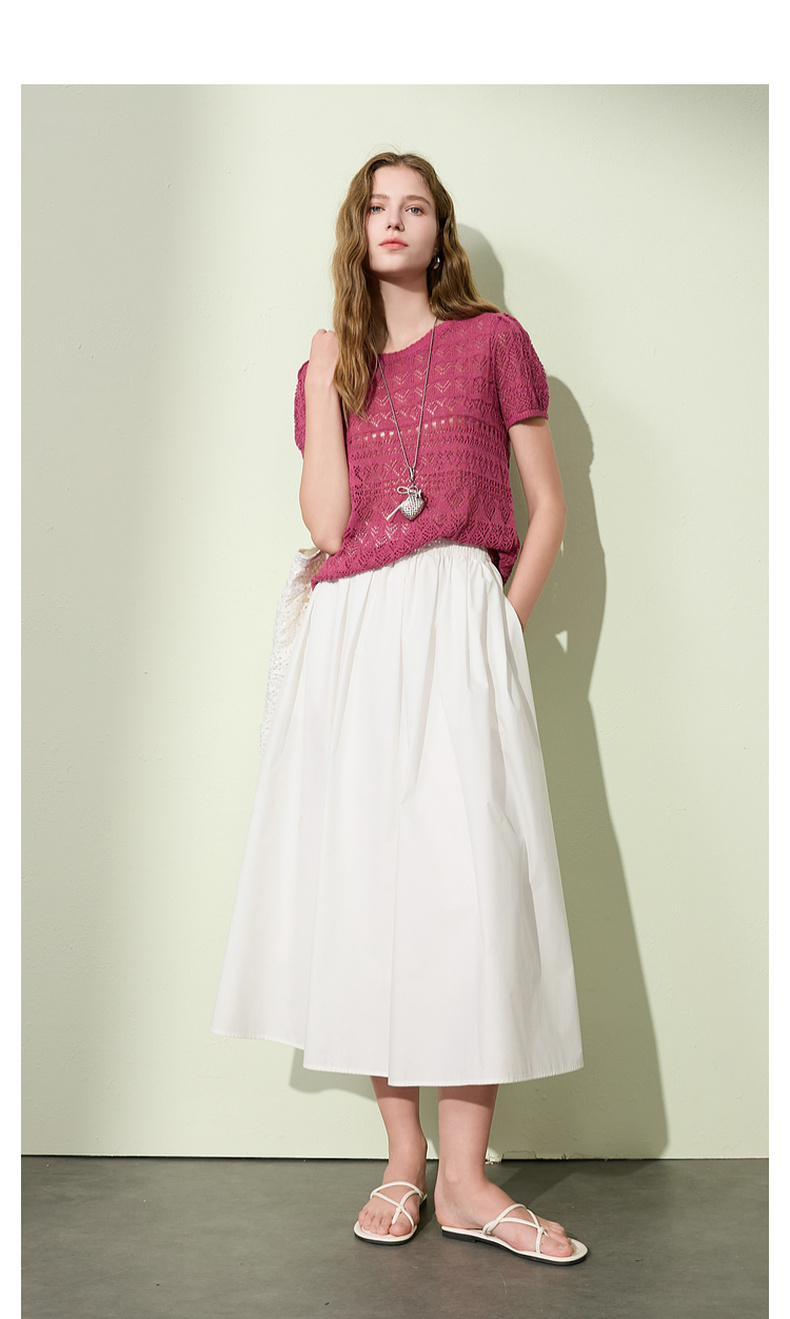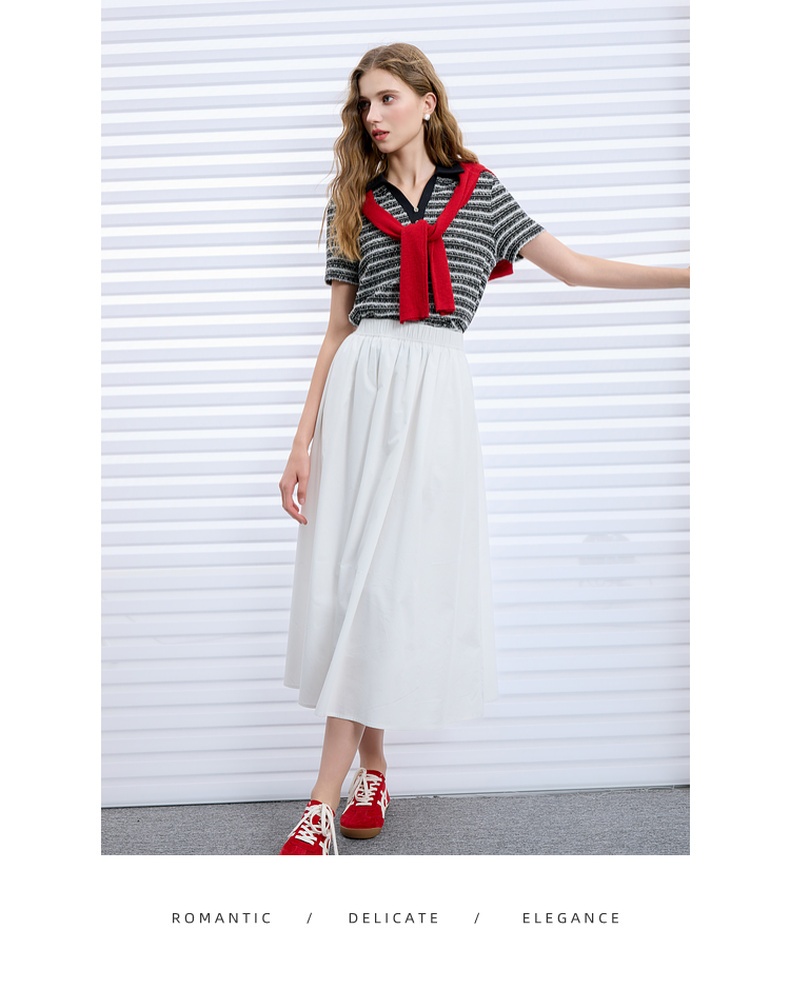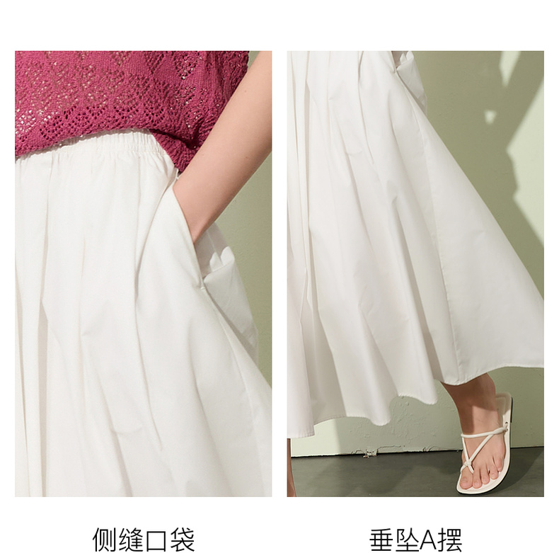 三彩2025秋季新款松紧高腰半身裙A字裙长裙大摆气质宽松百搭M