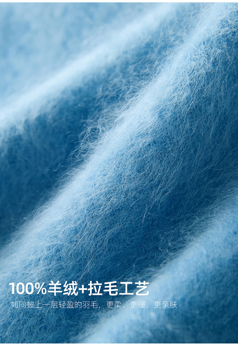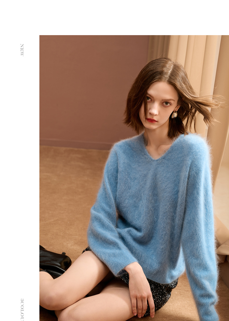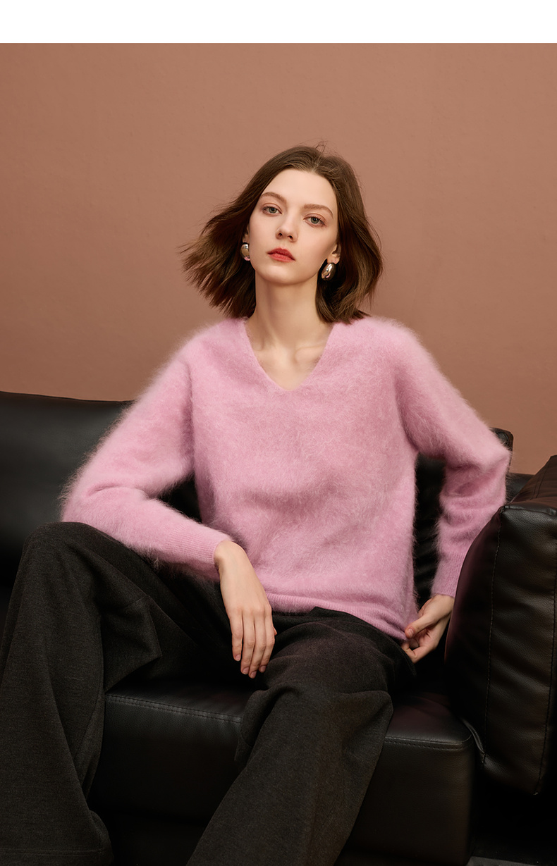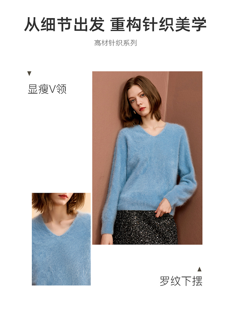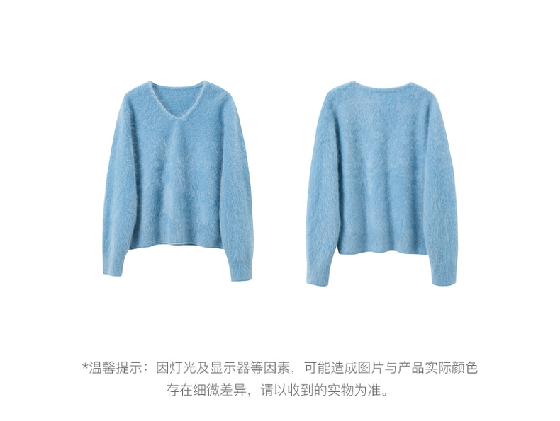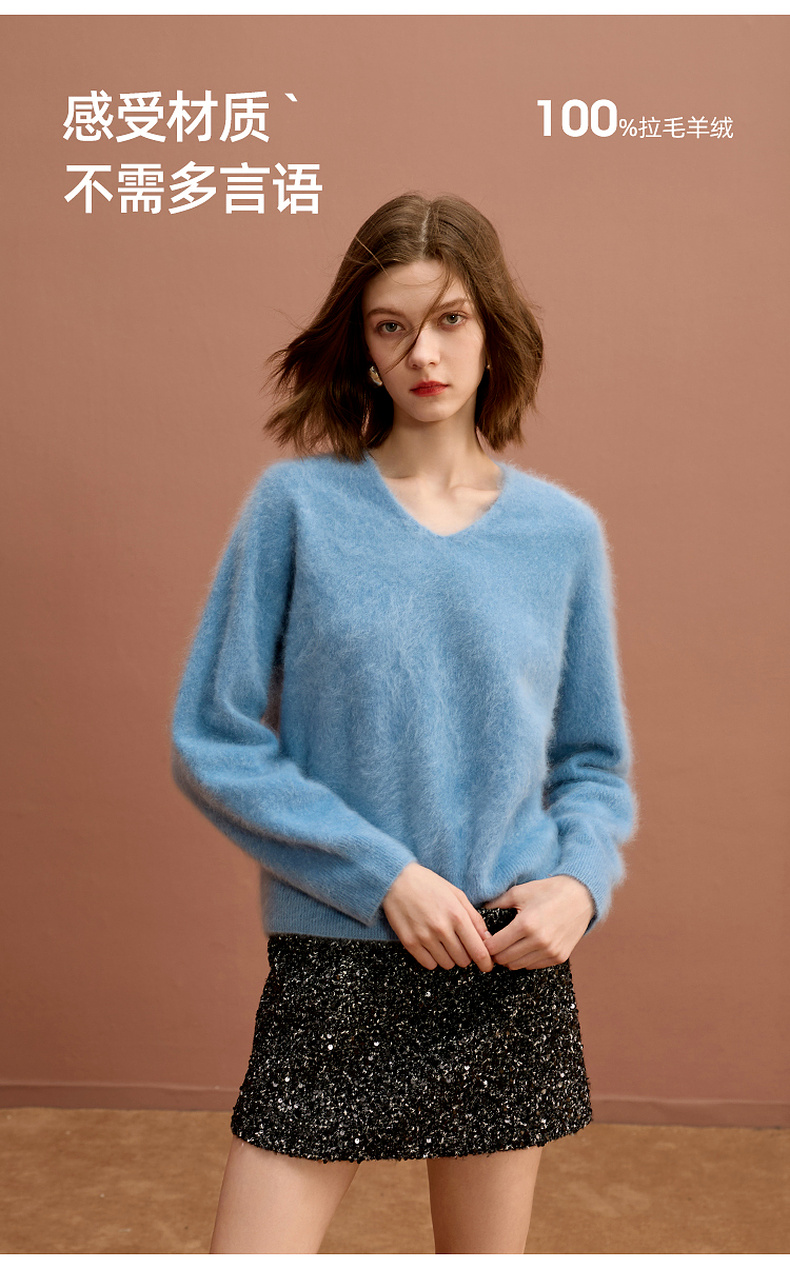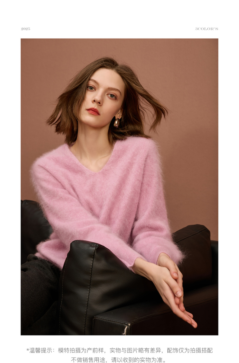 【拉毛羊绒】三彩2025冬季新款慵懒宽松针织衫V领简约套头衫S