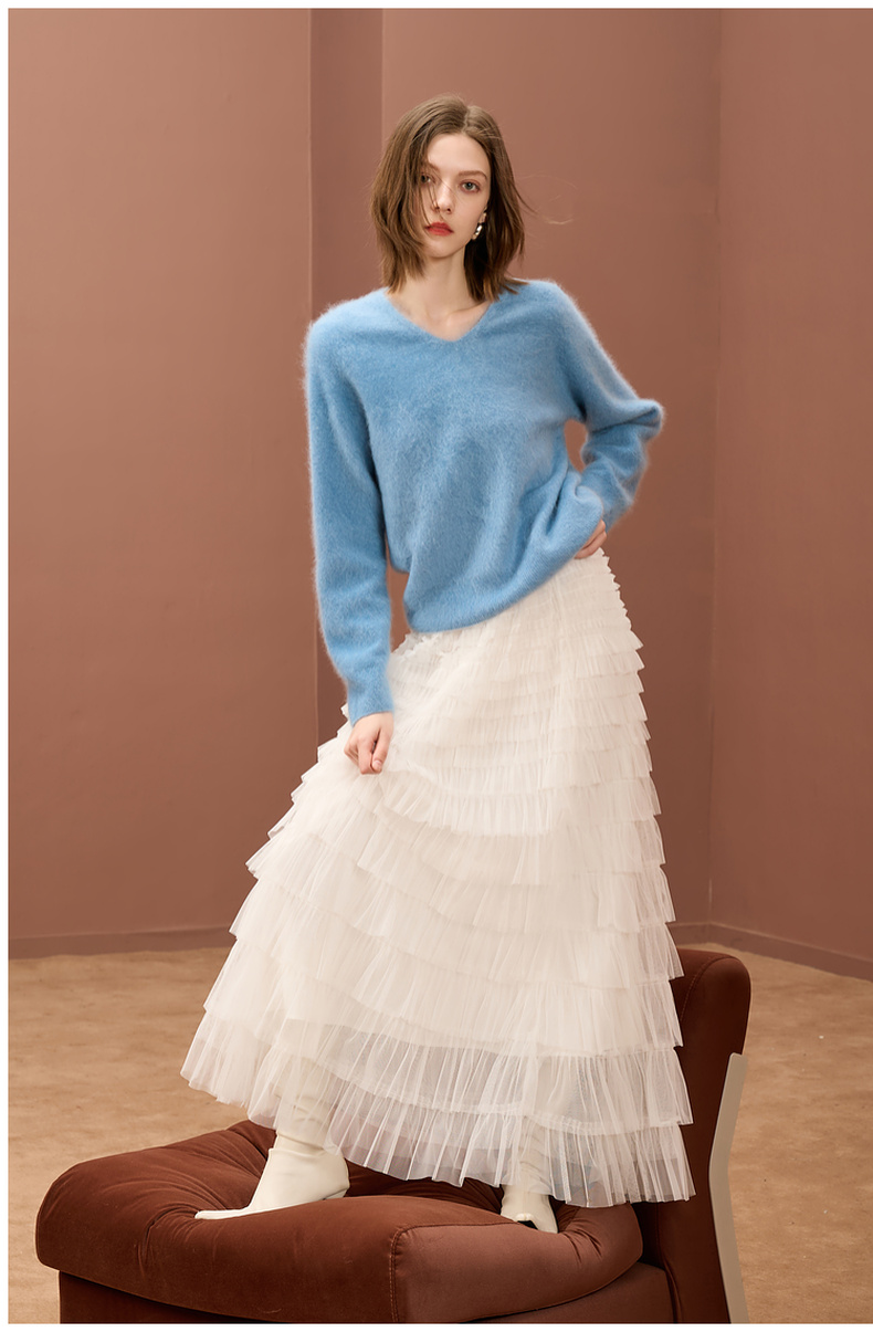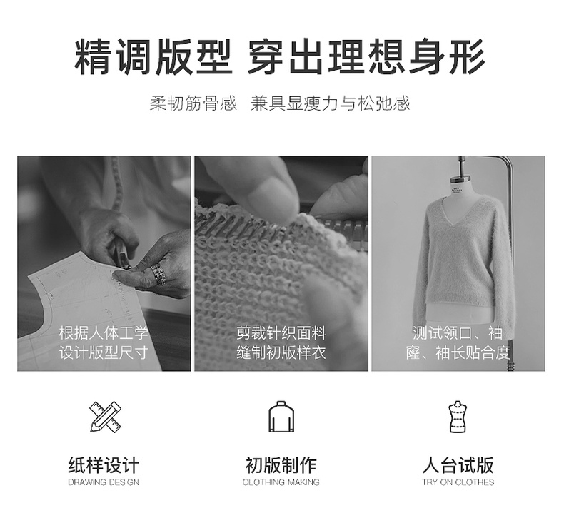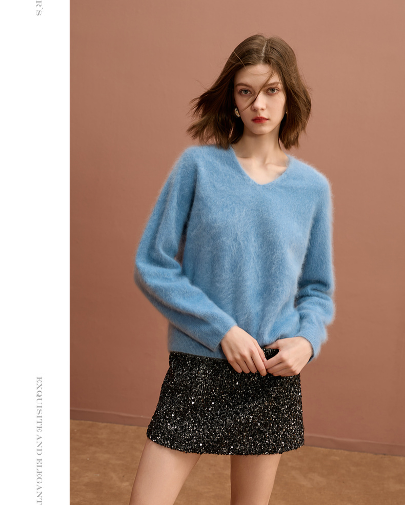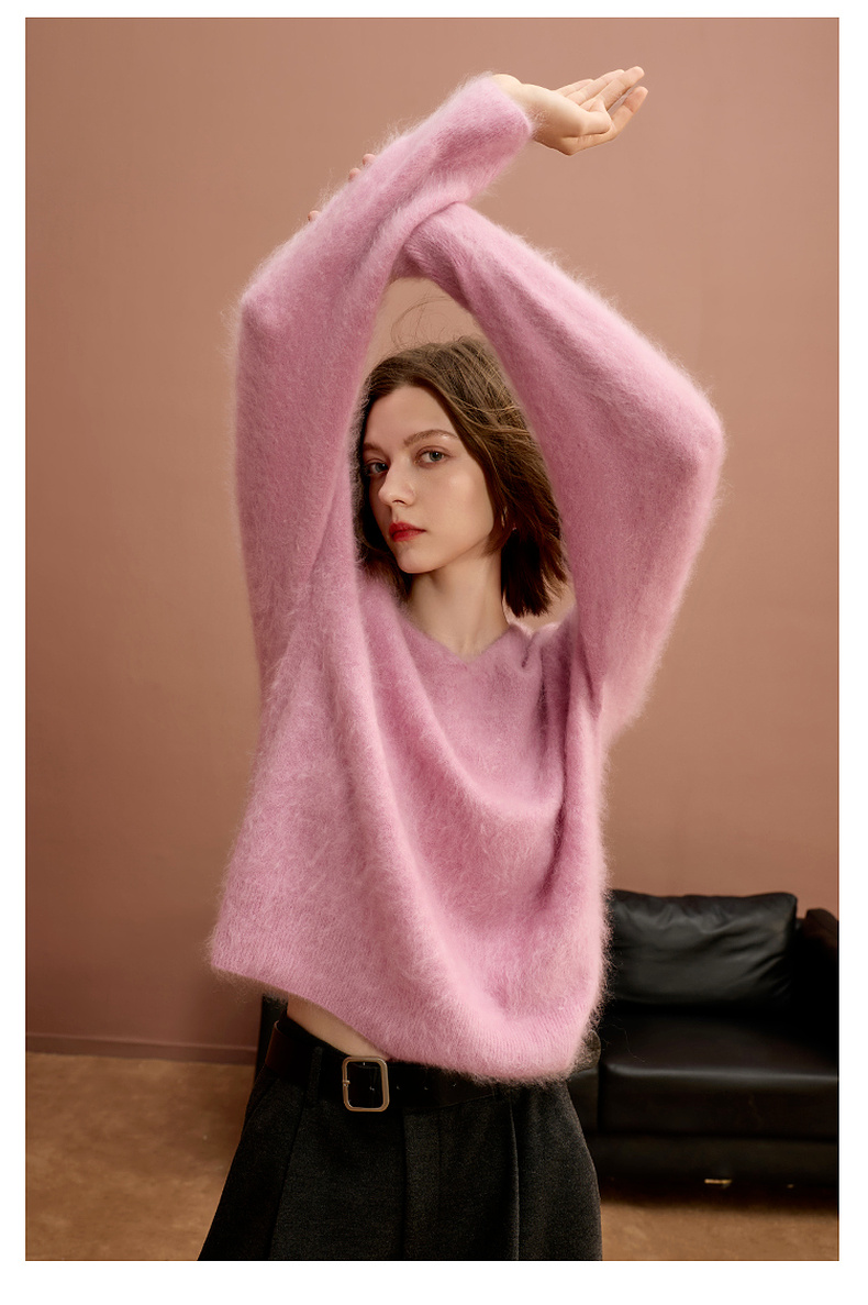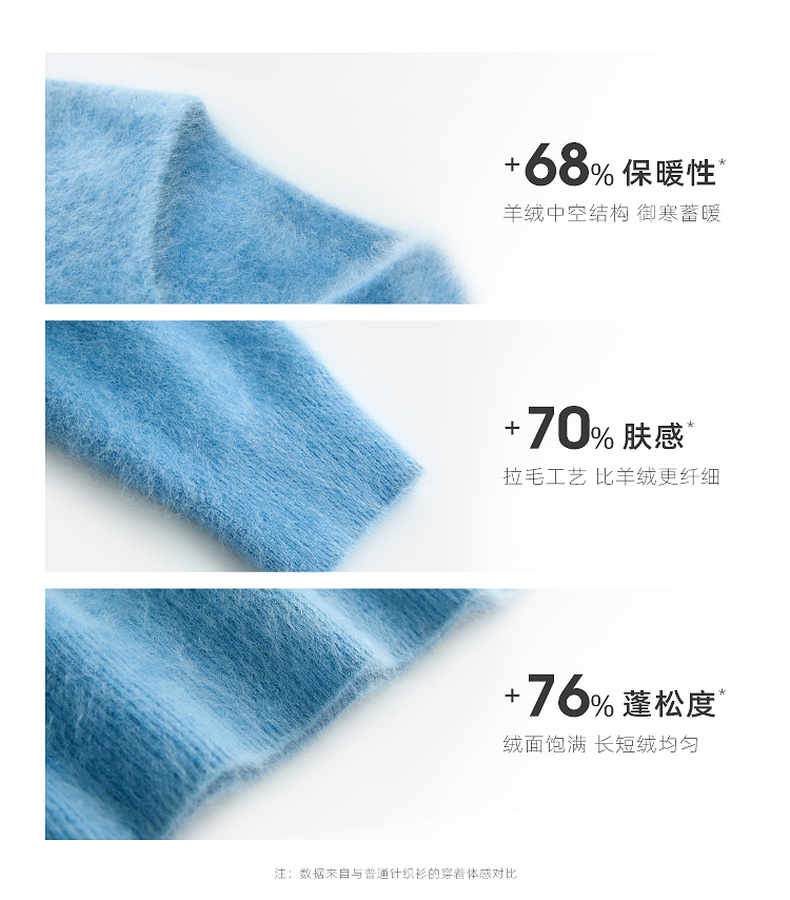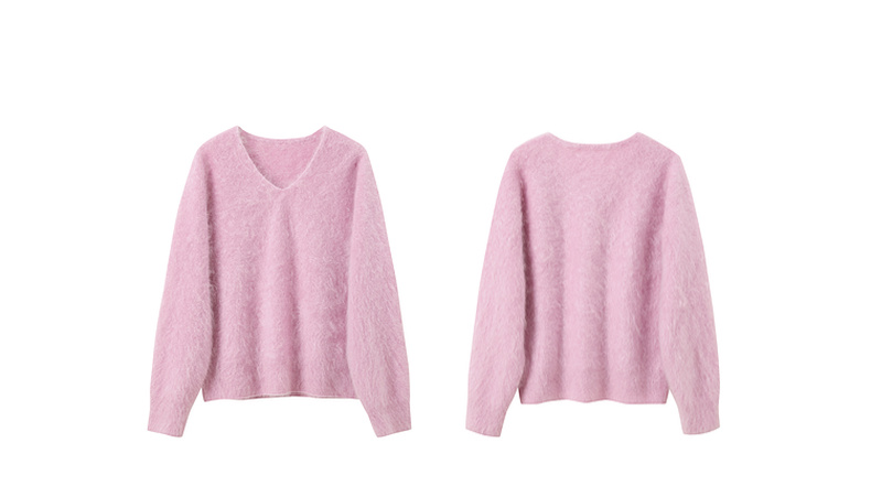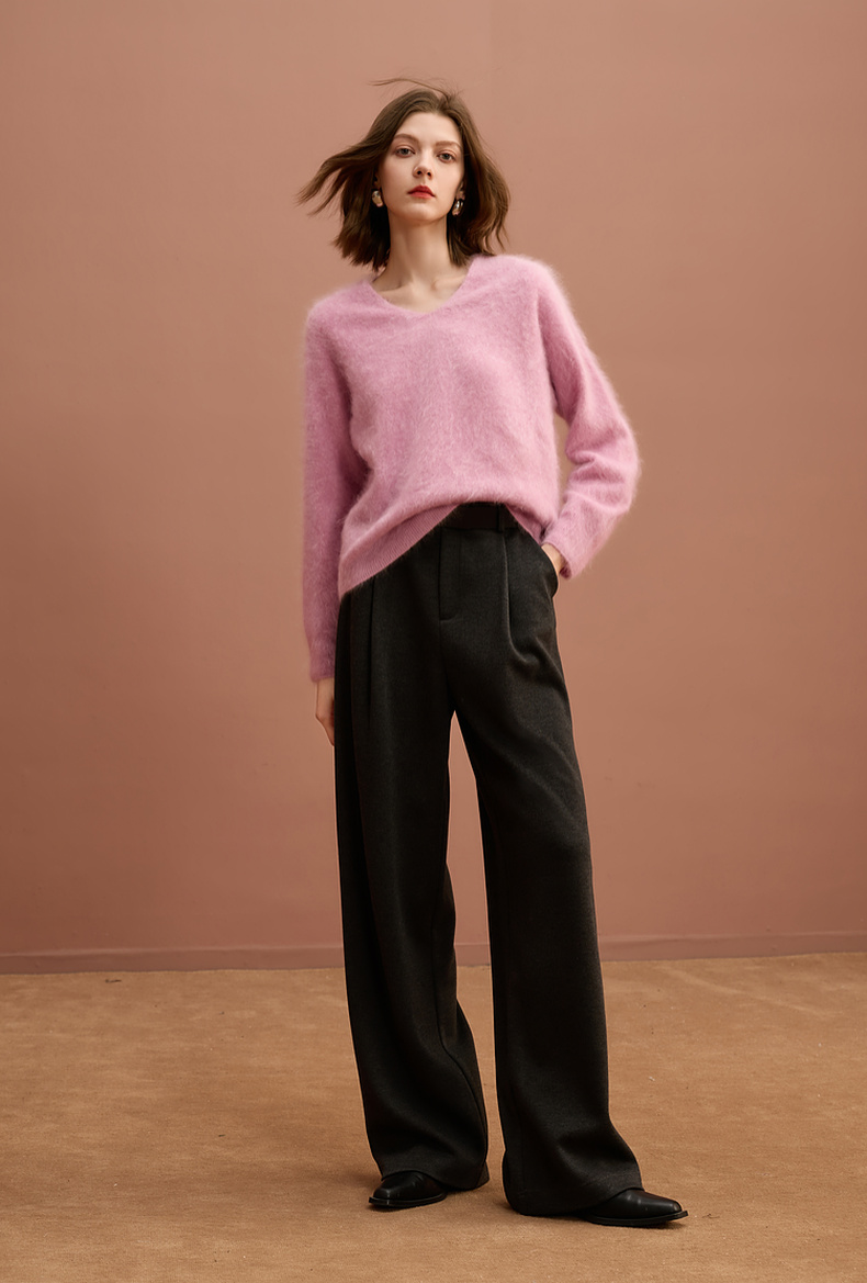 【拉毛羊绒】三彩2025冬季新款慵懒宽松针织衫V领简约套头衫S