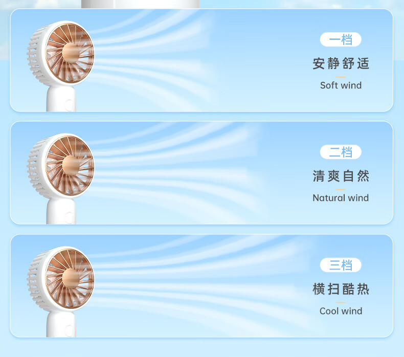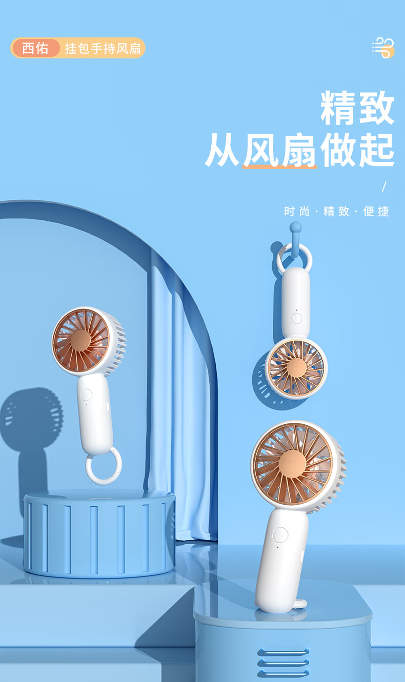 西佑小风扇 迷你手持usb口袋风扇 户外随身便携式可充电大风力电池办公室学生桌面宿舍小电扇SF2301-白配金【工厂直发、一手货源、7天无理由退换】