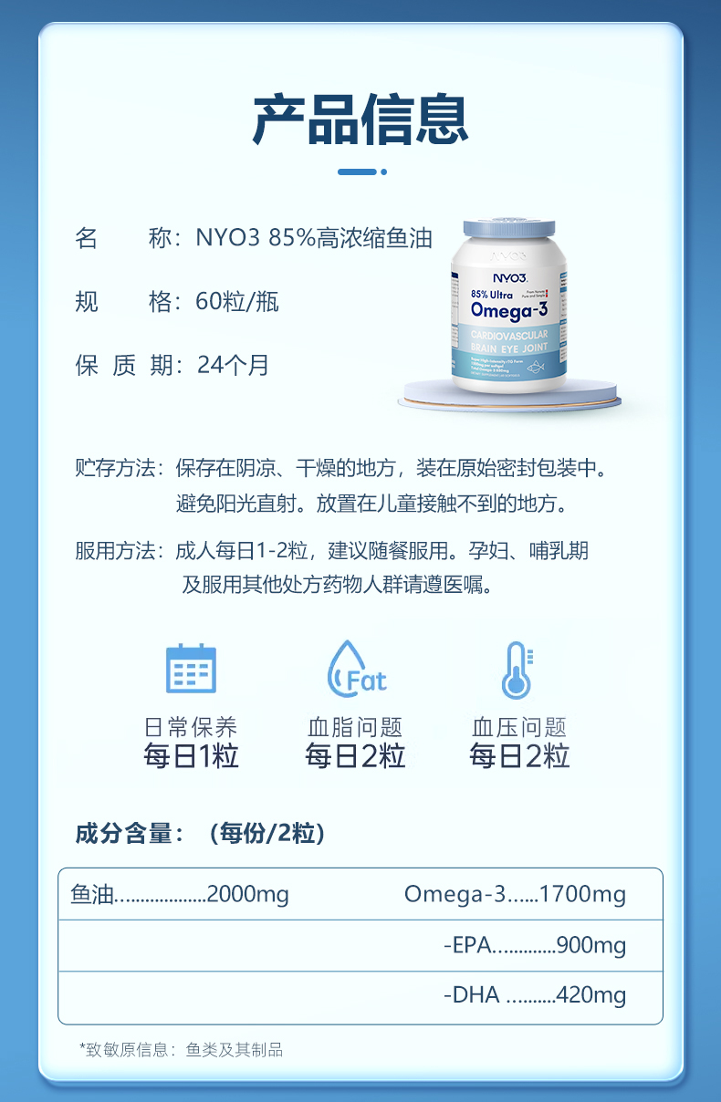 NYO3 85%高Omega-3鱼油60粒